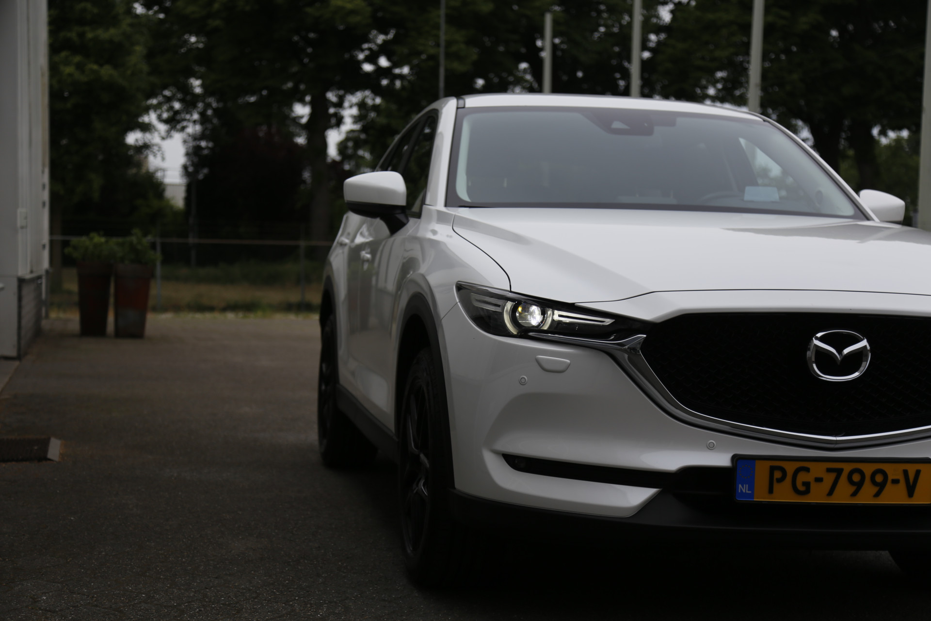 Mazda CX-5 2.0 SkyActiv-G 165 TS+ in het parelmoer wit.