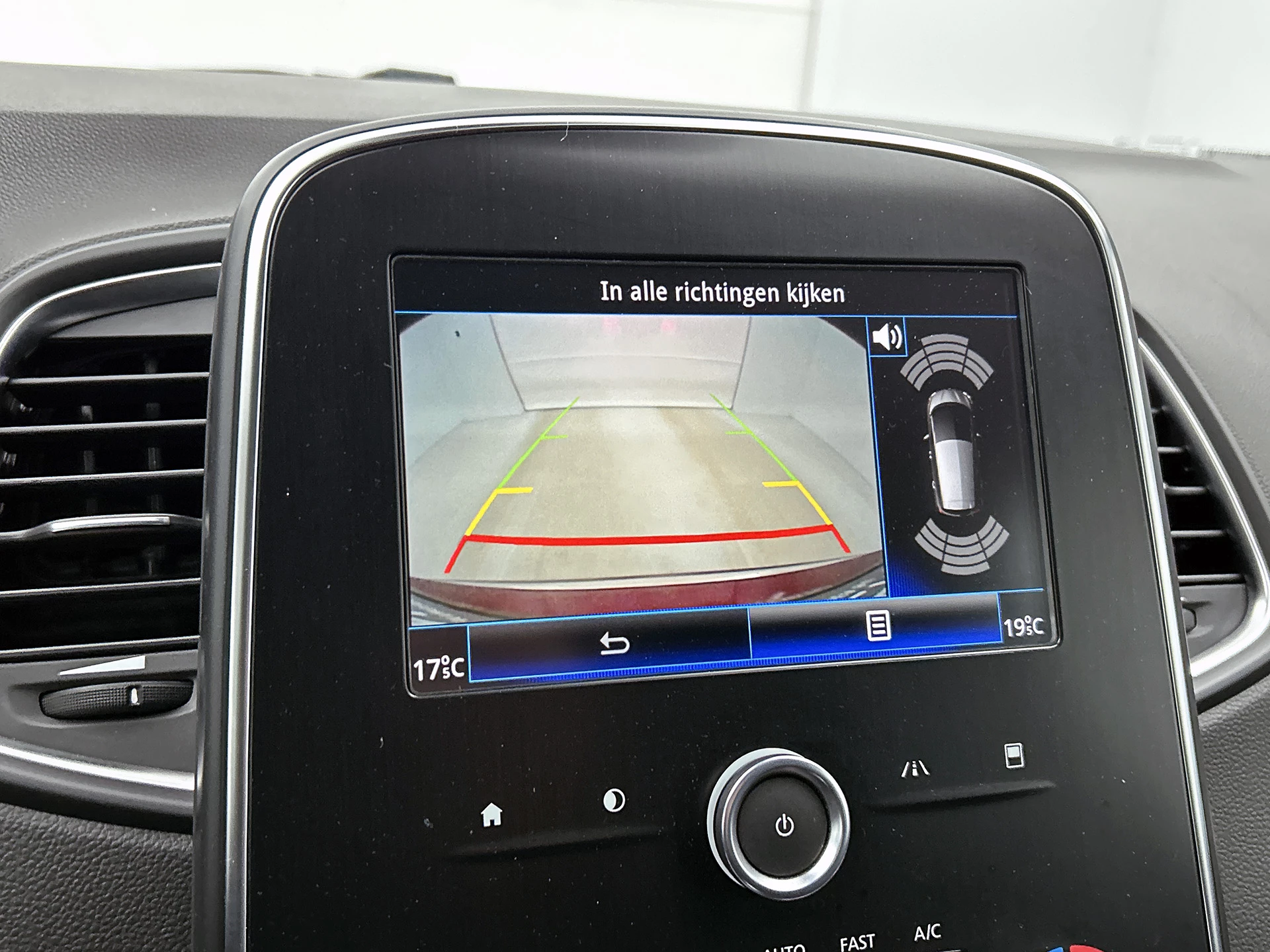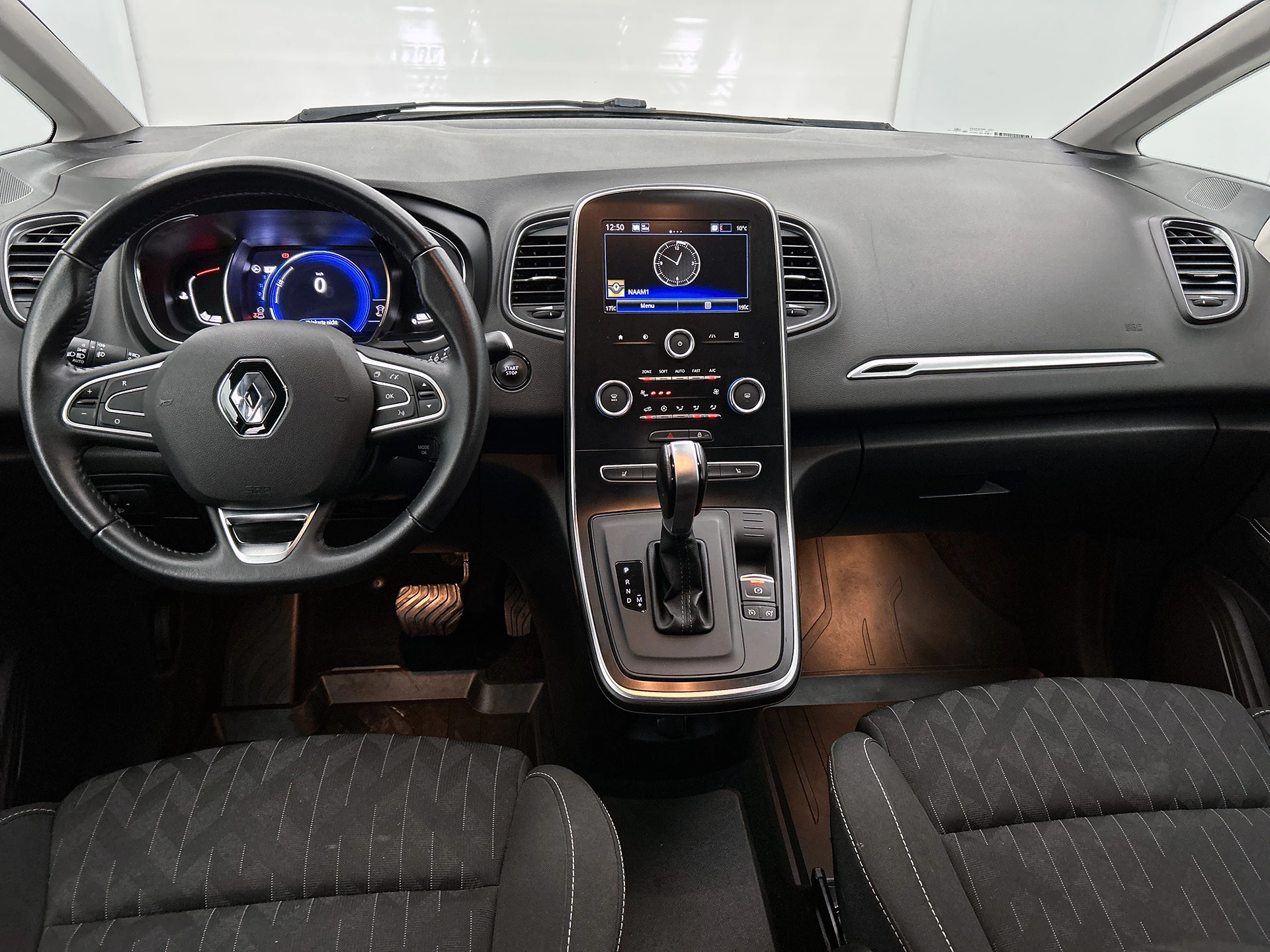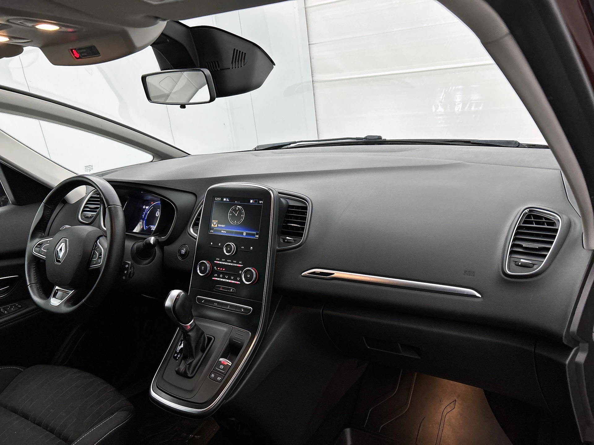 Snelheid, brandstofinfo, noem maar op. Het digitale dashboard houdt u permanent op de hoogte. Goed en overzichtelijk. Altijd achter zicht, nooit meer nekkramp! De achteruitrijcamera maakt het supermakkelijk. Laat u onderweg niet afleiden, de bediening van het audio-installatiesysteem en ook het full map navigatiesysteem gaat met knoppen op het stuur en met spraak. Natuurlijk is de audio-installatie voorzien van DAB-ontvangst. Met de automatische airconditioning selecteert u de gewenste temperatuur. Het systeem doet de rest. De automatisch inschakelbare verlichting en regensensor zorgen dat onderweg automatisch de verlichting en de ruitenwissers worden ingeschakeld. Daarmee nemen ze u veel werk uit handen. De uitrusting van deze Renault is met cruise control, keyless entry, lederen stuur, usb-aansluiting, centrale deurvergrendeling met afstandsbediening en boordcomputer behoorlijk compleet.