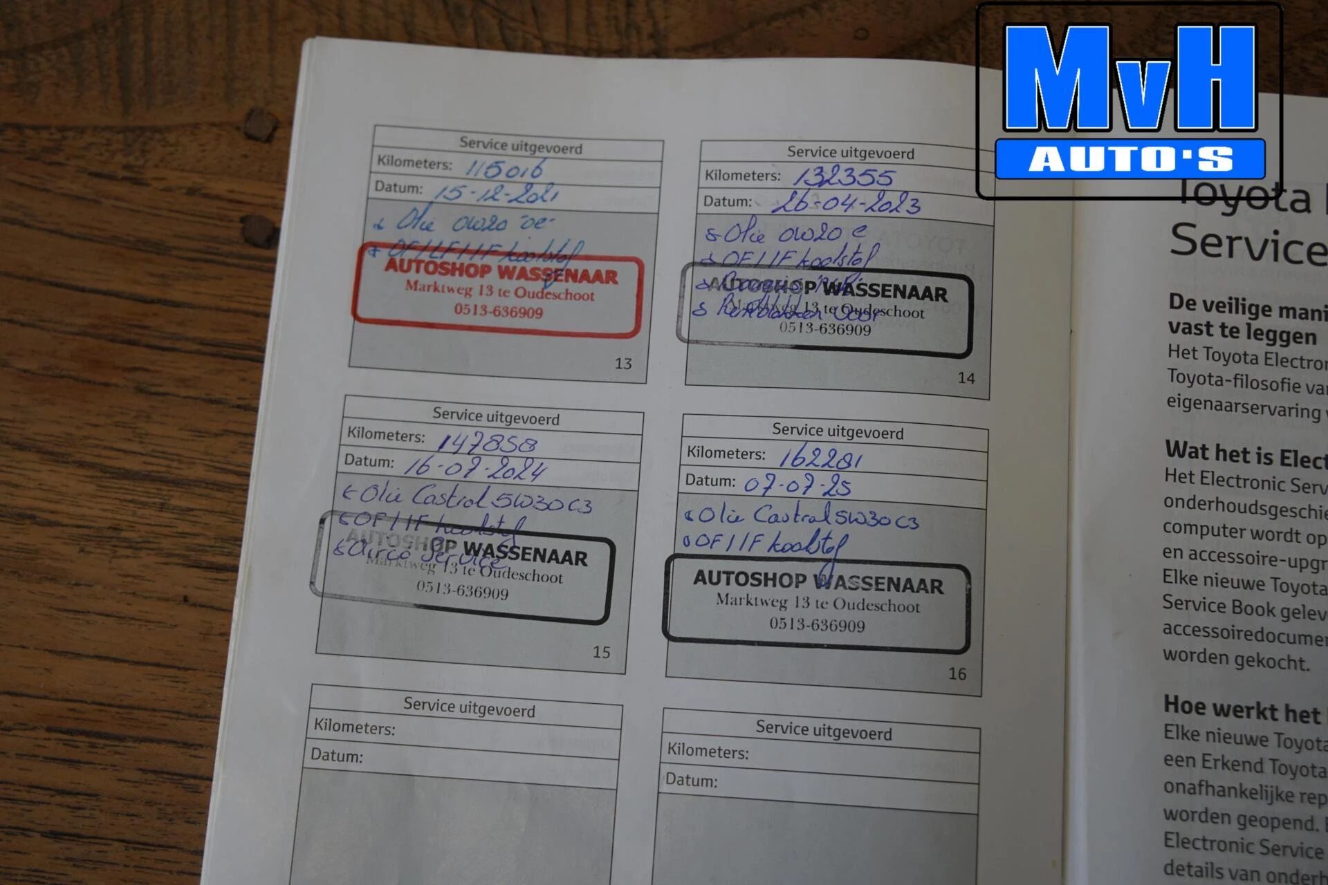 Laatste onderhoudsbeurt gehad in juli 2025 bij 162.281km.