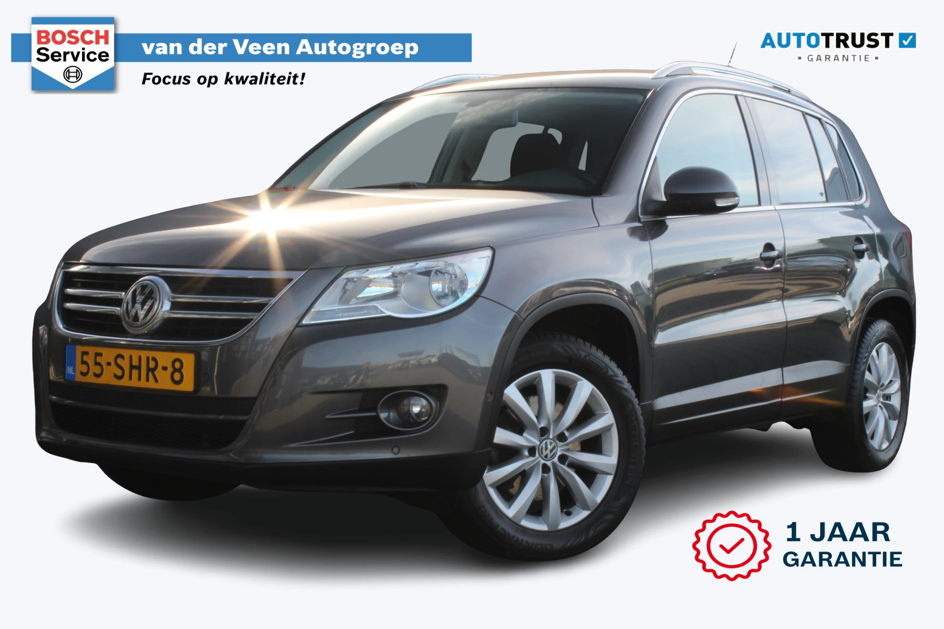 Ze zeggen dat Duitsers weinig humor hebben. Toch geeft deze Volkswagen Tiguan u absoluut een brede lach op uw gezicht. Kan ook niet anders. Topkwaliteit, vooruitstrevende techniek, formidabele rijsprestaties worden hier gebundeld in één auto. Volkswagen-rijders weten het: een VW is gebouwd voor duurzaamheid en deze Tiguan ziet er dan ook uit als nieuw. Een viercilinder benzinemotor en een handgeschakelde zesversnellingsbak verzorgen de aandrijving van deze SUV. Bij de uitrusting van deze auto horen onder meer 17 inch lichtmetalen velgen, warmtewerend glas, in hoogte verstelbare voorstoelen, verstelbare lendensteunen en snelheidsafhankelijke stuurbekrachtiging.