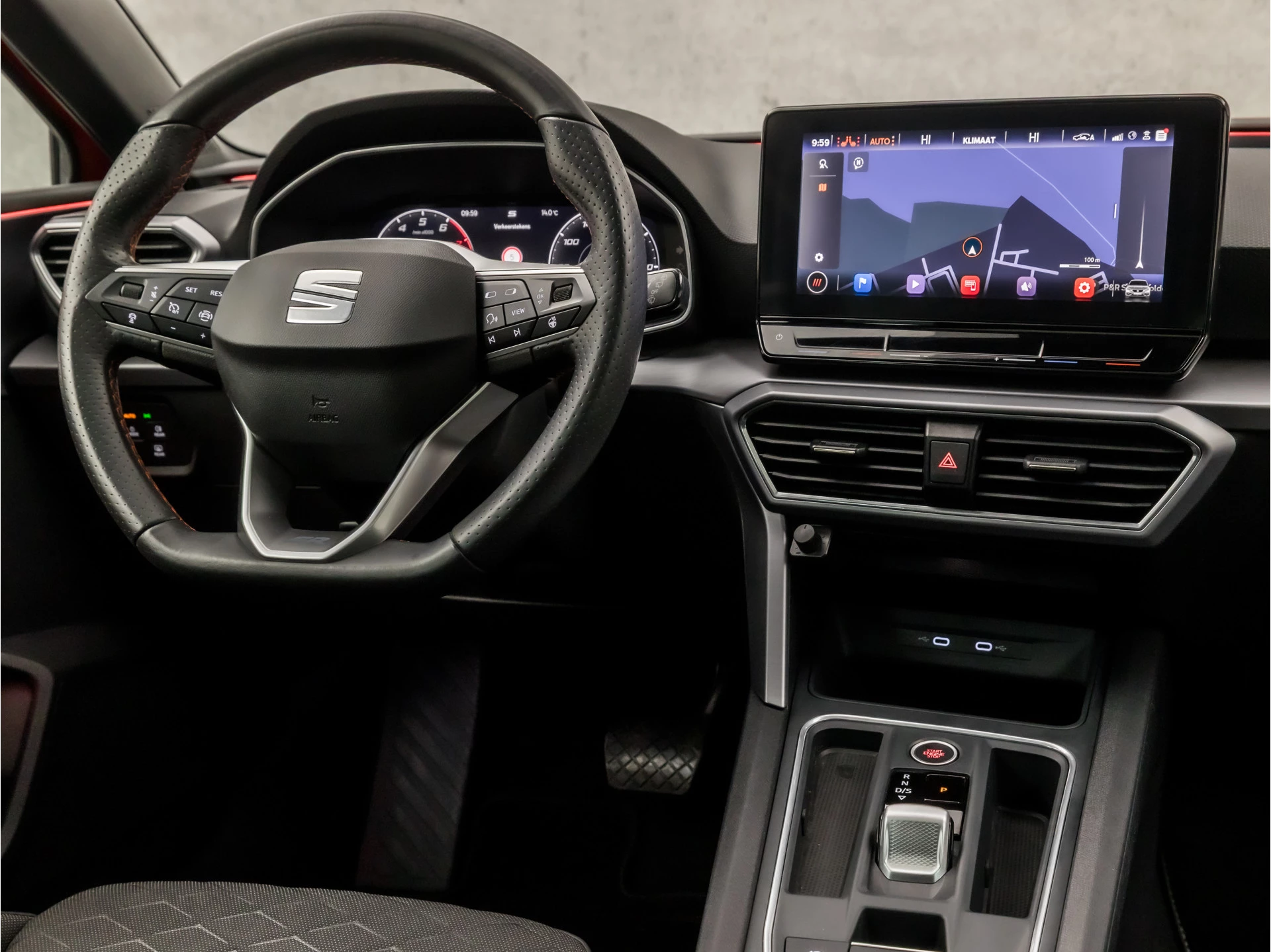 Het personaliseren van uw cockpitinterface is mogelijk met het digitale dashboard in deze auto. Ongelukken of parkeerschade? Dat gebeurt u niet meer, met de achteruitrijcamera. Adaptive cruise control is veilig en comfortabel. De snelheidsregelaar houdt automatisch afstand tot het voertuig dat voor u rijdt. Deze SEAT Leon is voorzien van remote services. Via uw smartphone bedient u diverse functies ook op afstand en krijgt u informatie over de status van uw auto. U kunt tijdens de rit uw ogen steeds op de weg houden, want het audio-installatiesysteem (met DAB!) en het navigatiesysteem kunt u bedienen vanaf het stuur of met spraak. Wat u ook in deze auto kunt vinden zijn automatische airconditioning, sportstuur met schakelpaddels, draadloos opladen, regensensor, keyless entry en automatisch dimmende binnenspiegel.