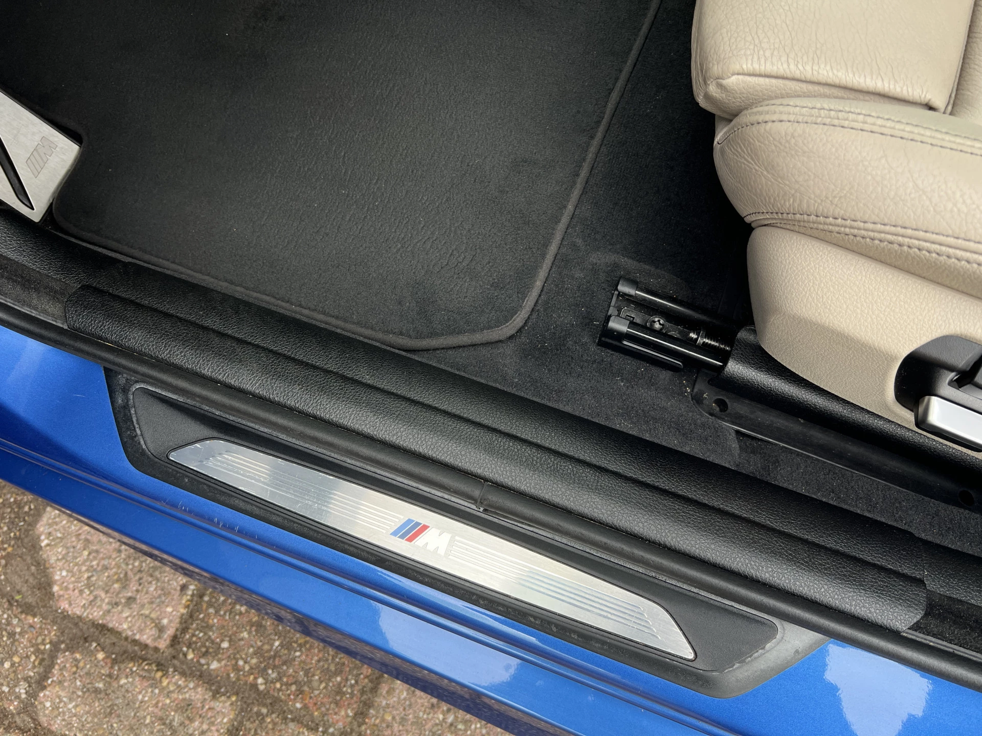 De bijzondere lakkleur Estorilblauw met een Dakota Oyster lederen interieur en houtzwarte accenten in combinatie met het M-sportpakket geven de auto een luxe en tevens sportieve uitstraling.