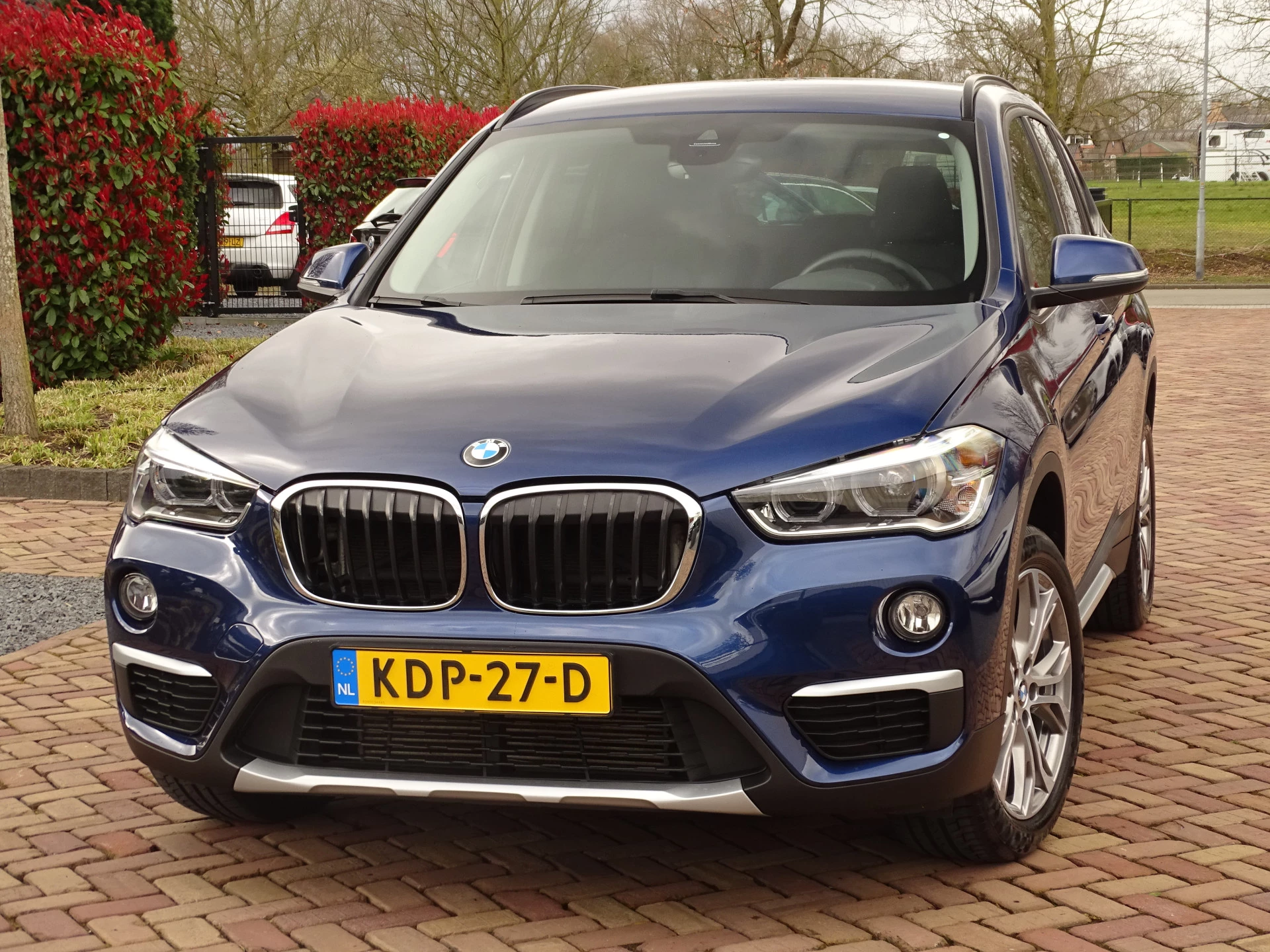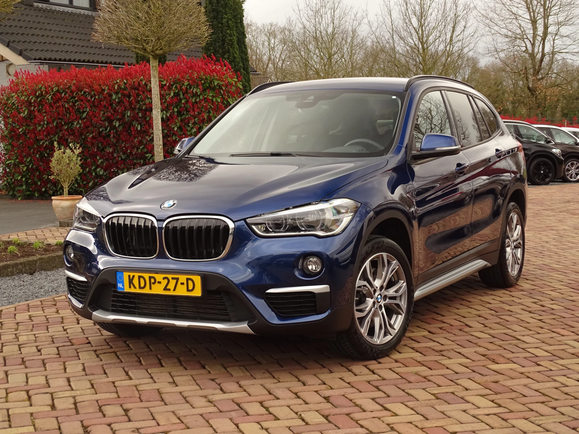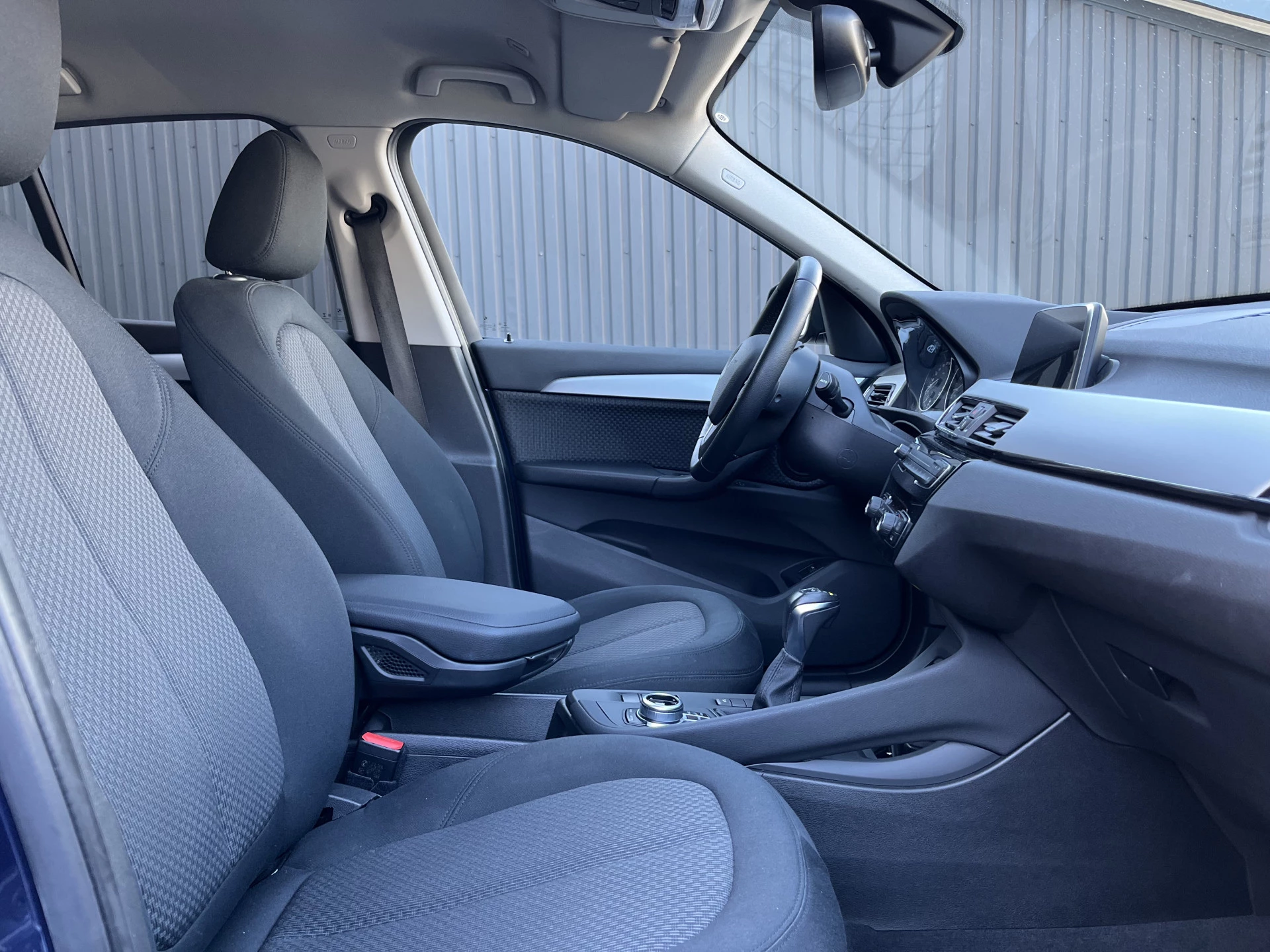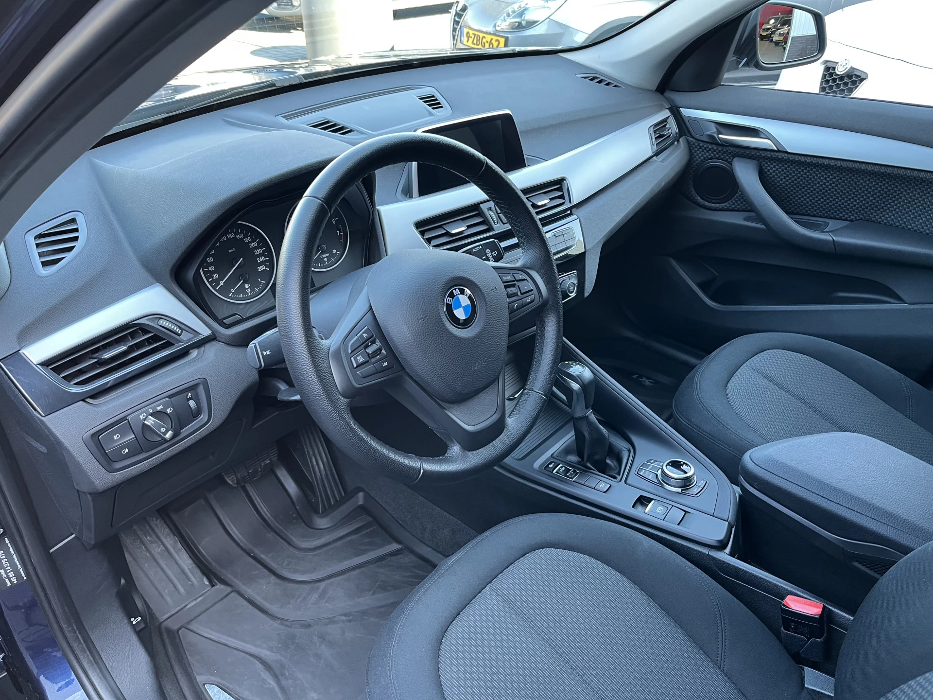 Deze BMW X1 xDrive 20i is uitgevoerd in een prachtige blauwe lak Mediterranean Blue Metallic. Het exterieur wordt aangevuld met mooie chroomaccenten (waaronder een matzilveren diffuser, sideskirts en frontlip die onderdeel zijn van het originele X-line pakket) en stijlvolle 18-inch velgen, wat de auto echt een chique uitstraling geeft.