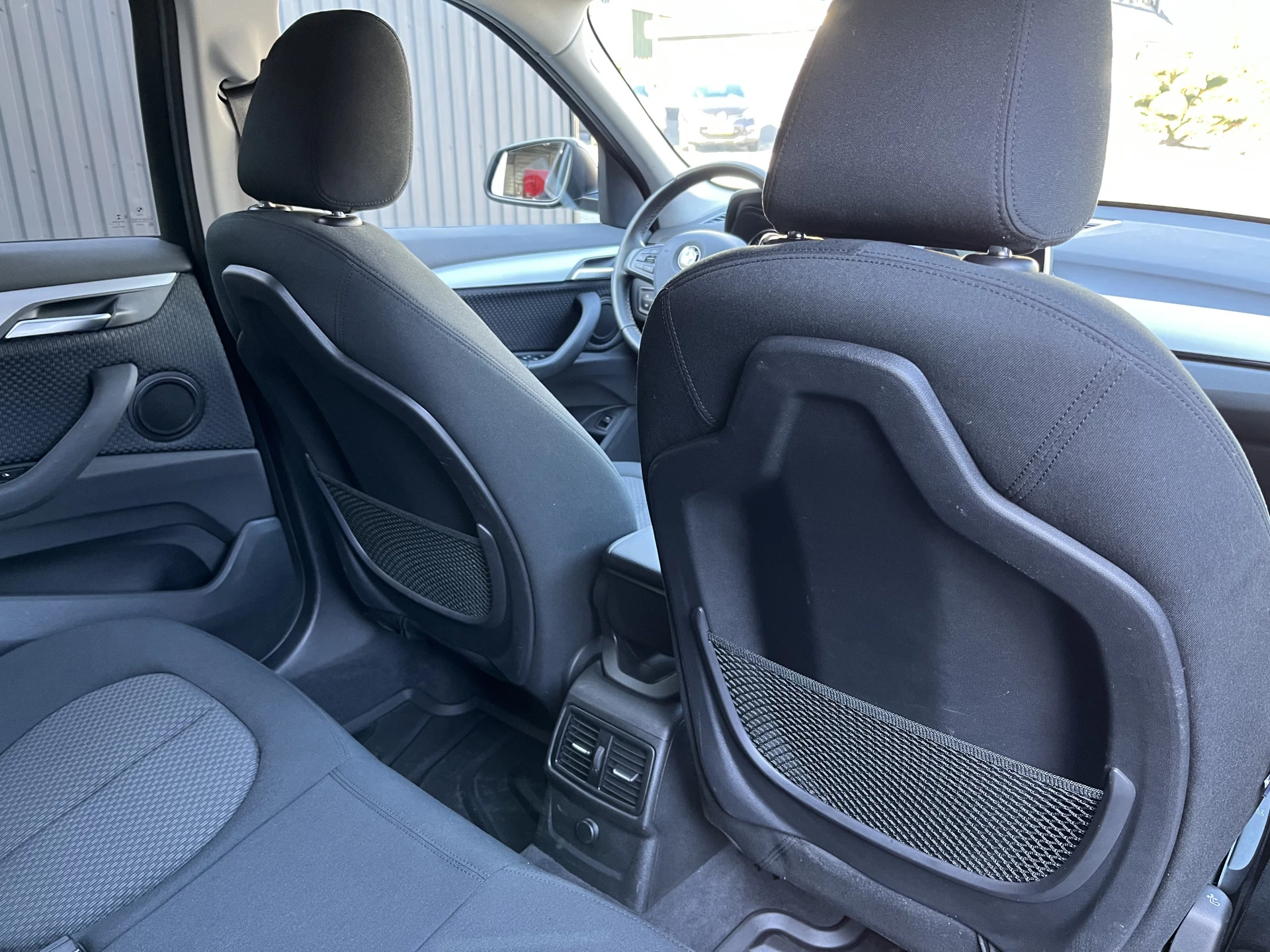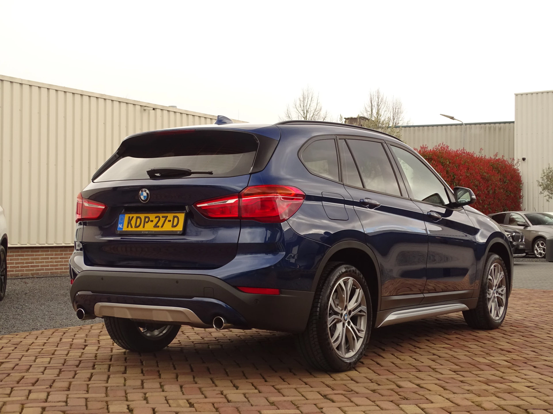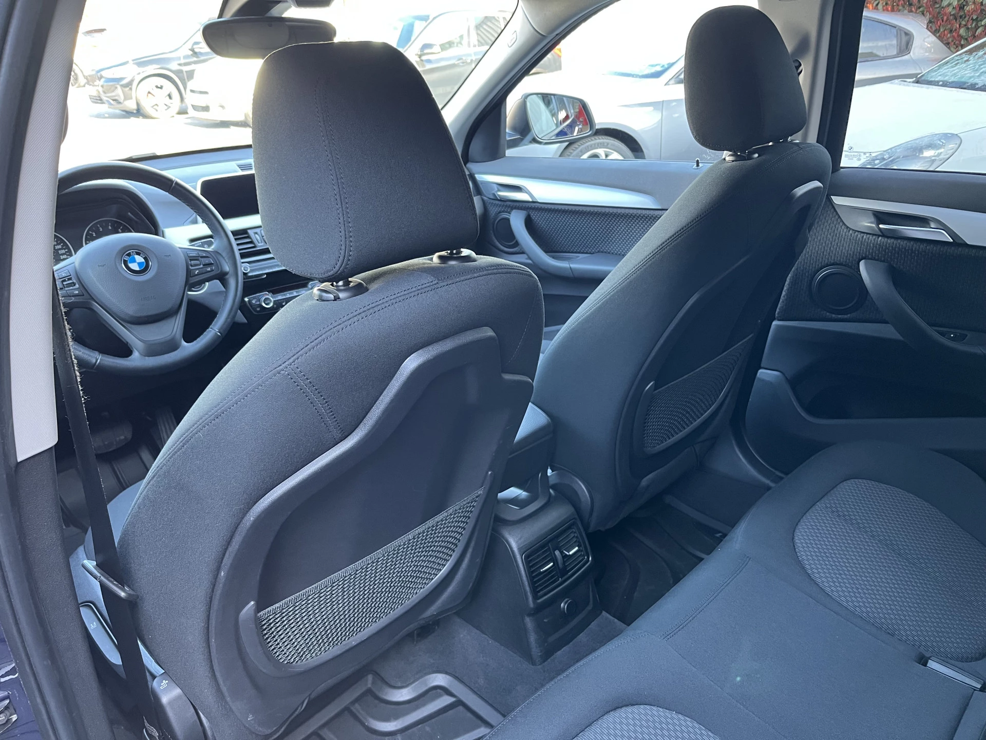 Deze BMW X1 xDrive 20i is uitgevoerd in een prachtige blauwe lak Mediterranean Blue Metallic. Het exterieur wordt aangevuld met mooie chroomaccenten (waaronder een matzilveren diffuser, sideskirts en frontlip die onderdeel zijn van het originele X-line pakket) en stijlvolle 18-inch velgen, wat de auto echt een chique uitstraling geeft.