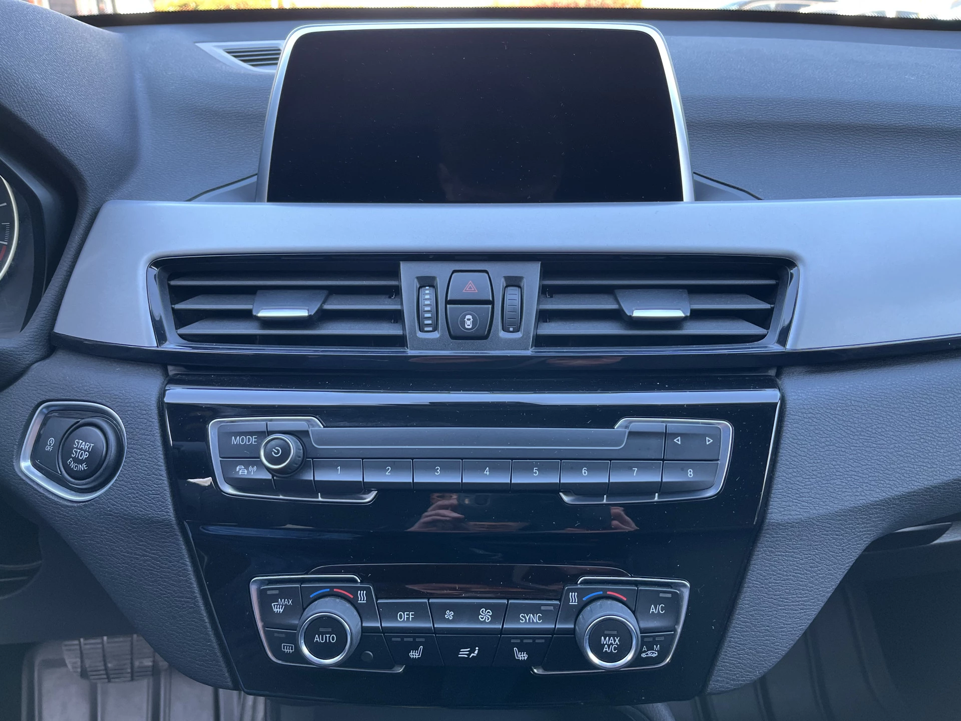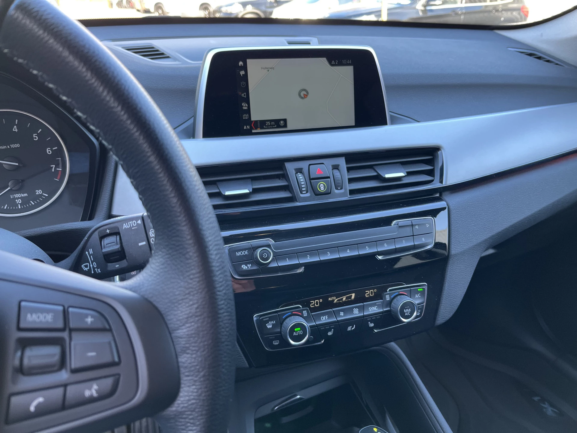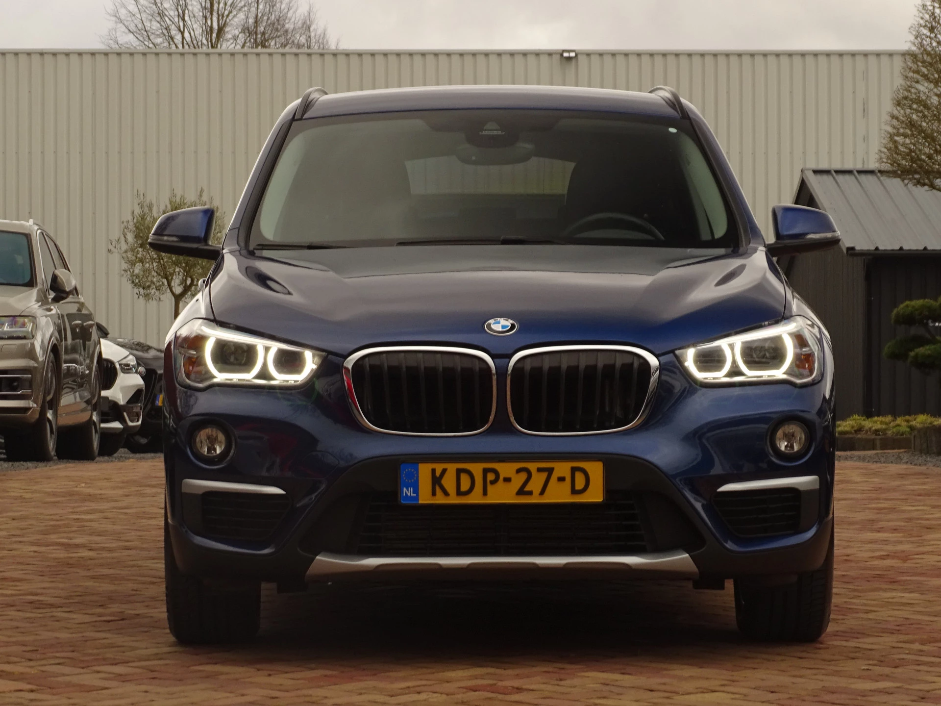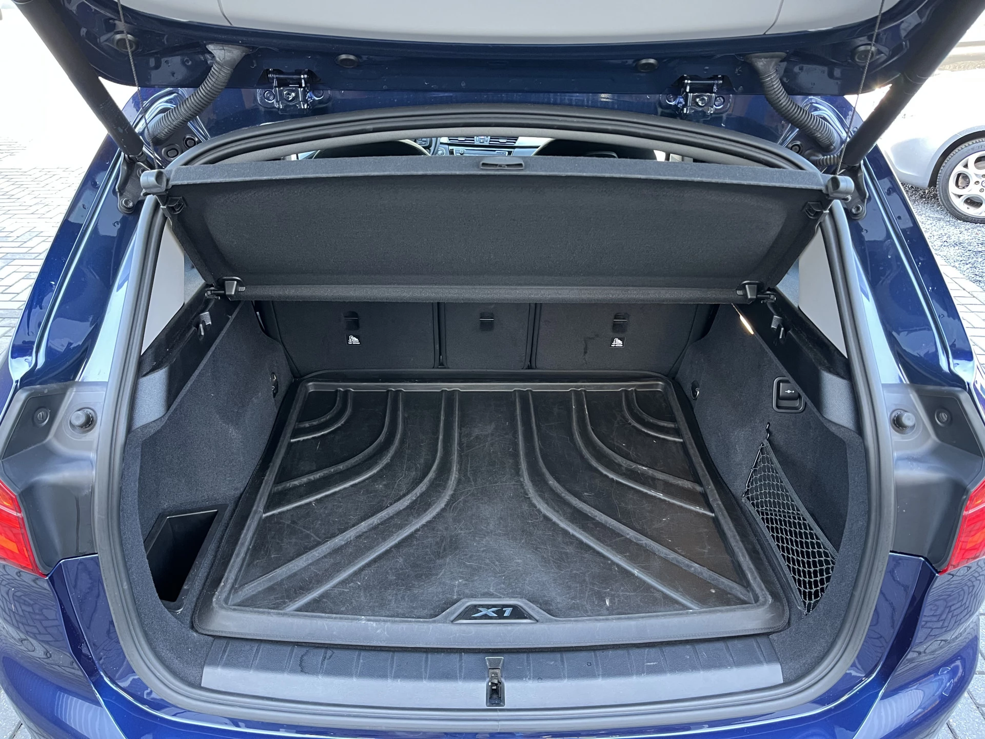 Deze BMW X1 xDrive 20i is uitgevoerd in een prachtige blauwe lak Mediterranean Blue Metallic. Het exterieur wordt aangevuld met mooie chroomaccenten (waaronder een matzilveren diffuser, sideskirts en frontlip die onderdeel zijn van het originele X-line pakket) en stijlvolle 18-inch velgen, wat de auto echt een chique uitstraling geeft.