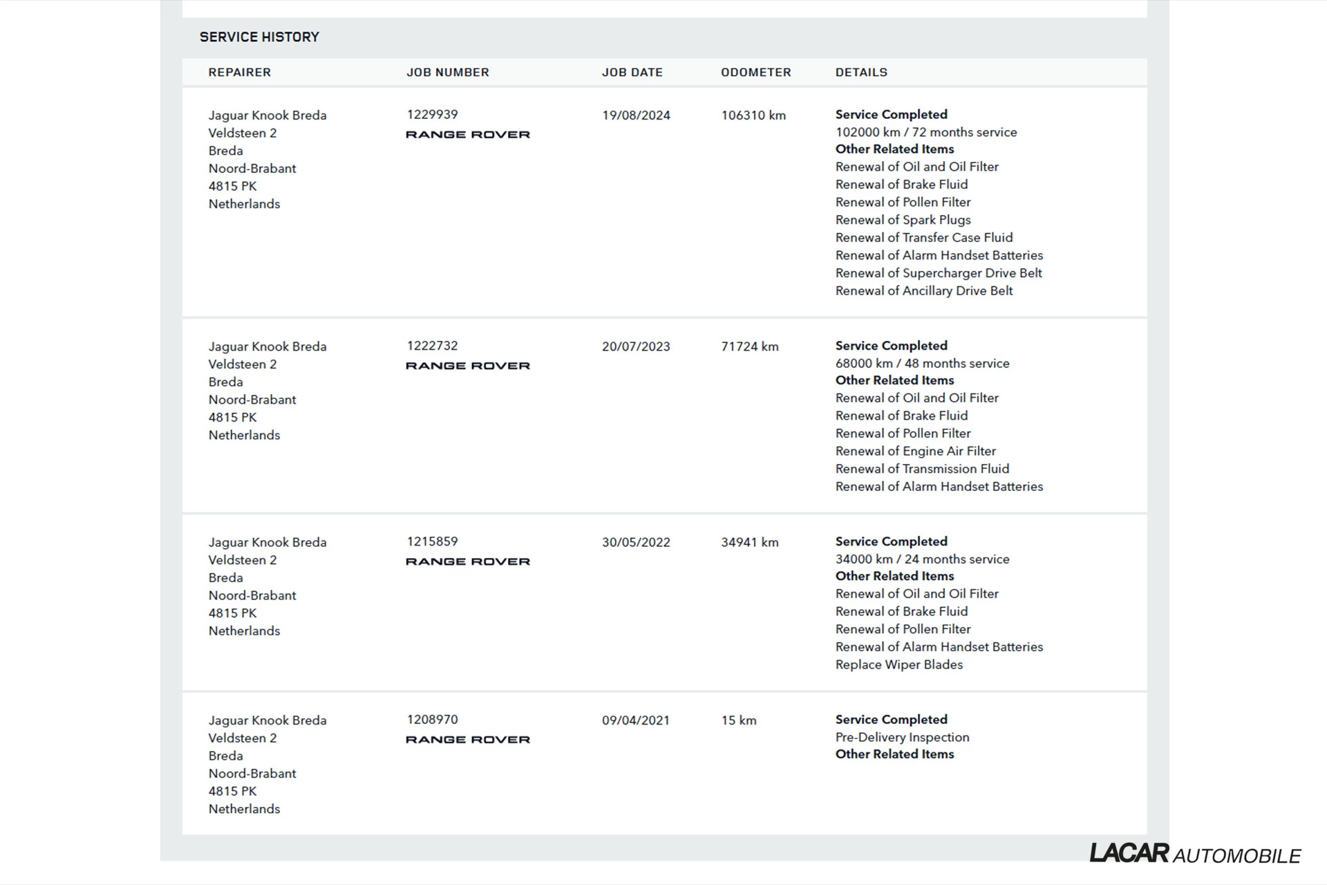 Om de auto in top conditie te houden bieden wij het volgende afleverpakket.