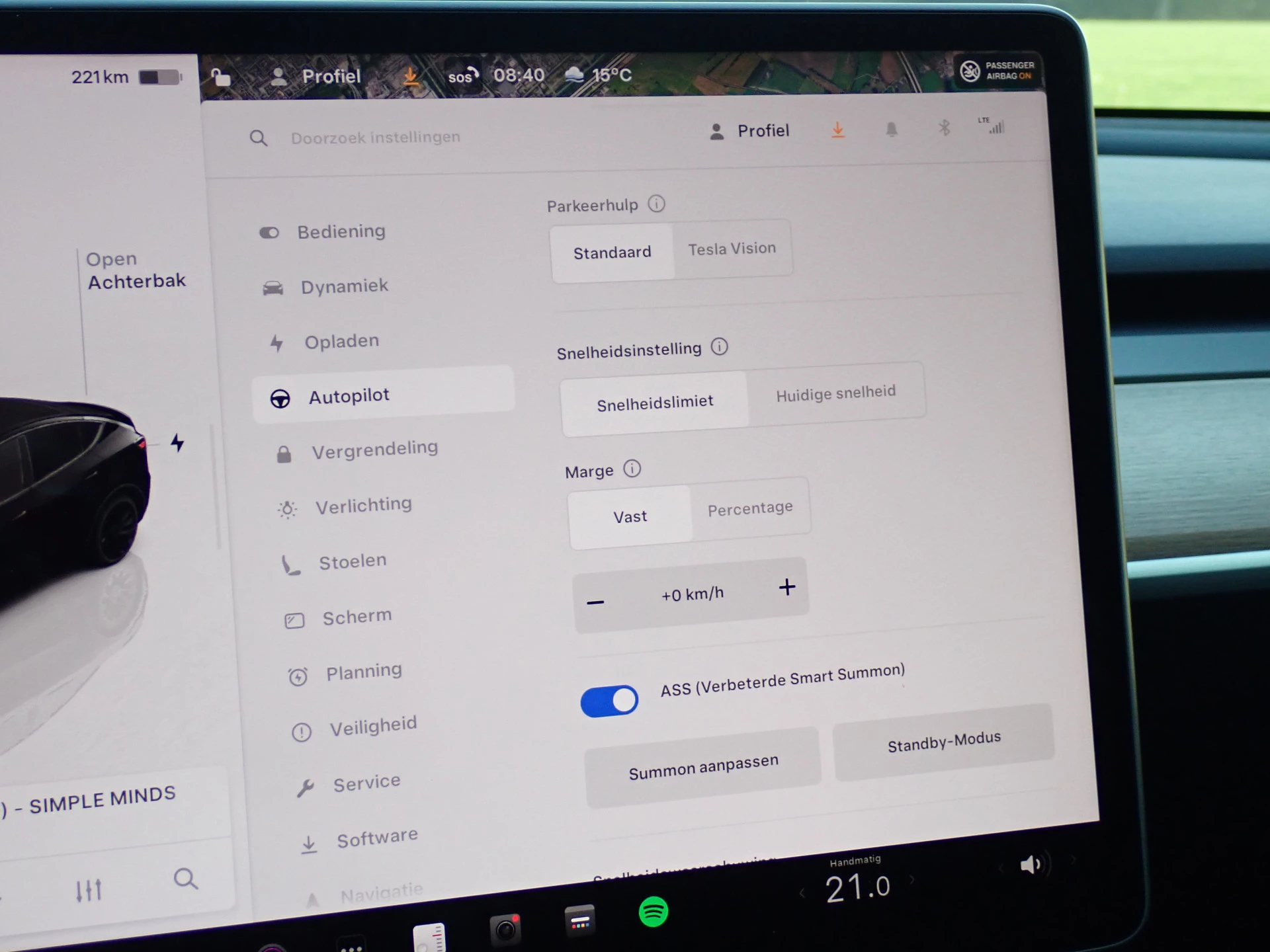 SMART SUMMON (automatisch in/uit parkeren + verrijden via TESLA app)