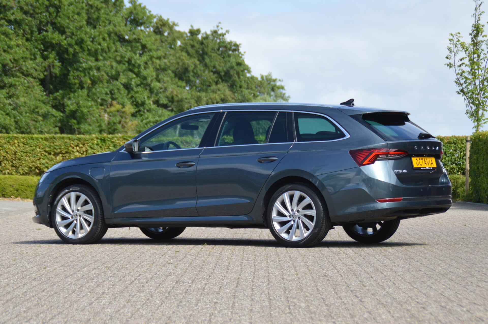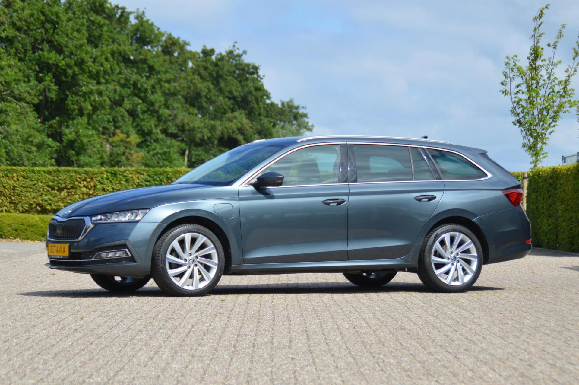 Zeer nette jong gebruikte Skoda Octavia Combi plug in hybride. Volledig dealer onderhouden, de gehele historie is tot in detail bekend en ter inzage. Bij binnenkomst hebben we een onderhoudsbeurt uitgevoerd, waarbij tevens de airco is geserviced en de voorbanden zijn vervangen De ruime Tsjechische stationcar is bovendien zeer compleet uitgevoerd; zo is er een volautomatische airconditioning aanwezig, een uitgebreid multimediasyteem Columbus (met o.a. navigatie en Apple Carplay), parkeren wordt een stuk gemakkelijker met sensoren voor en achter én een achteruitrijcamera. Aan de buitenzijde vallen de mooie 18 inch velgen op, in combinatie met de chique Quarzgrijs metallic carrosseriekleur met subtiele chroomlijsten rondom de zijramen en privacy glass. Extra comfort en veiligheid bied de adaptieve cruise control, en de systemen Front en Lane Assist. Als accesoire is er een trekhaak met afneembare kogel gemonteerd, zodat de Skoda een geremde aanhanger van maar liefst 1500 kg mag trekken. Fijn om te weten is dat er nooit in de auto is gerookt en er zijn geen huisdieren in vervoerd. Voor diegene die op zoek is naar een bijzonder compleet uitgevoerde ruime auto.