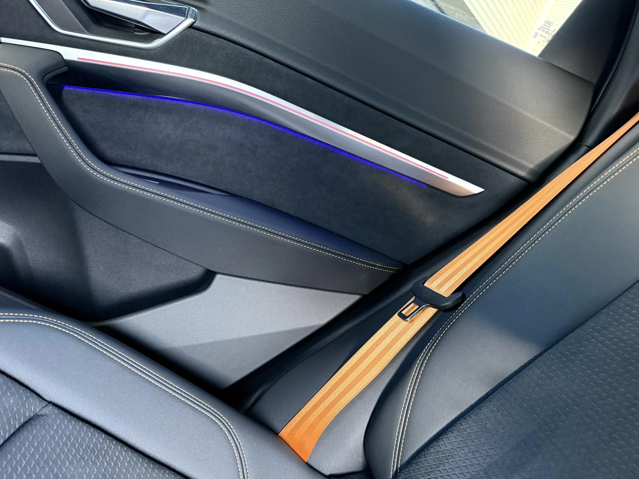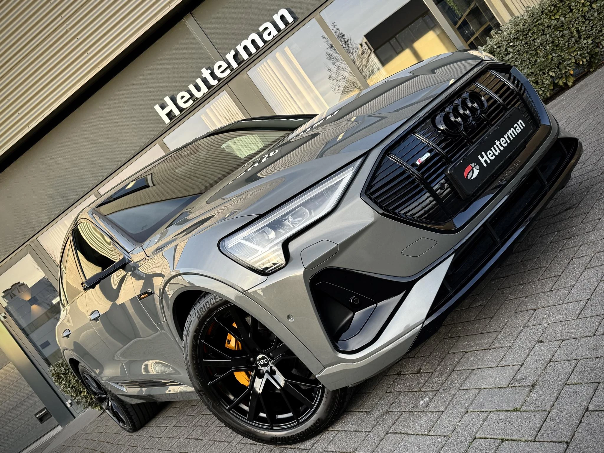 Alleen deze week van *** € 46.950 voor € 44.950 *** In absolute nieuwstaat verkerende Audi E-Tron 55 Quatttro Sportback. Van eerste eigenaar, dealer onderhouden, schade vrij en rechtstreeks bij Audi Duitsland afkomstig. Unieke Black Edition uitvoering in het Chronos grijs. Voorzien van S Line interieur en S line exterieur pakket, hoogglans zwart optiek exterieur pakket, hoogglans zwarte 21 Audi Sport velgen, E-Tron geel/ oranje remklauwen/ gordels en sticksels, elec. Achterklep, matrix LED, head up Display, dubbele laadpoort rechts en links met snellaad functie, 360gr camera met topview functie, camera spiegels met dodehoek functie, sfeerverlichting (naar kleur instelbaar), ACC radar cruise control, key less entry en go, Bang & Olufsen premium Audio installatie, 2 x Laadkabel aanwezig, Quattro vierwielaandrijving (hoogte instelbaar), 30 % wegenbelasting korting, lage bijtelling voor ondernemer, prijs is rijklaar incl BTW en 1 jaar algehele garantie. Audi accu garantie t/m 9/2030 of 160.000 km SOH 96%