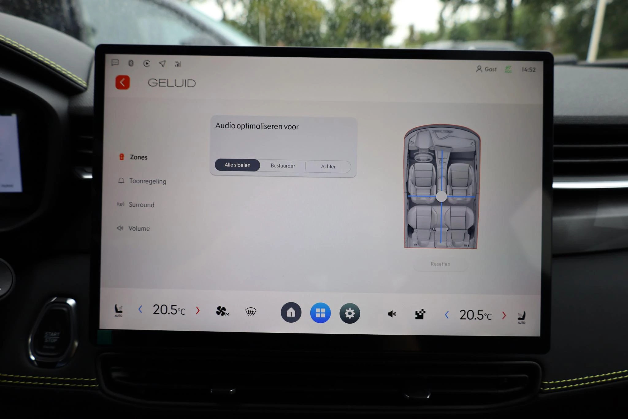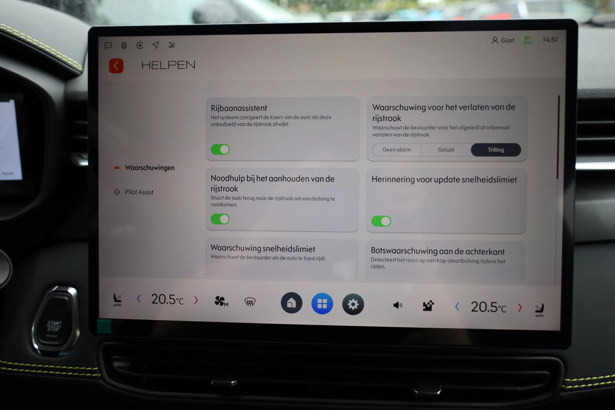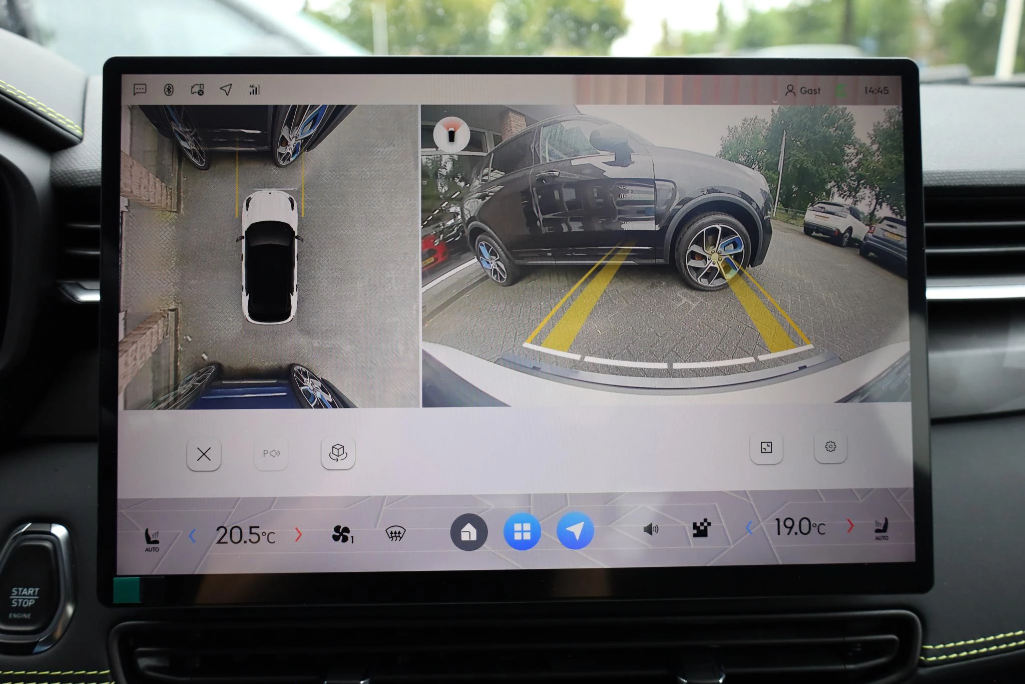 Wat ook opvalt, is de strakke en overzichtelijke informatie die het digitale dashboard levert. Elk van de vier camera's op deze auto draagt bij aan het creëren van een onbelemmerd uitzicht van 360 graden rondom de auto. Adaptive cruise control is een comfortabele en veilige optie. Het systeem reguleert de snelheid en houdt automatisch afstand tot uw voorligger. De ingebouwde file assistent is een echte helper als het vaststaat onderweg. Het systeem meet ruimte tot de auto vóór u permanent en activeert zelfs de remmen als uw voorligger stopt. In deze auto kunt u de belangrijkste functies bedienen met uw stem. Deze Lynk & Co is voorzien van connected drive services, premium audiosysteem, navigatiesysteem, achteropkomend verkeer waarschuwing, electronic climate control en draadloos opladen.