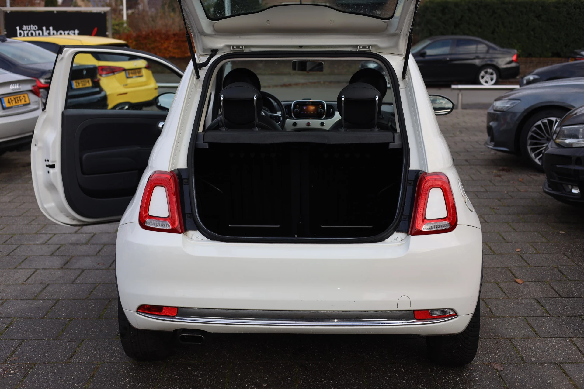 Laat die grotere auto's maar ploeteren in de stad. Deze Fiat 500 komt overal en past overal. Klein in kosten, groot in gemak! Onder de motorkap zit een benzinemotor met twee cilinders, die zeer zuinig is. Deze Fiat 500 komt in de luxe uitvoering, inclusief lederen interieur. Een heerlijk zonnetje, of indrukwekkende wolkenpartijen? Bekijk ze onbelemmerd door het elektrisch bediende glazen panoramadak. Natuurlijk behoren 15 inch lichtmetalen velgen, LED-dagrijverlichting en in delen neerklapbare achterbank ook tot de uitrusting van deze complete auto.