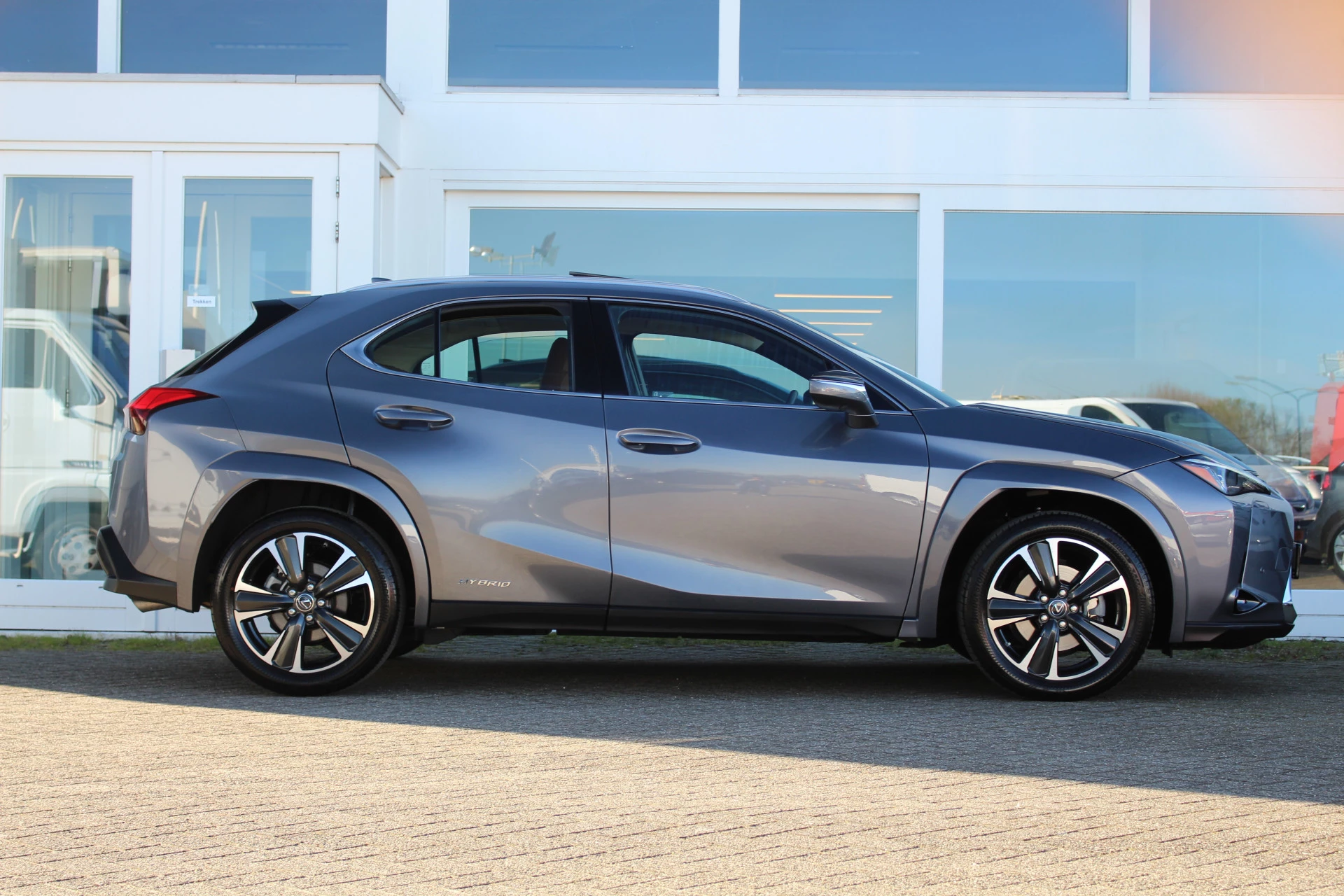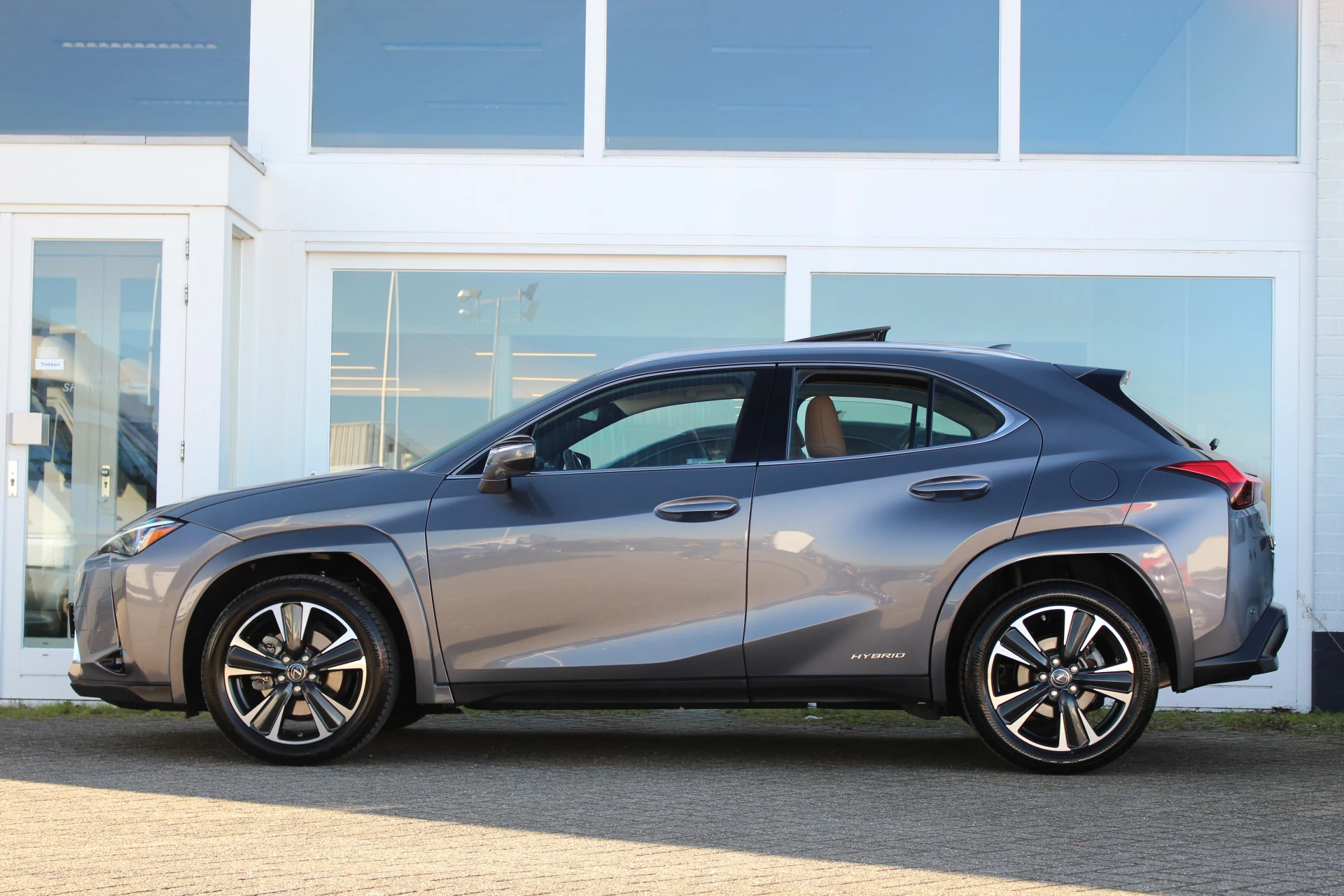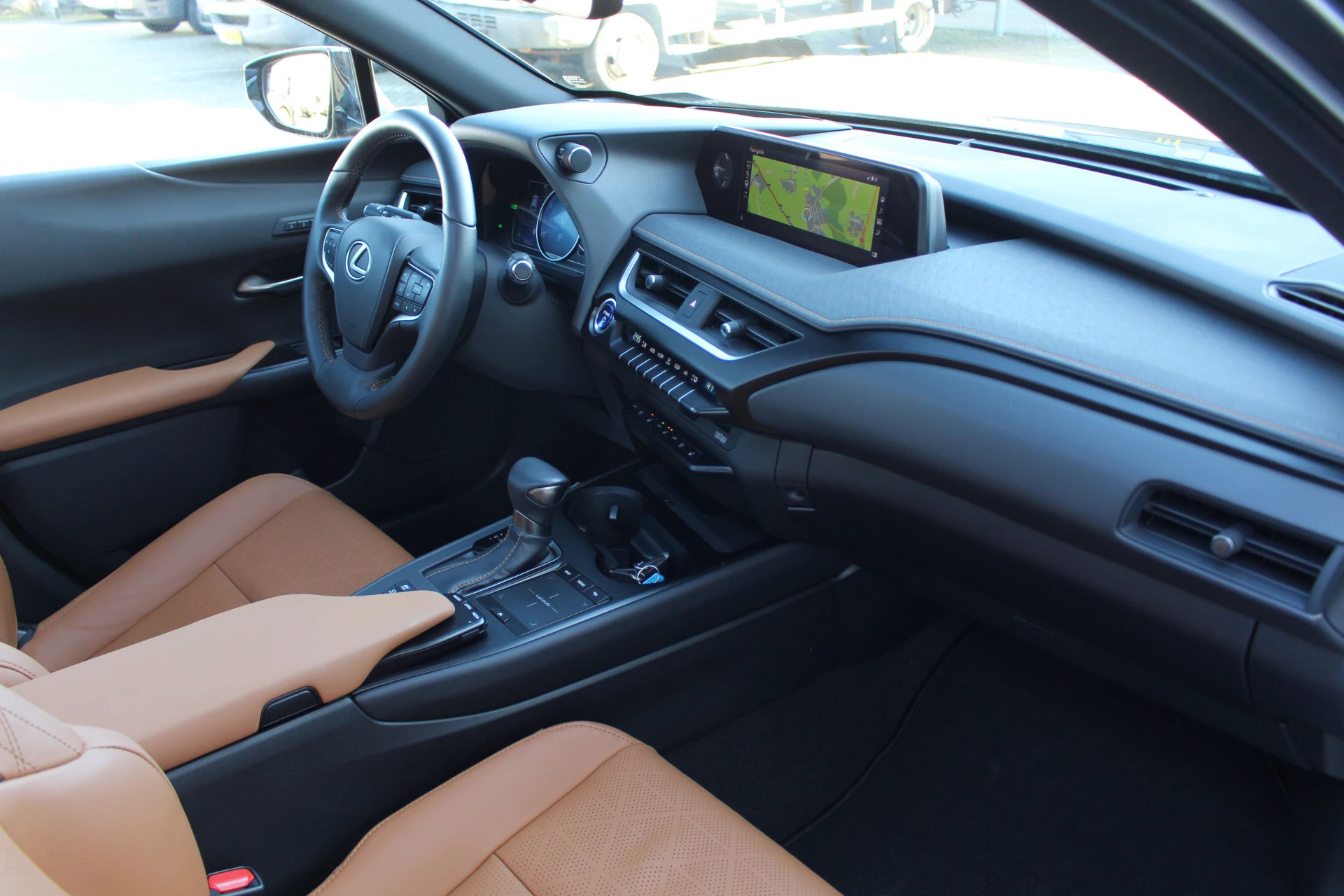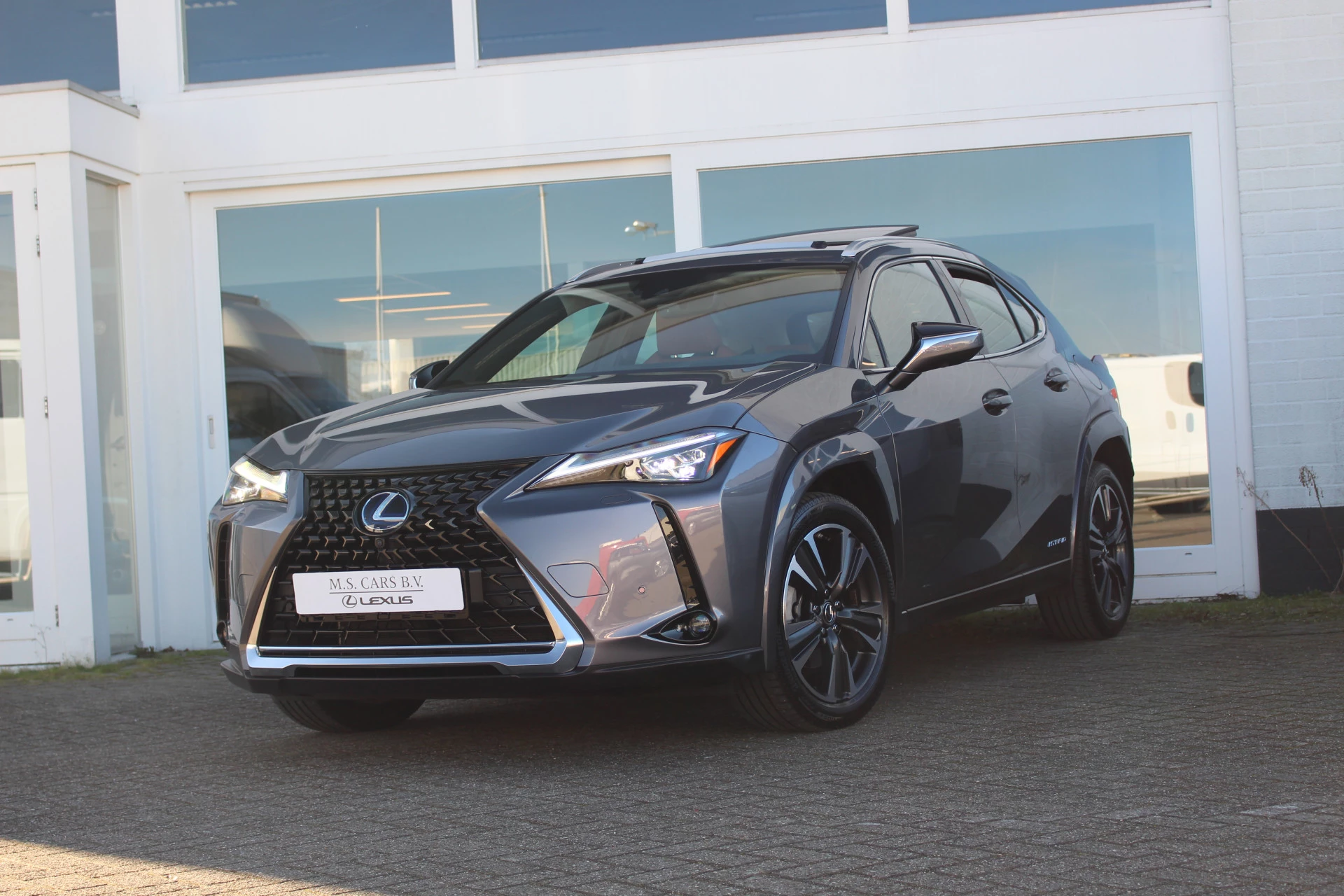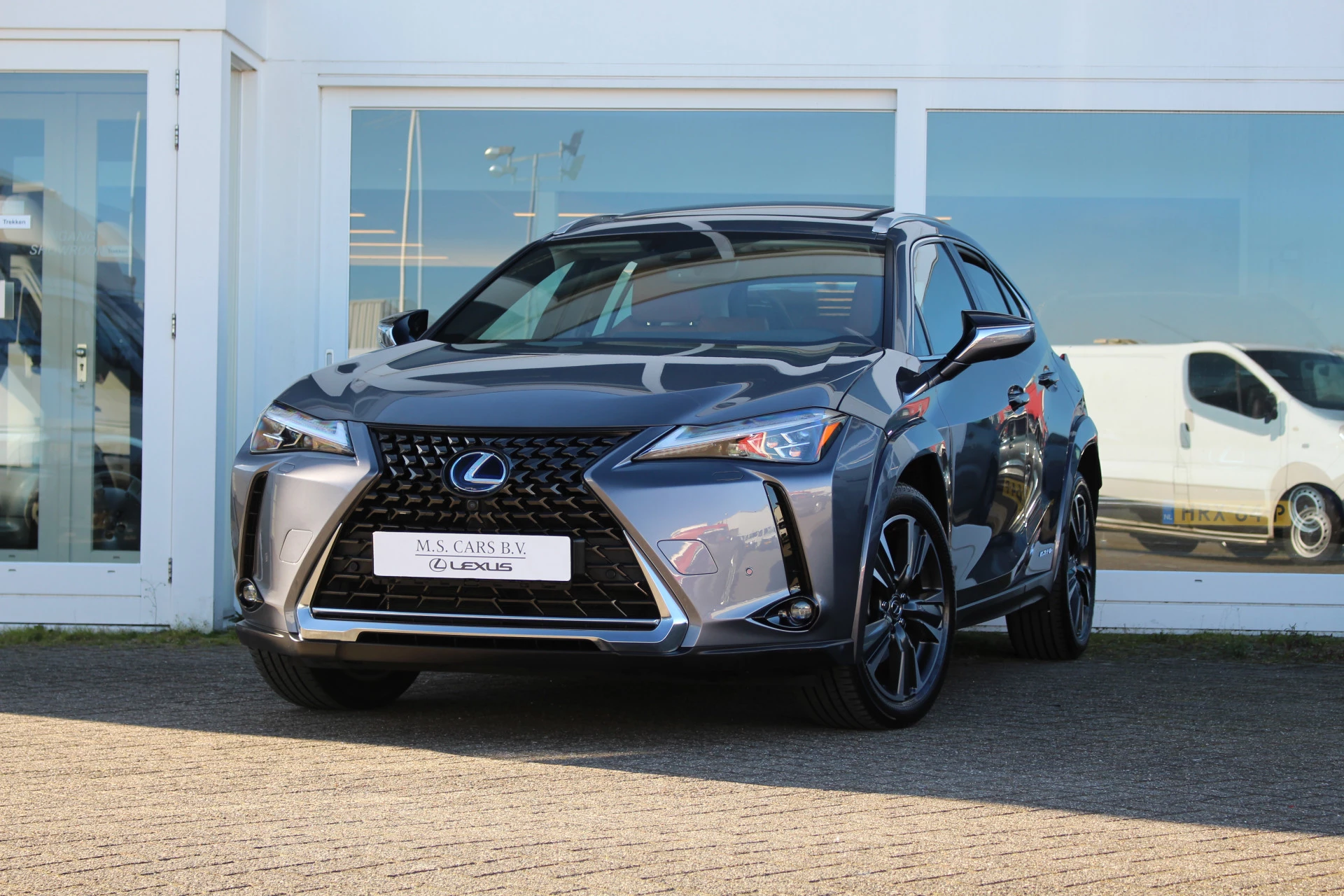 In nieuwstaat verkerende Lexus UX250h in de President Line uitvoering van het bouwjaar 2020 met maar liefst 14.223 aantoonbare kilometers! Prachtige wagen afkomstig van 1e eigenaar en Lexus dealeronderhouden, uitgerust in de kleur Sonic Grey Metallic met Hazel bruin leder bekleding en bruine stiksels binnen het interieur, een zeer chique kleurstelling. Erg zuinig en comfortabel vanwege zijn 2.0 4-cilinder benzine/hybride motor die zorgt voor 184pk! Naast zijn mooie looks heeft deze Lexus UX u vele luxe aan te bieden o.a. Mark Levinson Premium Audio, open dak, stuurwielverwarming, 360-graden camera, head up display, stoelverwarming, stoelventilatie, multi-led koplampen adaptief, elektrisch verstelbare stoelen met geheugenfunctie, elektrische achterklep en nog meer! Bent u op zoek naar een compacte wagen met hoge instap, vele luxe opties zoals u bent gewend van Lexus en de mooie looks? Dan is dit wellicht de wagen voor u!