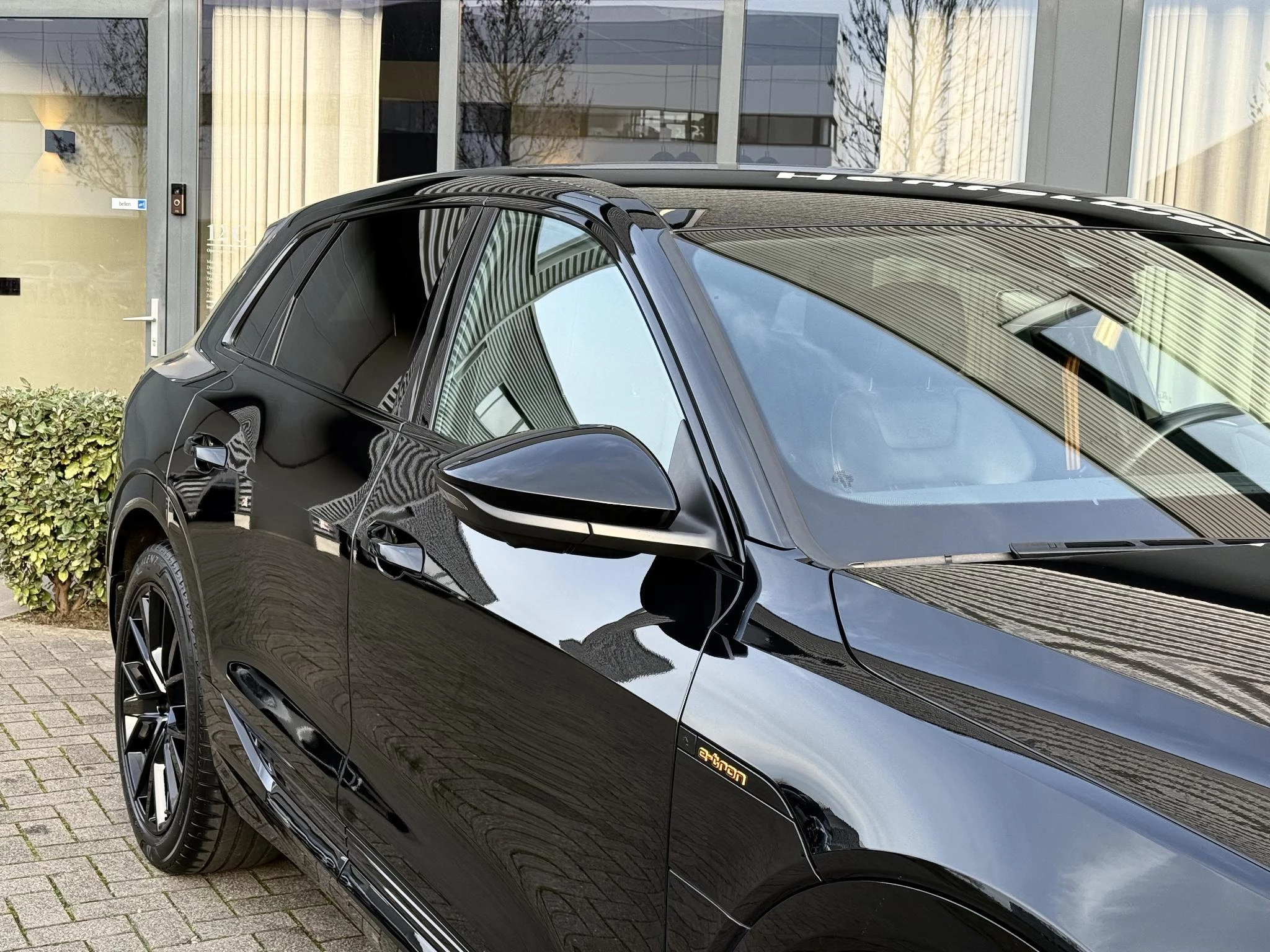 Alleen deze week *** van EUR 40.950,- voor EUR 39.950,- *** In zeer nette staat verkerende, van eerste eigenaar afkomstige Audi E-Tron Quattro. Rechtstreeks bij Audi Duitsland afkomstig, niet in gerookt en uitgevoerd in unieke Black Edition Uitvoering! Voorzien van S line interieur en S line exterieur, Black optiek exterieur pakket met hoogglans zwarte details en 21 inch hooglans zwarte S line velgen, E-Tron geel/ oranje remklauwen/ sitcksels en gordels, volledig lederen bekleding, head up display, dodehoek assistent, rondomzicht camera met 360gr en topview functie, stoel verwarming, stuurwiel verwarming, achterbank verwarming,key less entry en go, 2 x laadpoort rechts en links met snellaad functie, S line stoelen met comfort hoofdsteunen, privacy glas af fabriek, sfeerverlichting (naar kleur instelbaar), Quattro vierwielaandrijving, Luchtvering (hoogte instelbaar), stoelverwarming, snellaad functie, elec. achterklep, Matrix LED Verlichting, zwarte hemelbekleding, 2 x laadkabel aanwezig, 2 x sleutel, historie aanwezig, Audi accu garantie t/m 7 - 2030, 30% wegenbelasting korting, prijs is rijklaar incl BTW en 1 jaar volledige garantie. TOPSTAAT!