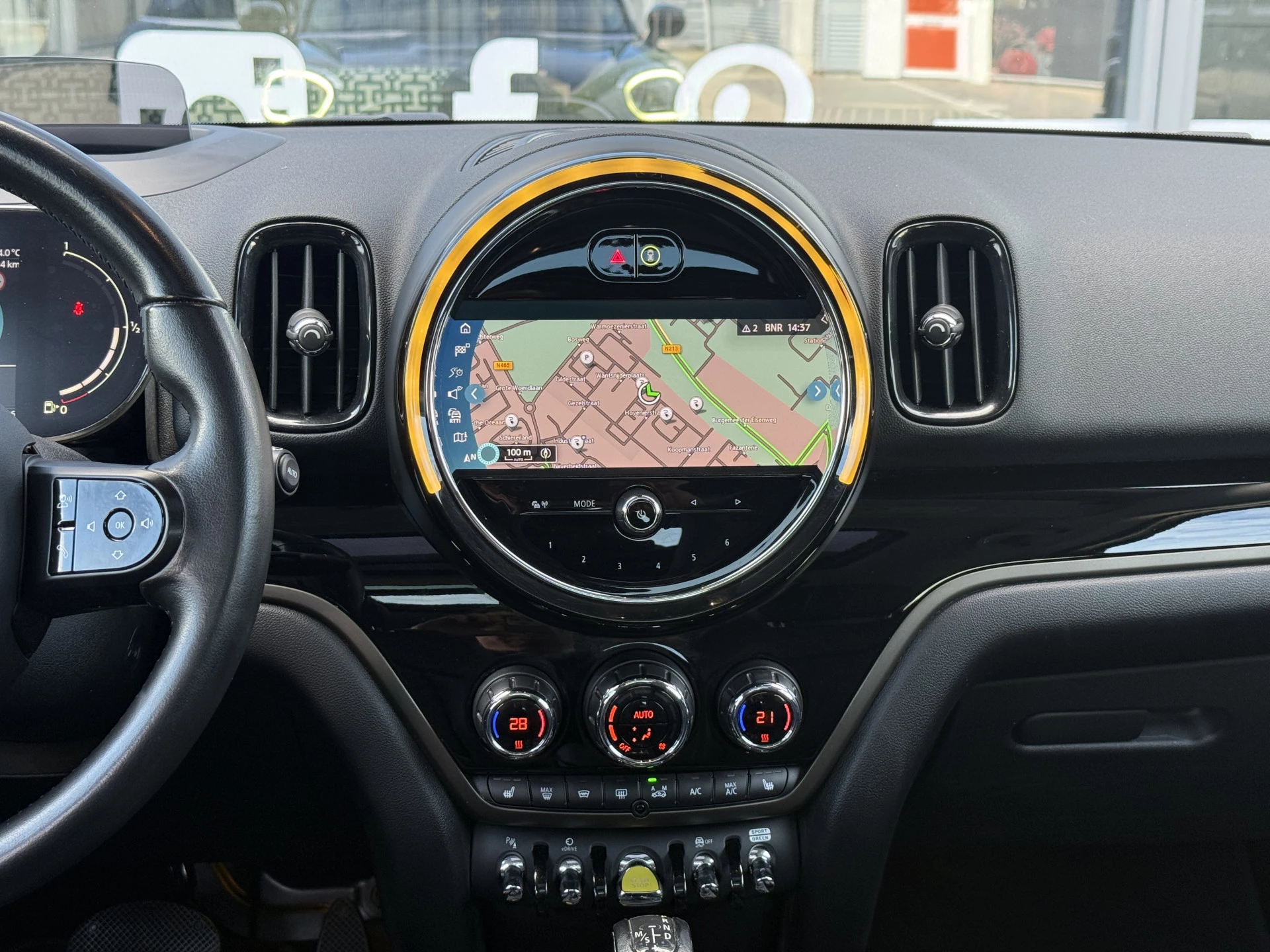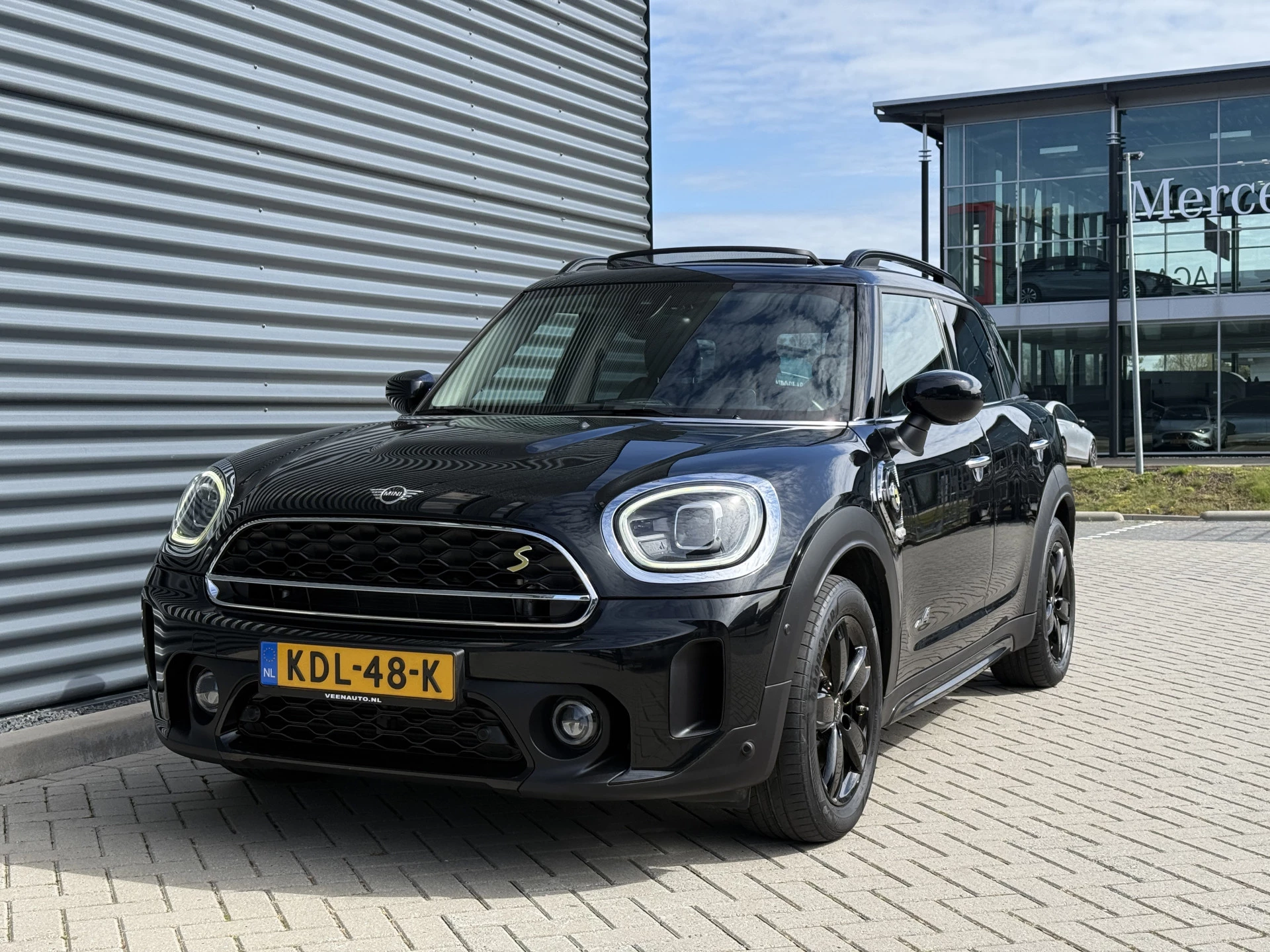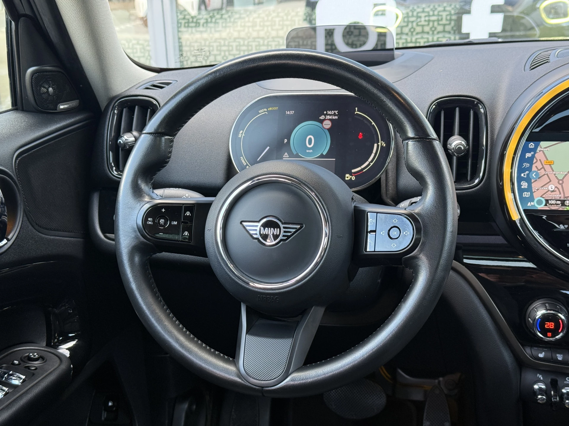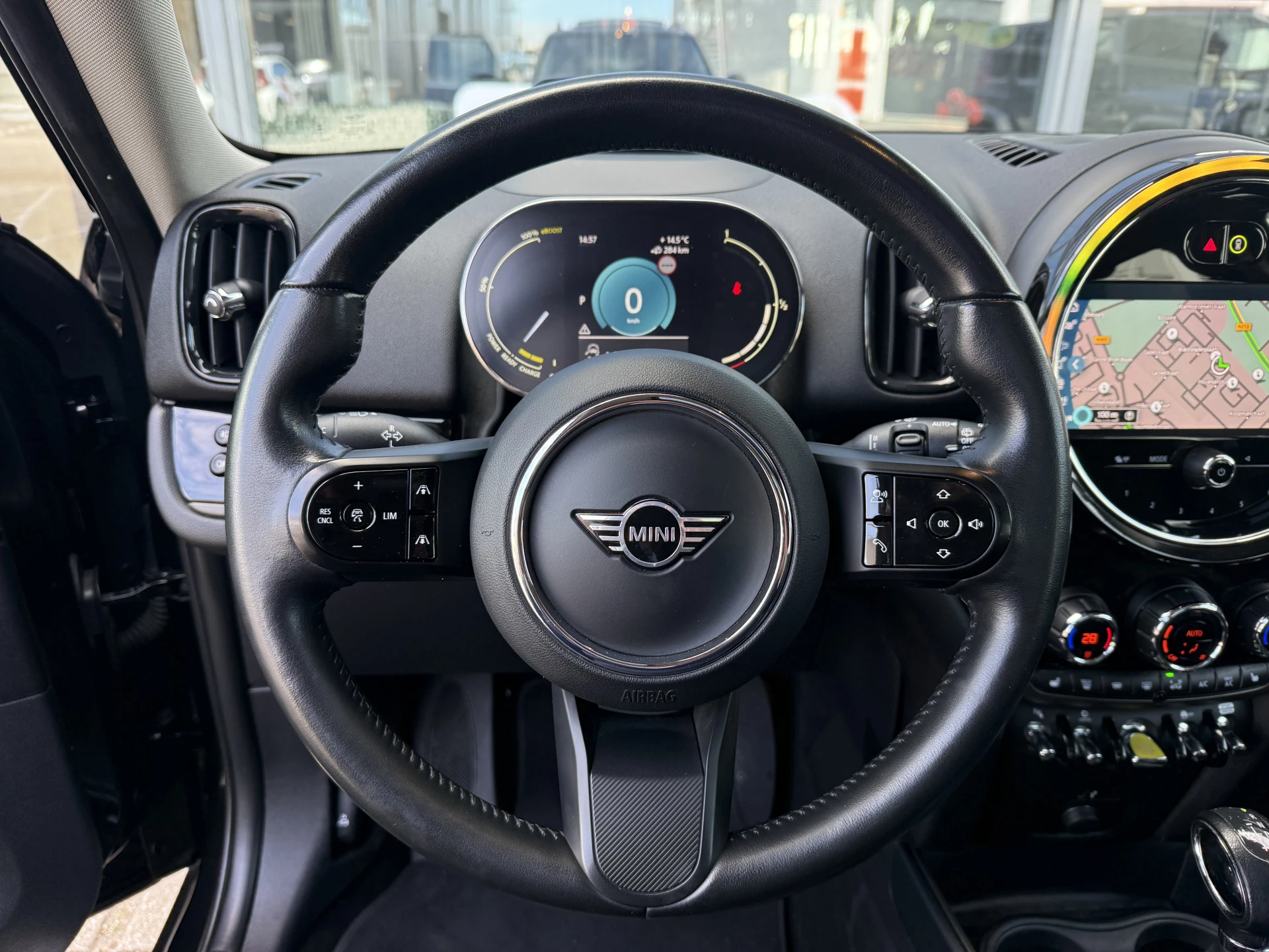 Schitterende Mini Countryman 2.0 Cooper SE ALL4 Plug in Hybrid in Midnight Black metallic met hoogglans zwarte licht metalen velgen. Deze Mini is bijzonder compleet uitgerust met onder andere de volgende opties: Panorama dak, elektrische bedienbare voorstoelen met memory, lederen bekleding, Harman Kardon Audio, LED interieur sfeer verlichtingspakket, Apple Carplay, achteruitrijcamera, navigatie, virtuele cockpit, Head Up display, adaptieve cruise control, keyless entry, parkeersensoren voor + achter met parkeer assistent, etc..