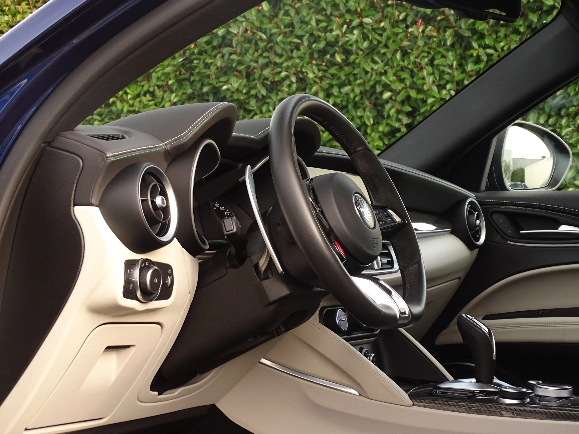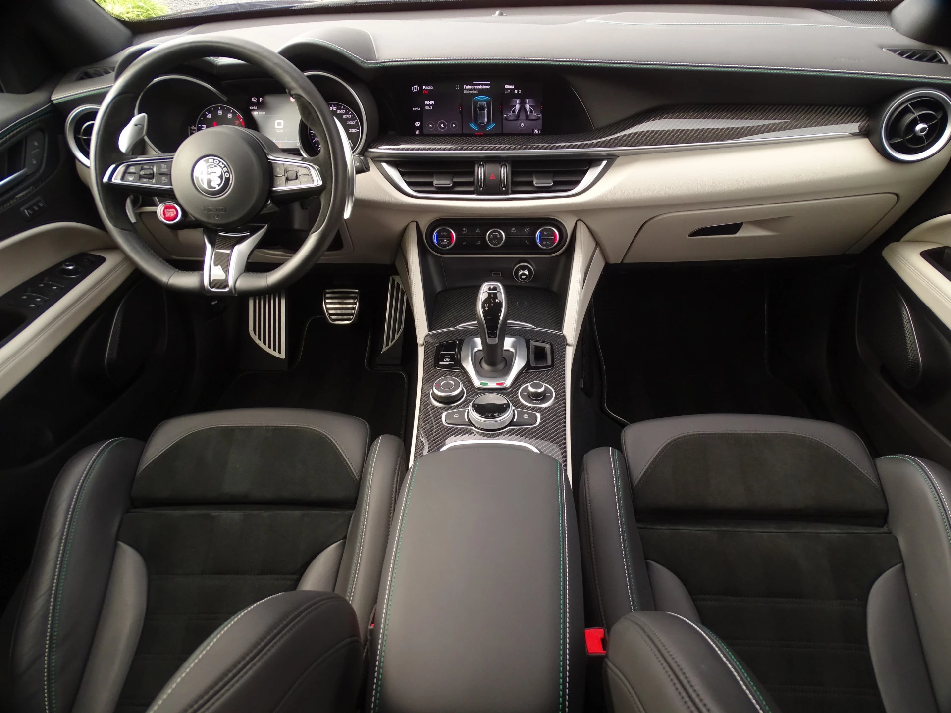 Wanneer je een Stelvio Q zelf besteld kun je hem kiezen zoals je hem zelf het liefste ziet. Dhr Krebs uit Oostenrijk gooide het eens over een andere boeg, hij koos ervoor om niet zoals de massa te zijn en alles behalve de lak zwart te bestellen, maar heeft juist voor lichtgrijs gekozen. Wat ons een betreft een diepe buiging, want dat is altijd even lastig kiezen vanaf een plaatje. Maar de complimenten zijn voor Dhr. Krebs want nog nooit hebben wij zo'n prachtige en sjieke interieursamenstelling gezien in een Stelvio Q. En wat heeft hij de auto super netjes gehouden, alles lijkt nog als nieuw van binnen. Geen smetje te vinden, de showroomgeur zit er nog in, het is alsof je in een splinternieuwe Q stapt. De 1e de beste.... dit geld statistisch gezien voor bijna alle liefhebbersauto's die wij kopen van de 1e eigenaar, deze man weet als geen ander wat hij nieuw voor dit klaverblaadje heeft neergeteld... dat is dan ook de enige verklaring waarom zowel de optische staat als de technische staat zo goed is. Onderscheidend in staat en uitstraling, dat is een feit! Vlak voor zijn pensioengerechtigde leeftijd heeft hij deze parel aangekocht is onze aanname, genoeg tijd dus om hem Alfawaardig te kunnen onderhouden en verzorgen.