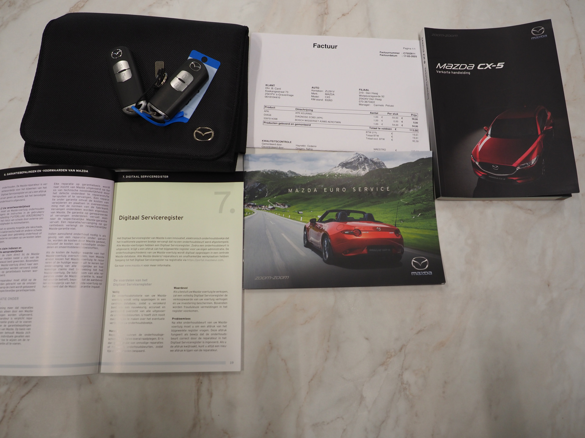 Deze Mazda CX-5 2.0 SkyActiv-G van bouwjaar 2019 heeft 92.000km gereden en verkeert in nette staat. Deze auto is voorzien van vele opties waaronder: Bose Premium Audio, Lederen Stoelen, Een Origineel Mazda Audio Navigatie systeem met Apple Carplay en Android Auto, Stuur en Stoelverwarming, Elektrisch Verstelbare Stoelen met Memory Functie, DAB radio, Een Vol Automatisch Airconditioning systeem, Keyless Entry, Cruise Control, Achteruitrijcamera, Parkeersensoren voor en achter, LED Verlichting, Afneembare Trekhaak en nog veel meer!