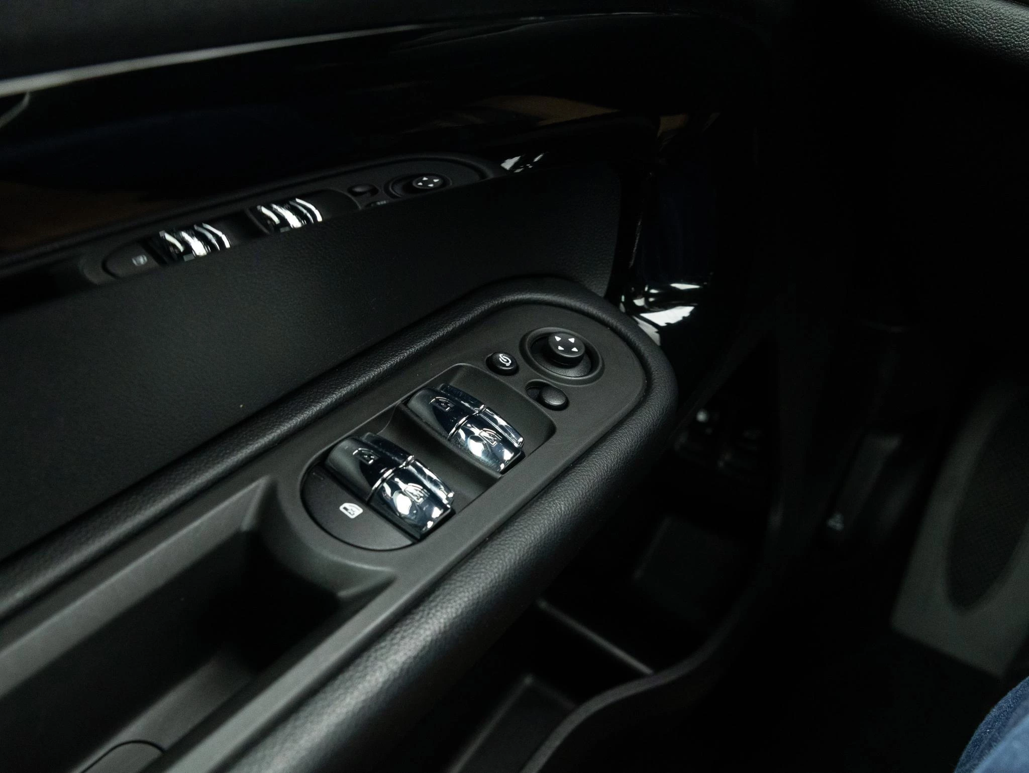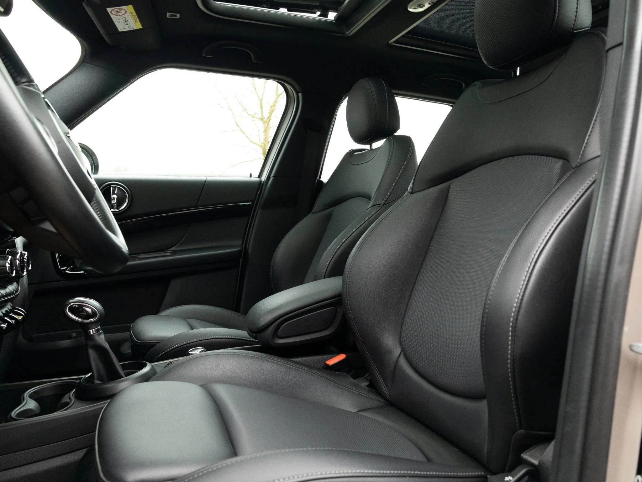 De combinatie van Rooftop Grey Metallic met zwart dak en spiegelkappen geeft deze Countryman een krachtige en moderne uitstraling. Het interieur is uitgevoerd in Carbon Black met Piano Black interieurdelen, sportstoelen en een antraciete hemelbekleding, wat zorgt voor een sportieve en hoogwaardige ambiance. Het panoramadak versterkt het ruimtelijke gevoel in het interieur.