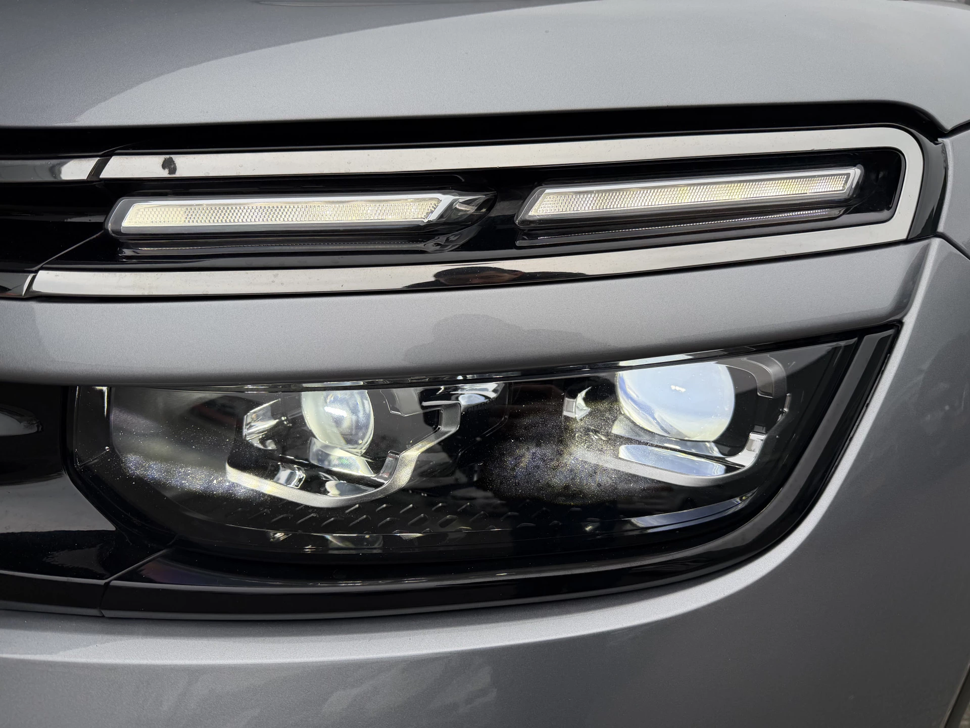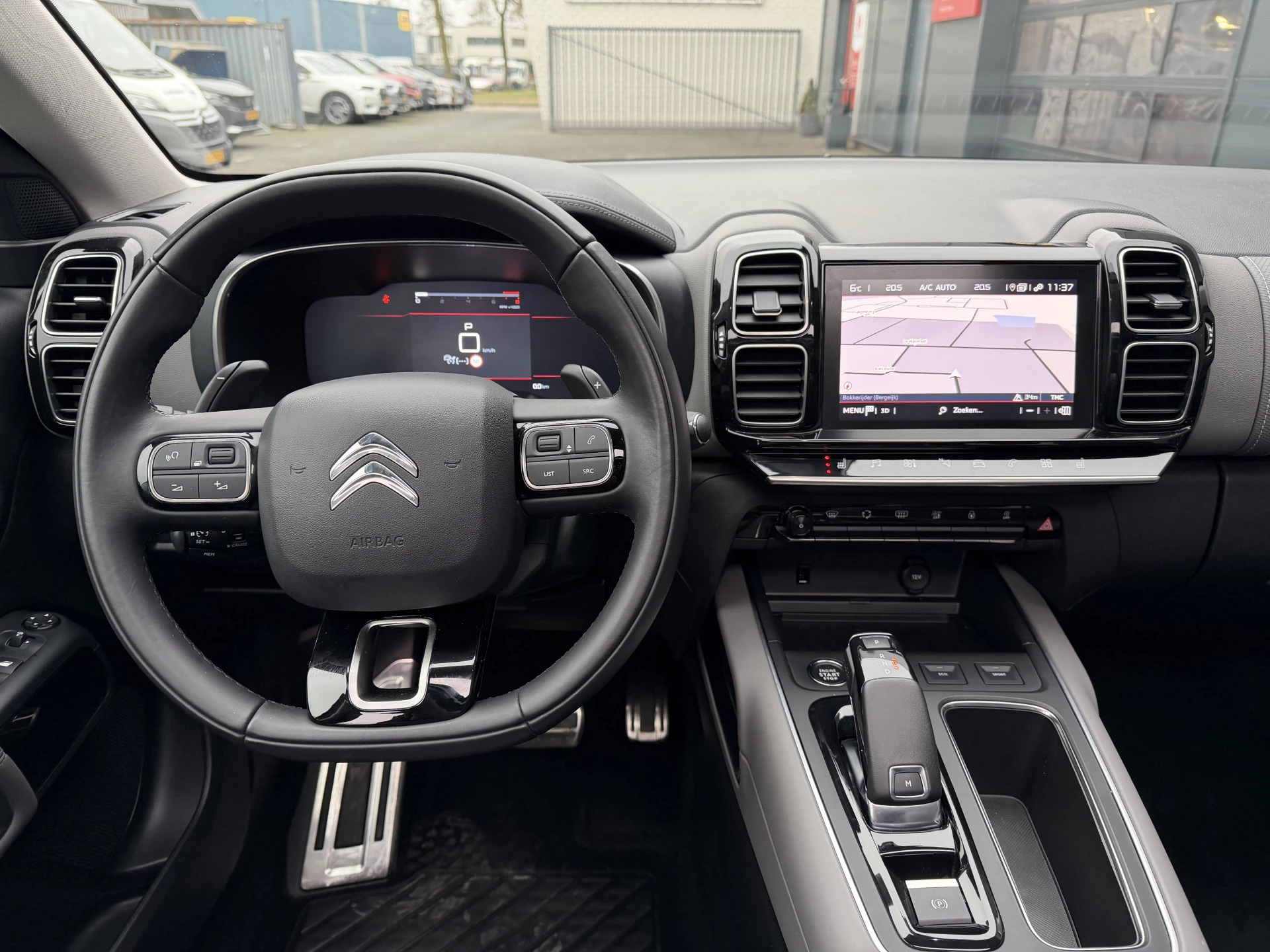 Ontdek de digitale mobiliteitswereld, met zijn dashboard dat alle noodzakelijke informatie projecteert om uw reis comfortabel en veilig te maken. Elk van de vier camera's op deze auto draagt bij aan het creëren van een onbelemmerd uitzicht van 360 graden rondom de auto. Met adaptive cruise control houdt de auto zelfstandig afstand tot uw voorligger. Een veiligheidsverhogende optie waarmee u comfortabel onderweg bent. Locatie, motorconditie, storingen... via Connected Services krijgt u alle vitale info over de auto door. Ook handig bij pech! Onderweg kunt u veilig genieten van het audiosysteem met DAB-radio en het navigatiesysteem. Want in deze Citroën bedient u ze vanaf het stuurwiel of met uw stem. Extra opties op deze auto zijn: dual zone automatische airconditioning, draadloos opladen, regensensor, keyless entry, automatisch dimmende binnenspiegel en lederen stuur.