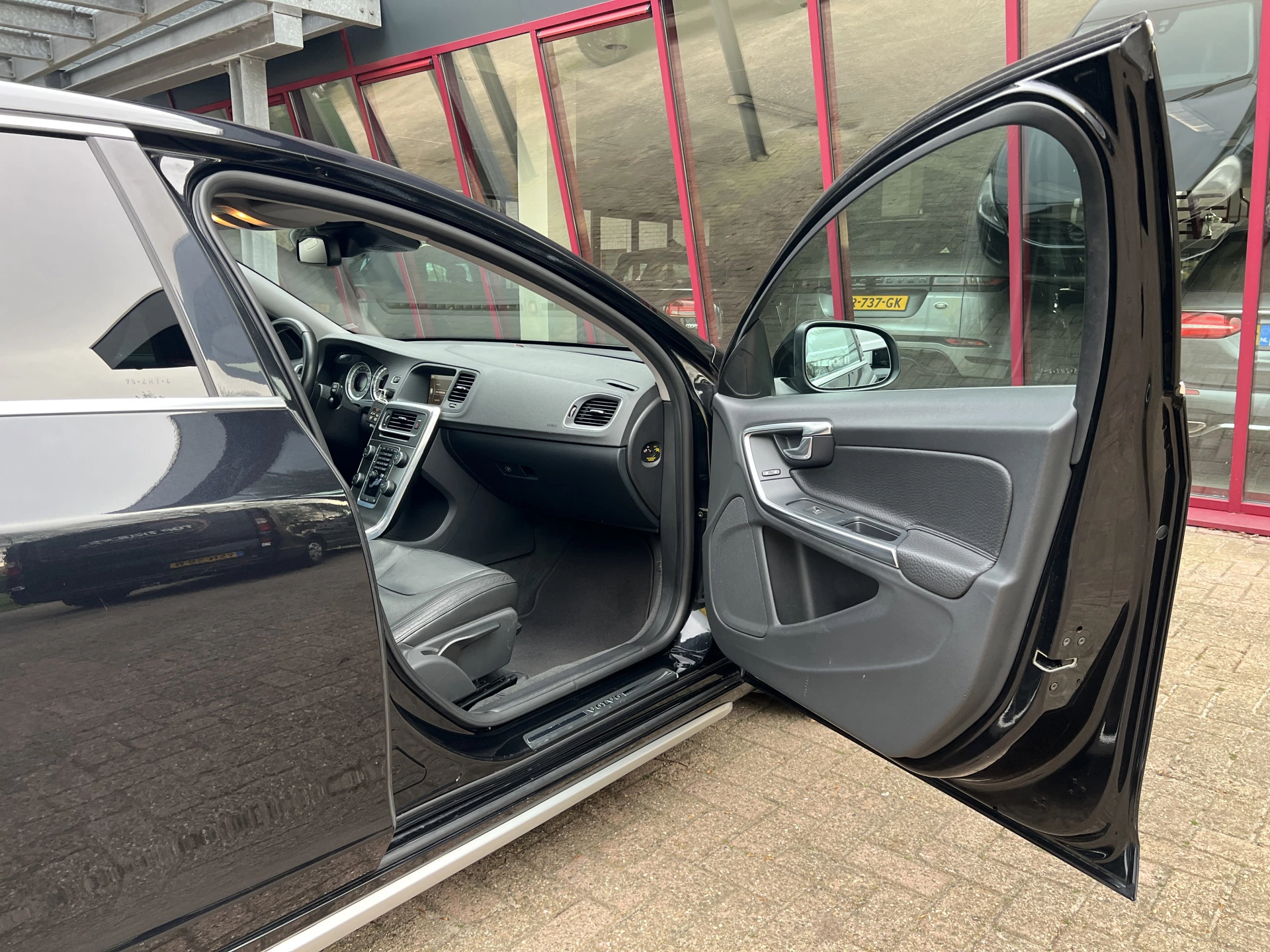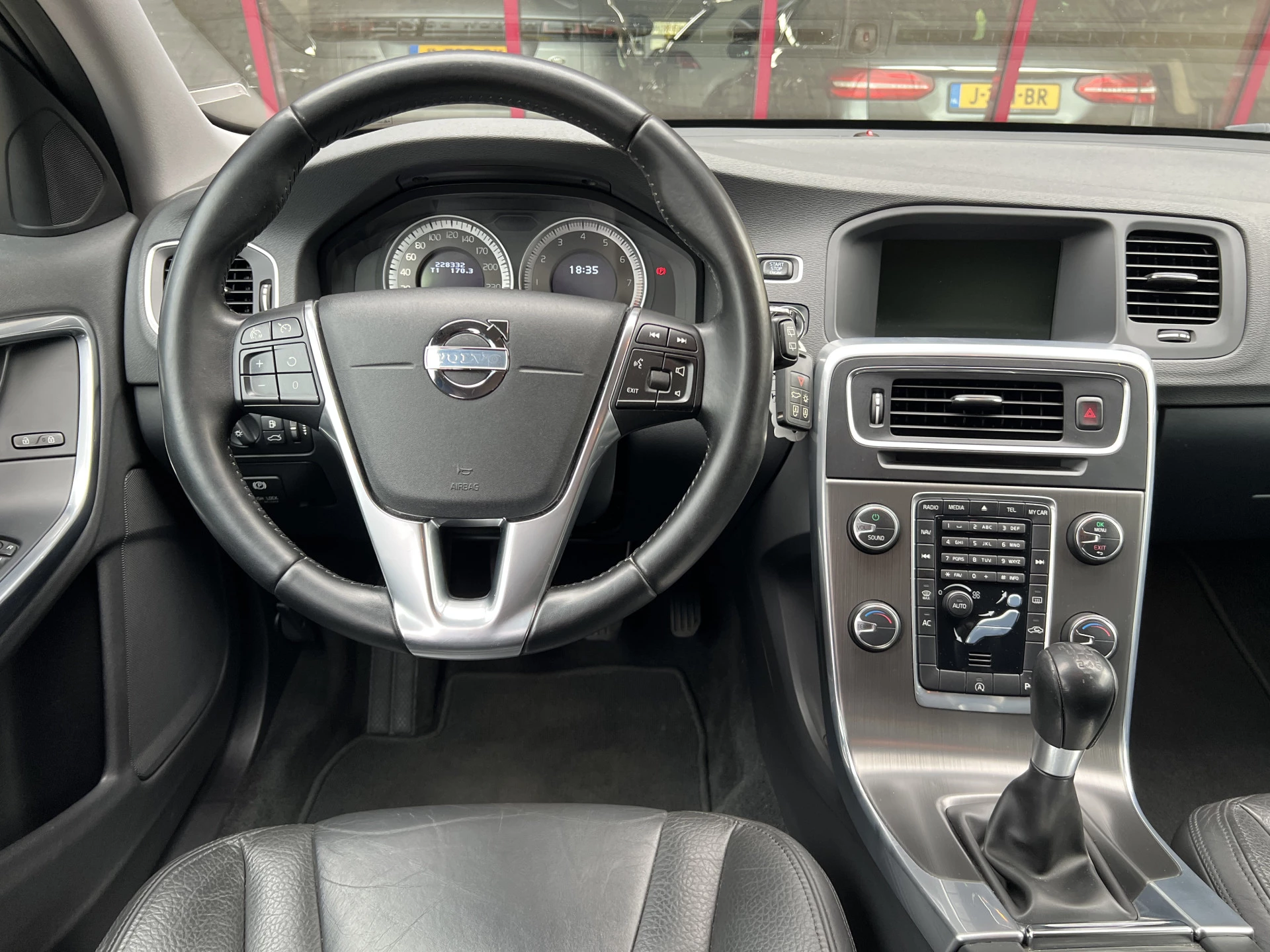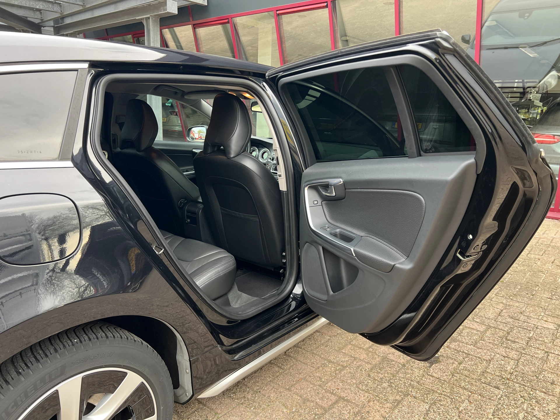 Door inruil verkregen nette Volvo V60. Mooie combinatie van saffierzwarte lak met aluminium/zwarte lichtmetalen velgen en een zwart lederen interieur.