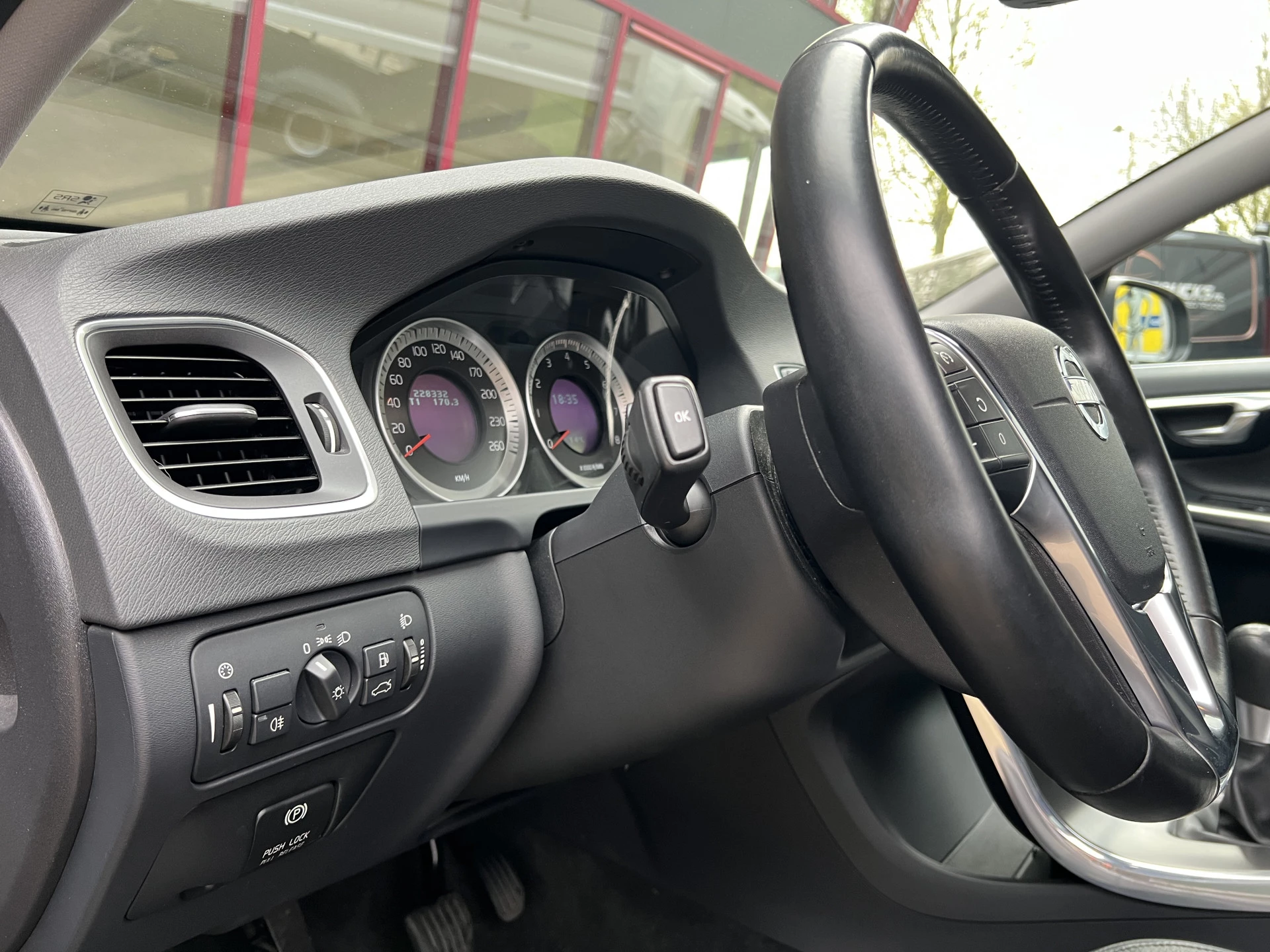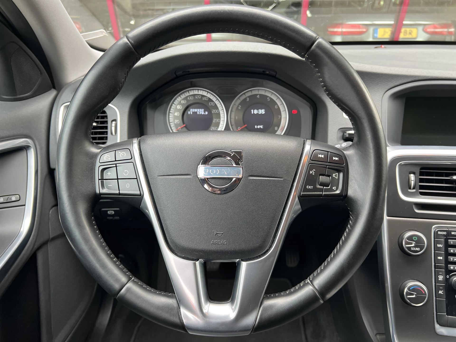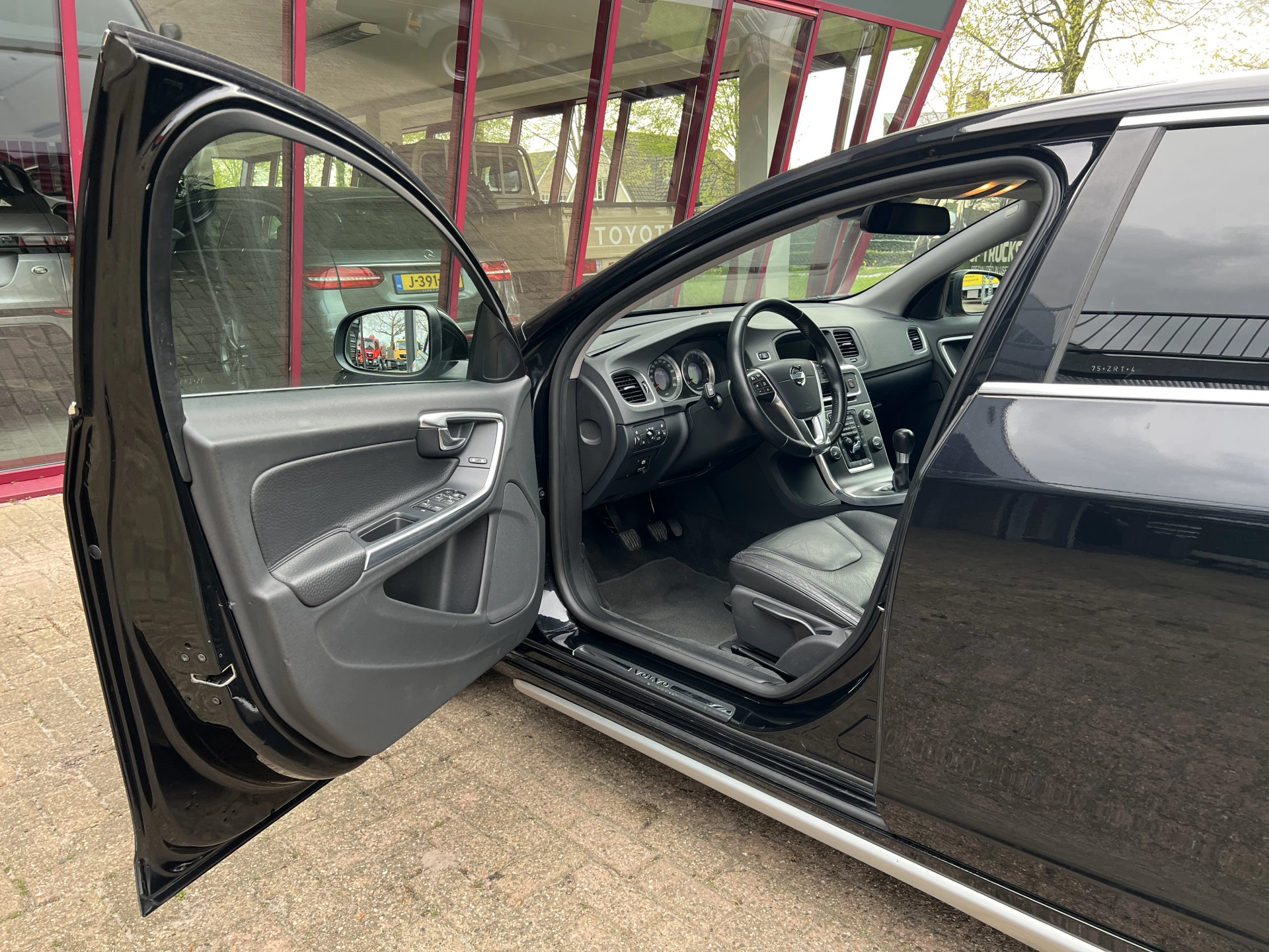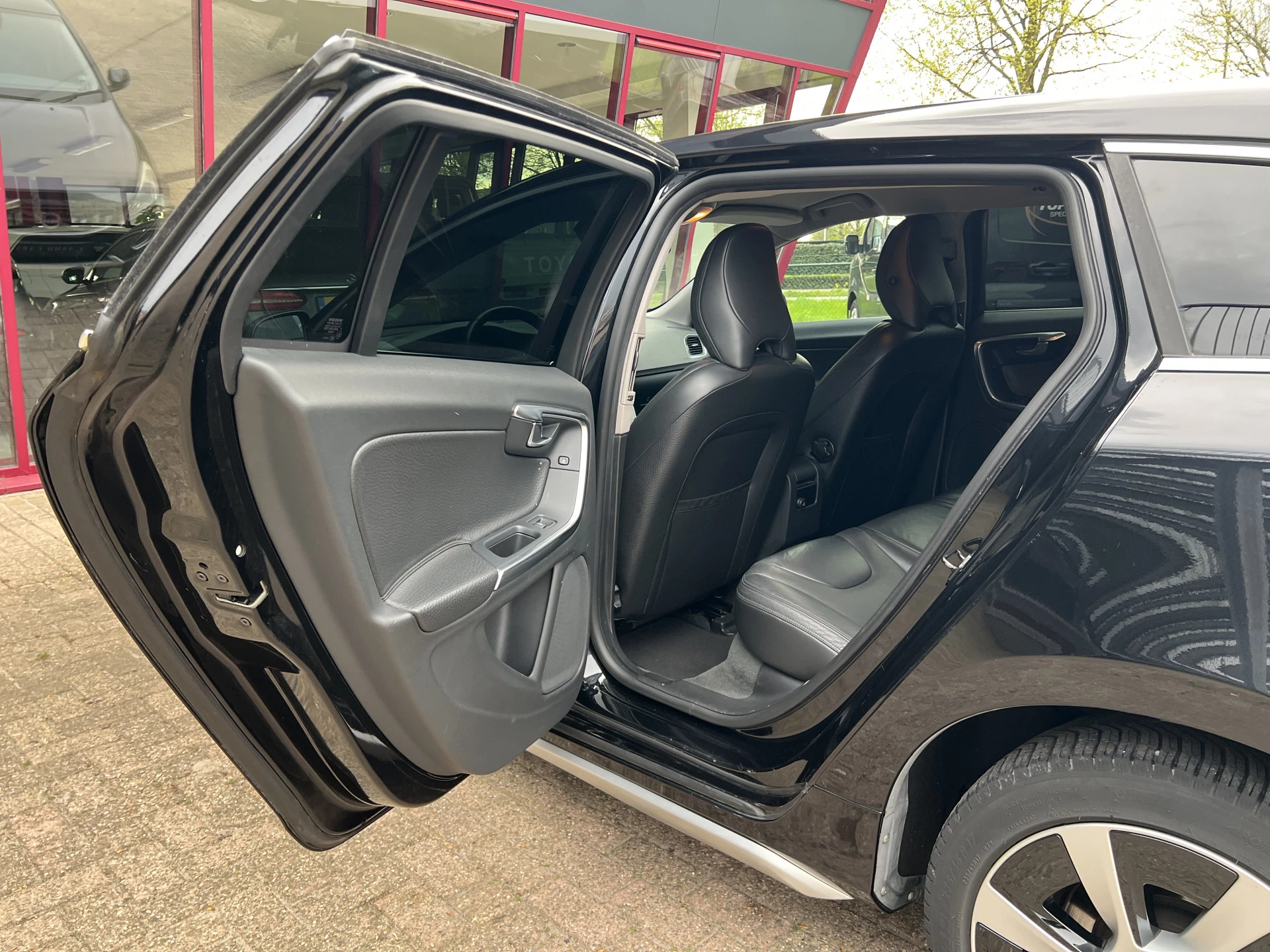 Door inruil verkregen nette Volvo V60. Mooie combinatie van saffierzwarte lak met aluminium/zwarte lichtmetalen velgen en een zwart lederen interieur.