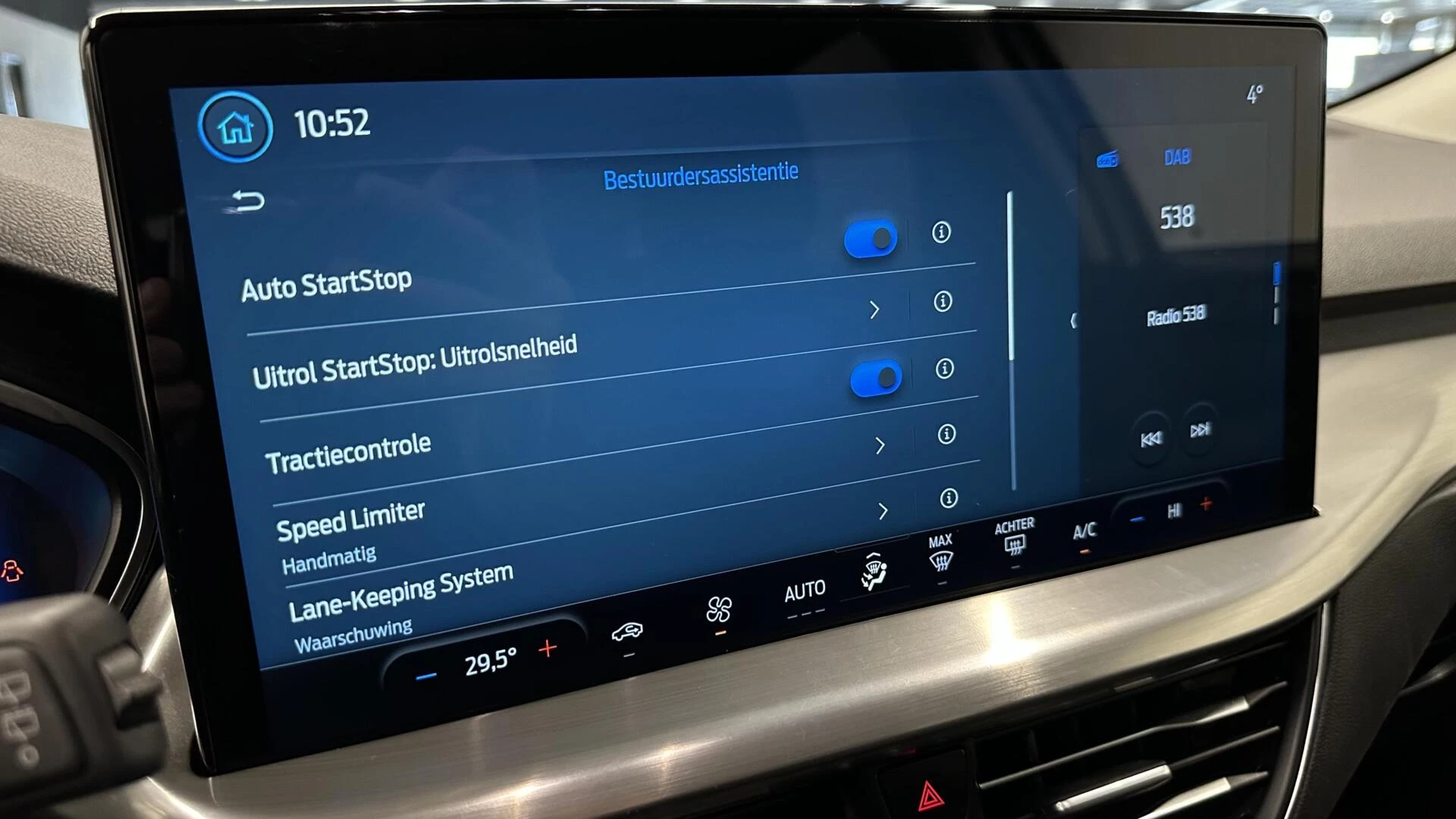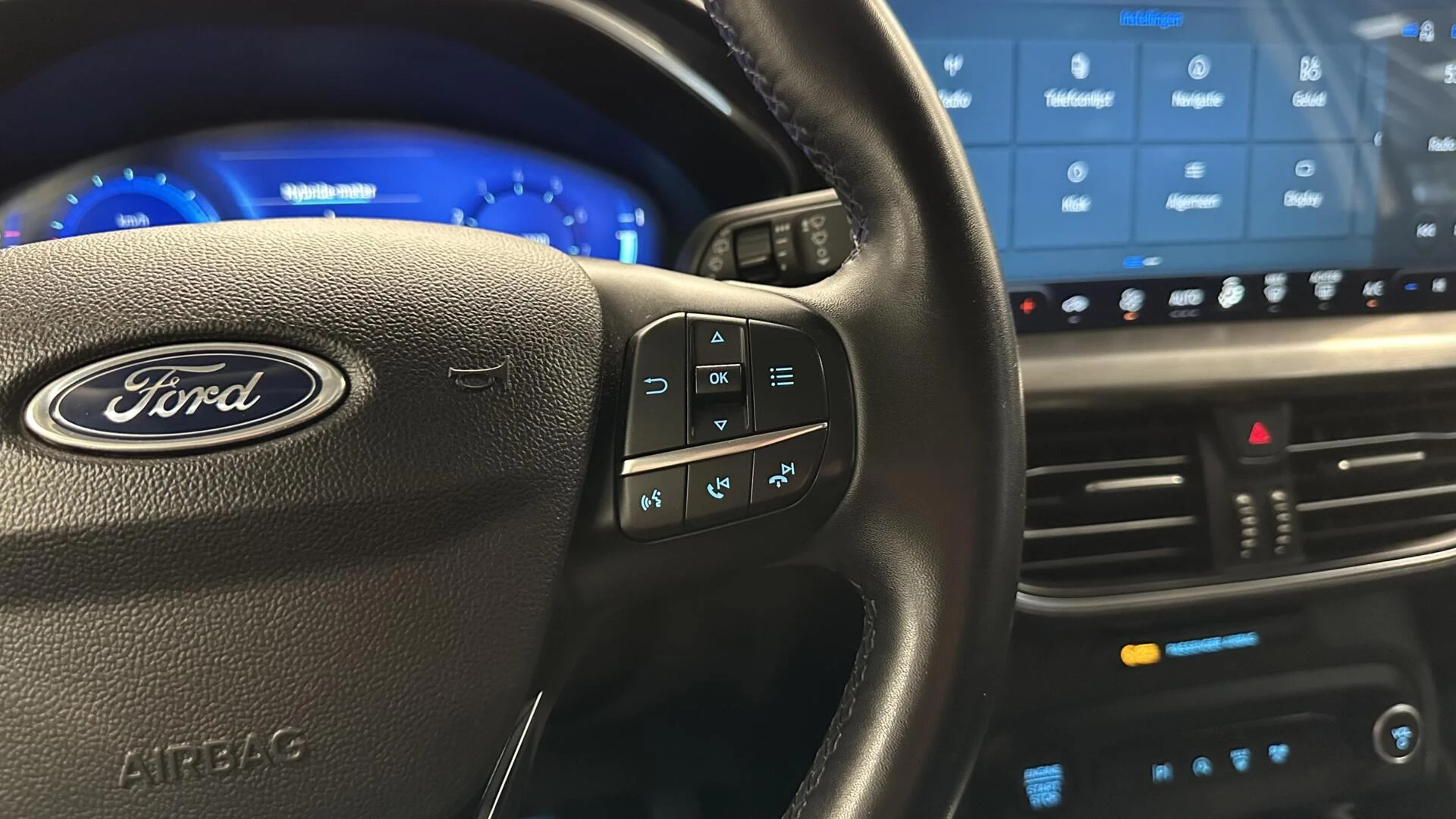 Deze Ford biedt u niet alleen comfort en rijplezier, maar ook veiligheid. Actieve veiligheidssystemen houden voor u de weg in de gaten en reageren op onvoorziene situaties voordat u dat kunt. De actuele snelheidslimiet, een inhaalverbod en andere verkeersborden; de verkeersborddetectie ondersteunt u tijdens elke rit. Het Lane-keeping systeem registreert permanent of u binnen de lijnen van de rijstrook blijft; dwaalt u onbedoeld af, dan waarschuwt het systeem en corrigeert de koers. Forward collision warning waarschuwt voor een kop-staart botsing. In deze Ford vinden we verder een hill hold functie, brake assist en bandenspanningcontrolesysteem.