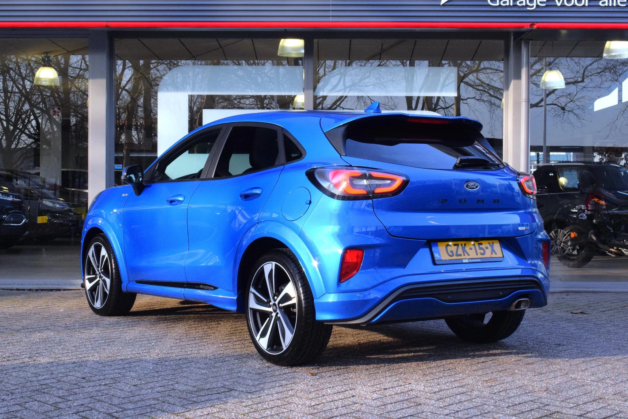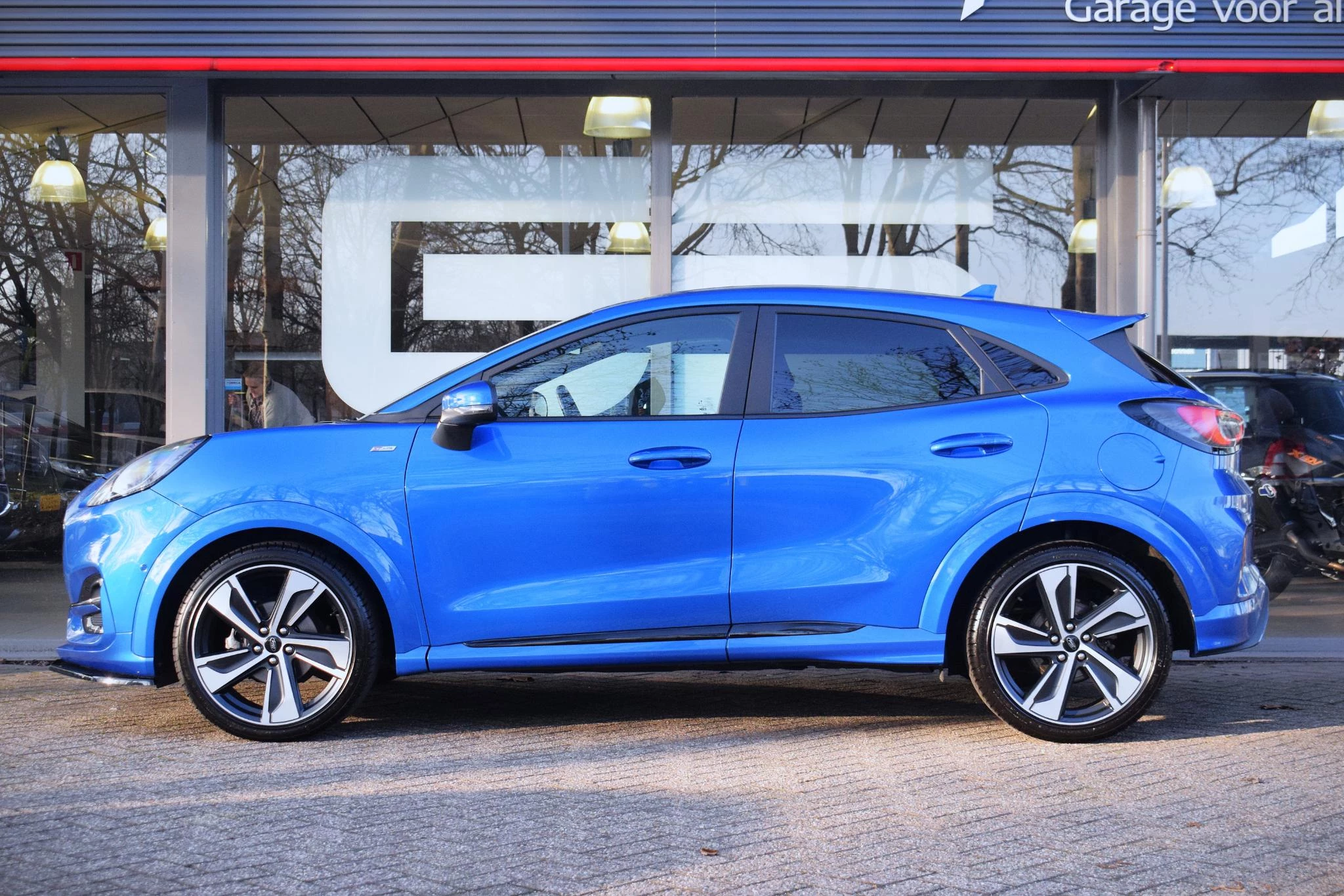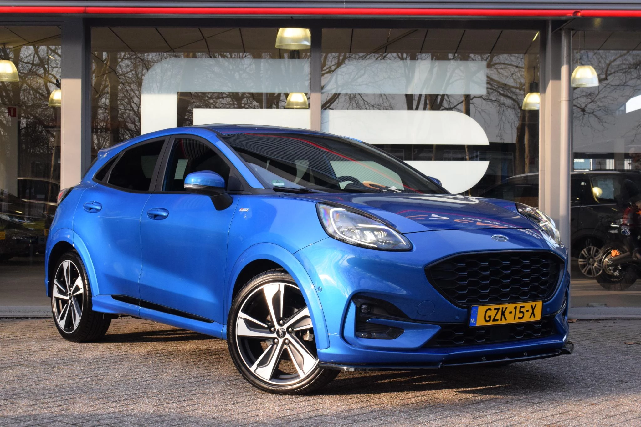 Pragmatisch en veilig als deze auto is, beschikt hij over diverse veiligheidssystemen. In het instrumentarium ziet u tijdens de rit ook de belangrijkste verkeersborden aangegeven, die de auto automatisch voor u leest. Deze Ford Puma is ook behulpzaam als het gaat om een rechte koers. Het Lane-keeping systeem signaleert en corrigeert als u onbedoeld de rijstrooklijnen dreigt te overschrijden. Voor meer veiligheid detecteert deze auto het risico van een aanrijding tijdig via de forward collision warning. U bent mede dankzij hill hold functie, brake assist en bandenspanningcontrolesysteem steeds veilig onderweg.