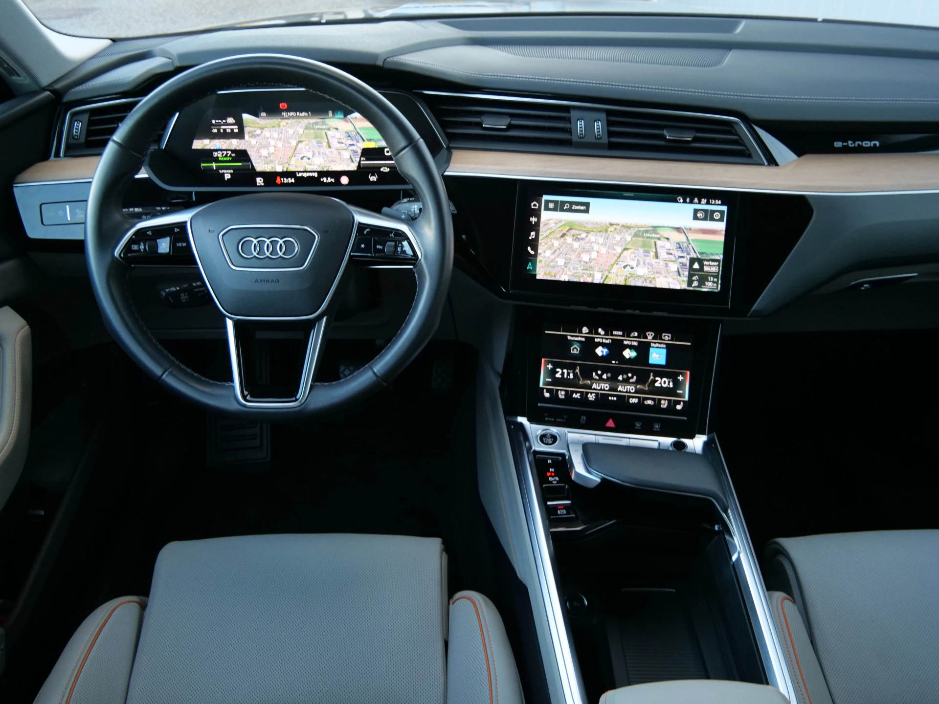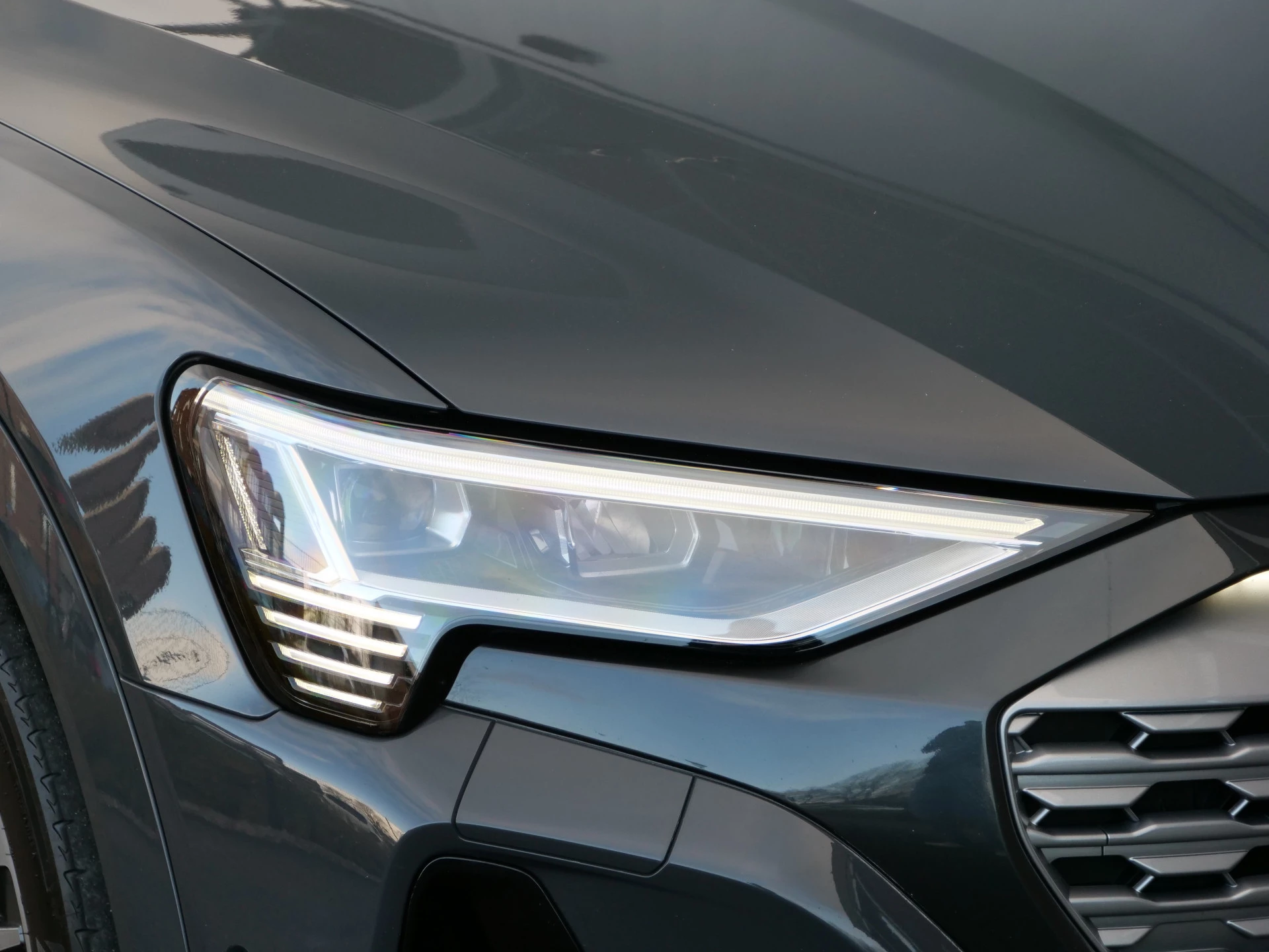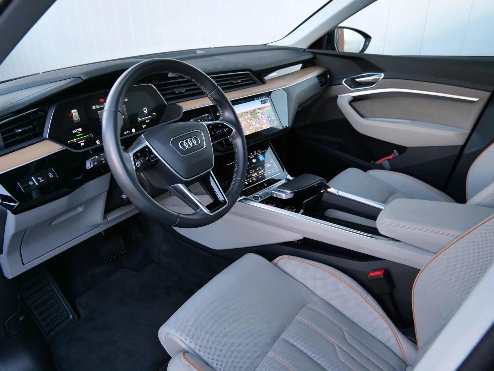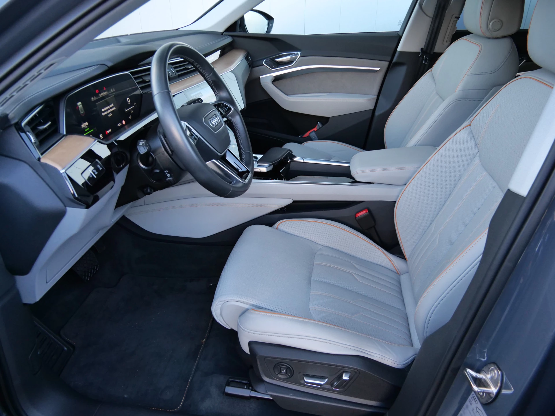 Milieubewust rijden en elke kilometer genieten. Het kan met deze elektrische Audi Q8 e-tron. Dankzij de automatische transmissie en elektrische aandrijving, navigeert u gemakkelijk door het verkeer. Ook qua looks springt deze auto eruit, vanwege de fraaie S-Line styling. De krachtige motor geeft deze Audi uitstekende prestaties. Met de elektrisch bedienbare achterklep kunt u handsfree bij de kofferruimte komen. En daarna prinsheerlijk plaatsnemen in het lederen interieur. Deze Audi Q8 e-tron heeft niet alleen verwarmbare voorstoelen, maar ze zijn ook nog eens voorzien van massagefunctie. Zijwaartse g-krachten worden solide opgevangen door de sportstoelen. Gewoon, omdat het kan. Deze Audi Q8 e-tron heeft zelfs een verwarmde achterbank. De koplampen zijn voorzien van de allernieuwste lichttechnologie: matrix LED-verlichting. U wordt in deze auto ook getrakteerd op 20 inch lichtmetalen velgen, warmtewerend glas, in delen neerklapbare achterbank, LED-achterlichten, verstelbare lendensteunen en snelheidsafhankelijke stuurbekrachtiging.