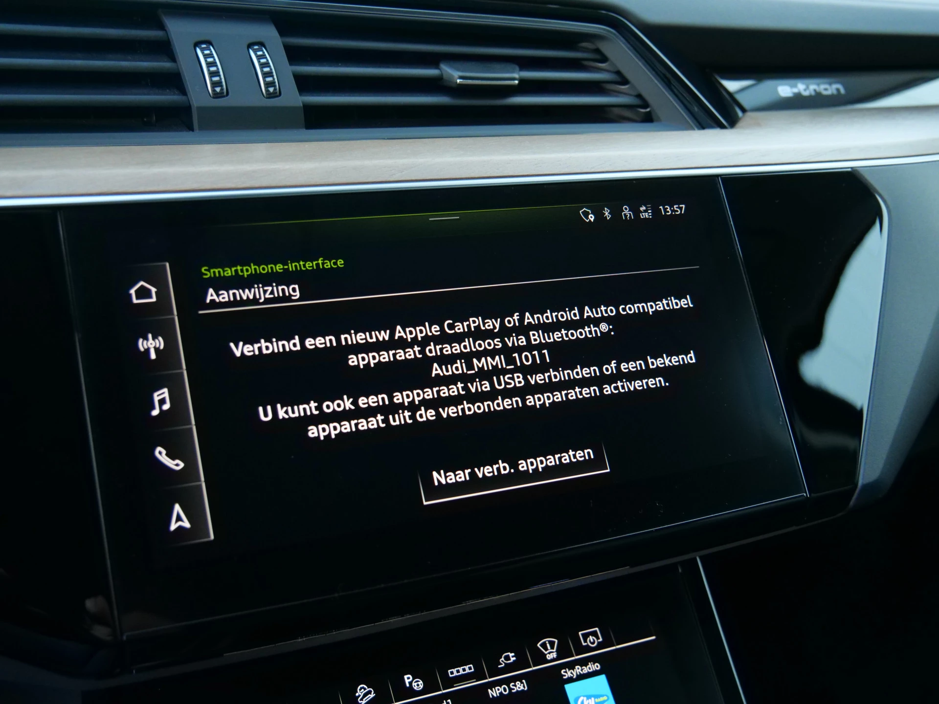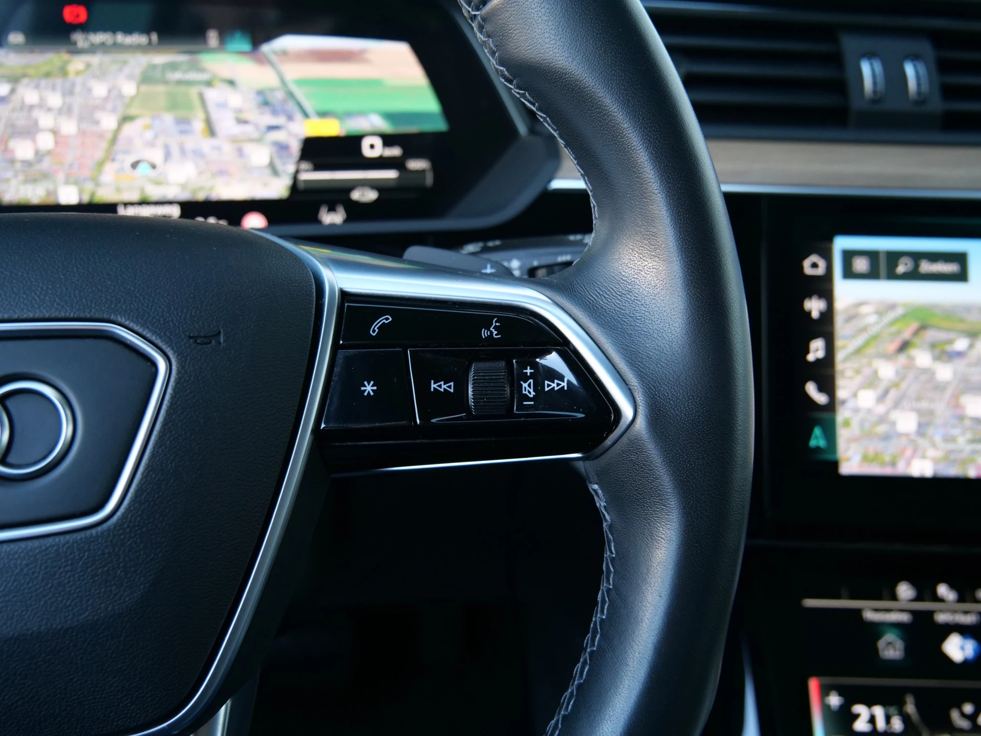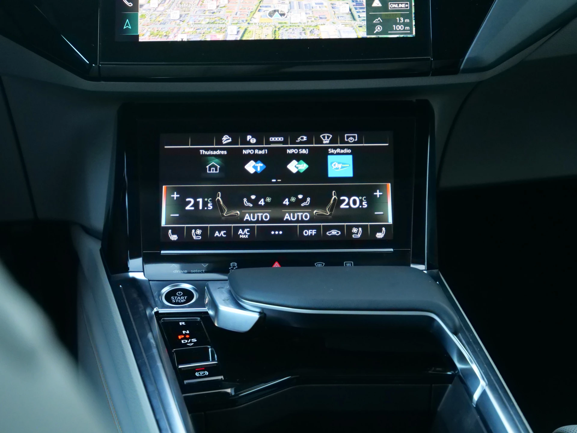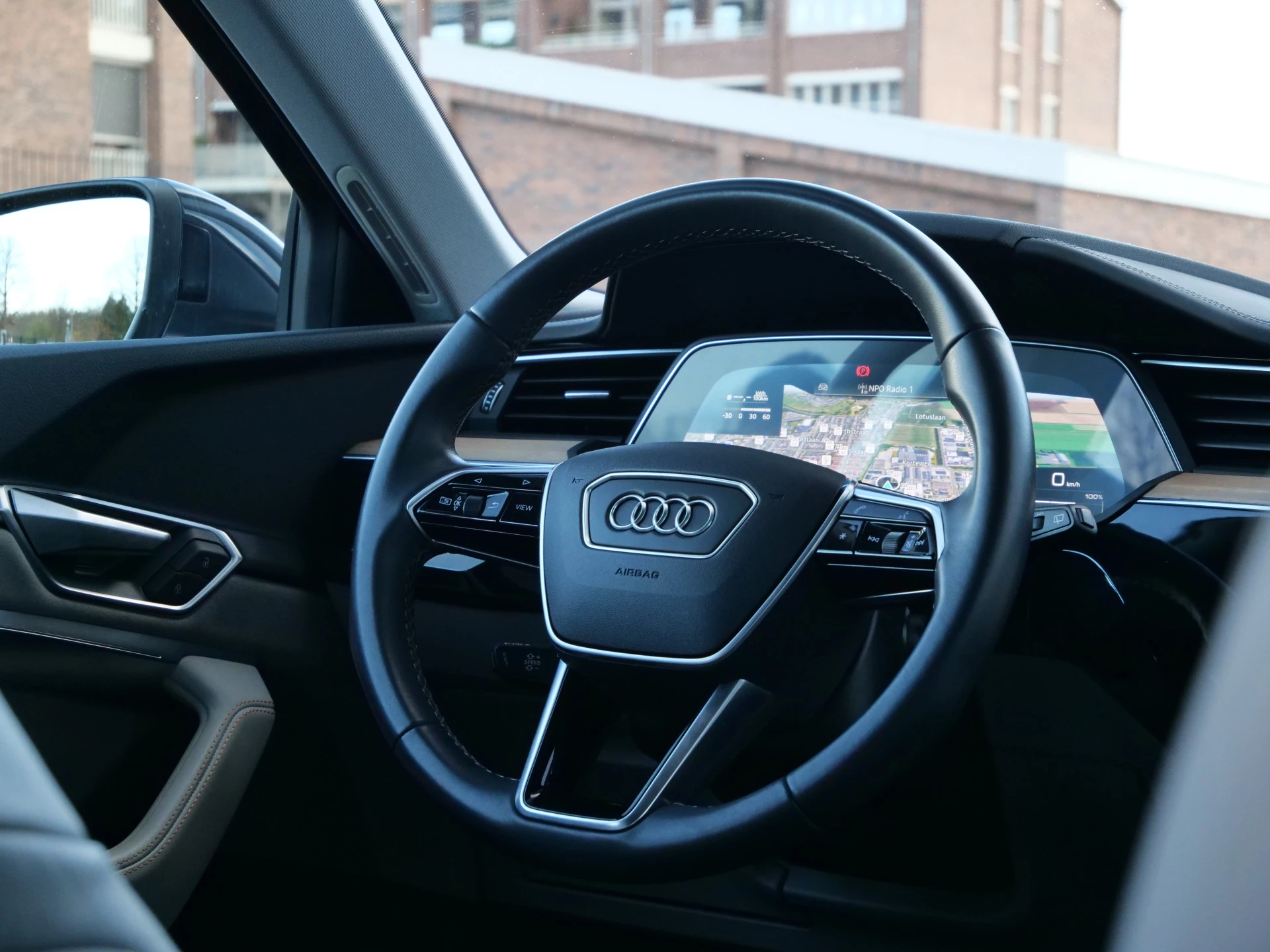 Milieubewust rijden en elke kilometer genieten. Het kan met deze elektrische Audi Q8 e-tron. Dankzij de automatische transmissie en elektrische aandrijving, navigeert u gemakkelijk door het verkeer. Ook qua looks springt deze auto eruit, vanwege de fraaie S-Line styling. De krachtige motor geeft deze Audi uitstekende prestaties. Met de elektrisch bedienbare achterklep kunt u handsfree bij de kofferruimte komen. En daarna prinsheerlijk plaatsnemen in het lederen interieur. Deze Audi Q8 e-tron heeft niet alleen verwarmbare voorstoelen, maar ze zijn ook nog eens voorzien van massagefunctie. Zijwaartse g-krachten worden solide opgevangen door de sportstoelen. Gewoon, omdat het kan. Deze Audi Q8 e-tron heeft zelfs een verwarmde achterbank. De koplampen zijn voorzien van de allernieuwste lichttechnologie: matrix LED-verlichting. U wordt in deze auto ook getrakteerd op 20 inch lichtmetalen velgen, warmtewerend glas, in delen neerklapbare achterbank, LED-achterlichten, verstelbare lendensteunen en snelheidsafhankelijke stuurbekrachtiging.