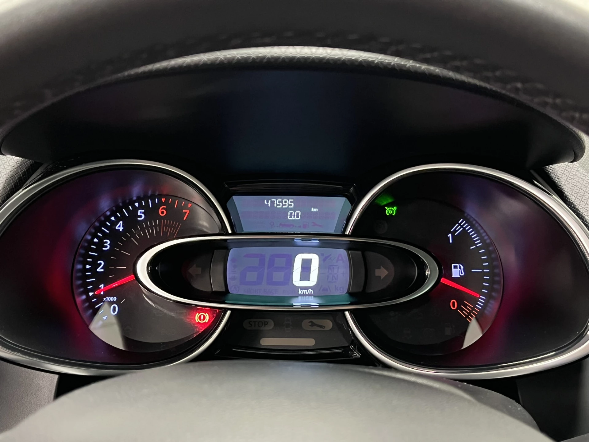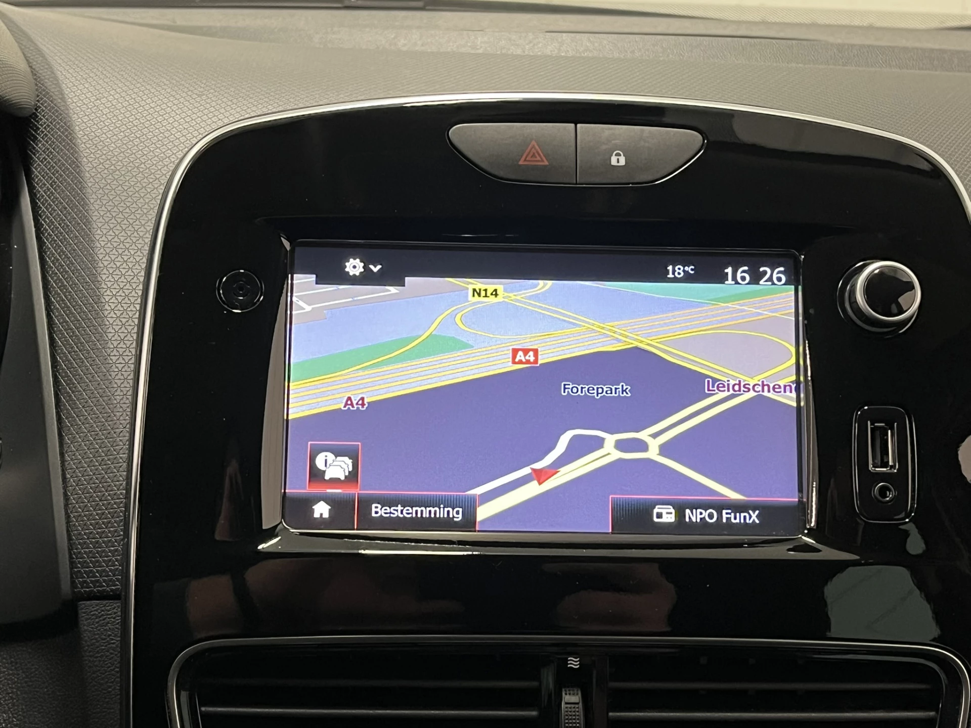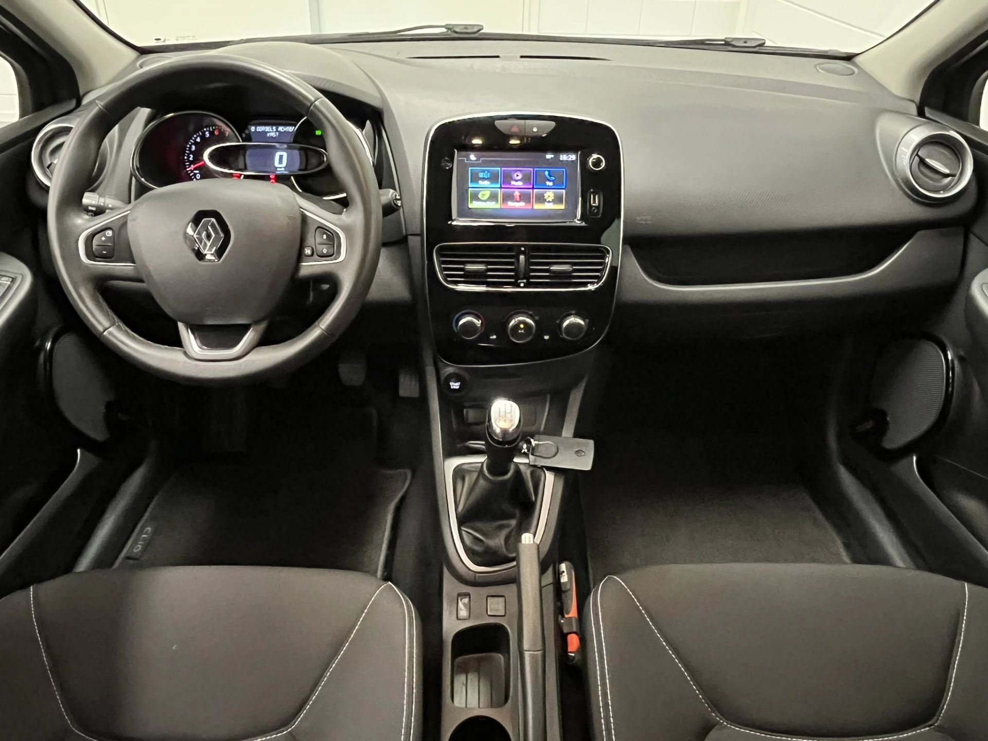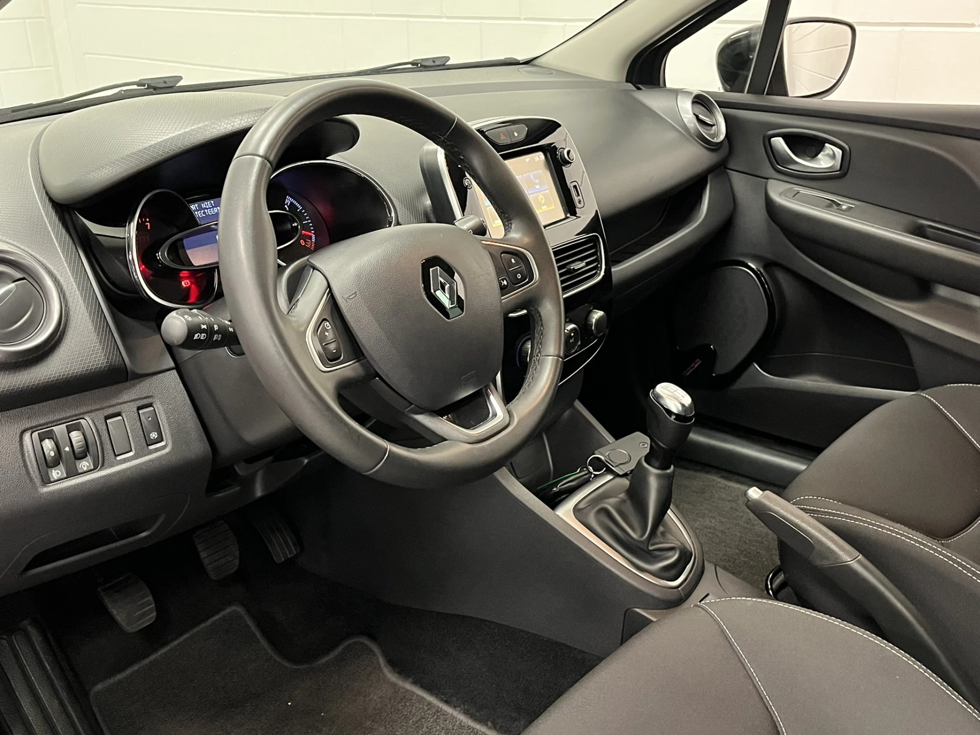 Het audiosysteem is gecombineerd met het navigatiesysteem en geeft je de keus om onderweg te luisteren wat je wilt. Verkeersinfo, je favoriete albums en radioprogramma's, podcasts, luisterboeken... zeg het maar. Deze auto heeft ook bluetooth aan boord. Naast de routeinformatie van het gekoppelde navigatiesysteem kan je muziek via het audiosysteem ook online beluisteren dankzij bluetooth. Bij het wisselen van rijbaan kan een dode hoek ontstaan waardoor achterliggers te dichtbij kunnen komen. De achteropkomend verkeer waarschuwing geeft in dat geval automatisch een signaal. Een plekje vinden in de binnenstad is één, soepel inparkeren is twee. Voor dat laatste heeft deze Renault Clio prima parkeersensoren die je een handje helpen. Nooit meer last van een slapende rechtervoet dankzij de uitgekiende cruise control! In een auto als deze mag jij ook airconditioning verwachten. De uitrusting van deze Renault is met DAB ontvangst, buitentemperatuurmeter, centrale deurvergrendeling met afstandsbediening, boordcomputer, verstelbaar stuur en lederen versnellingspook behoorlijk compleet.