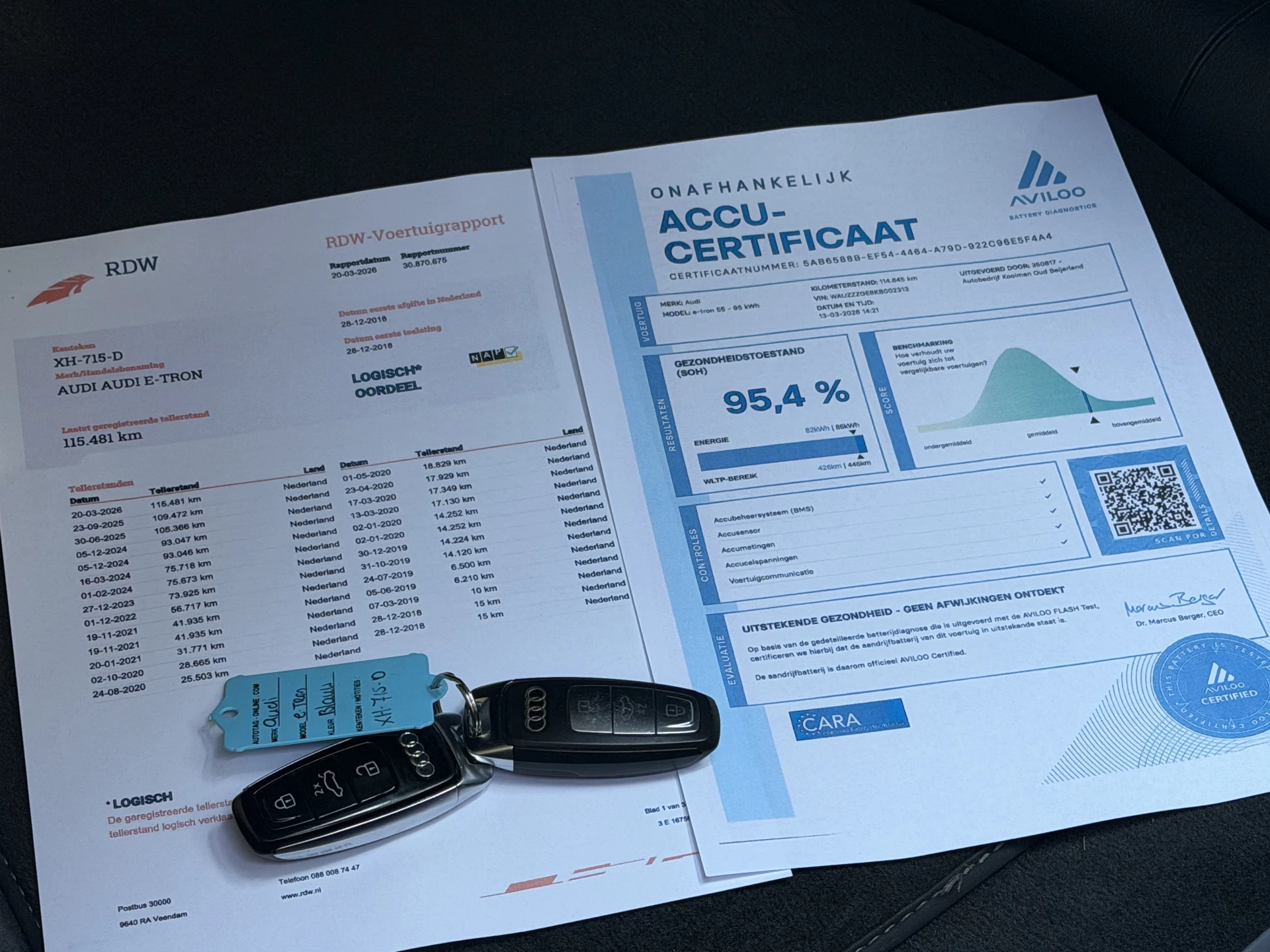 Dit betreft een Audi E-Tron 55 Quattro Advanced 95 kWh Automaat met origineel 115.489 km (NAP) gereden.