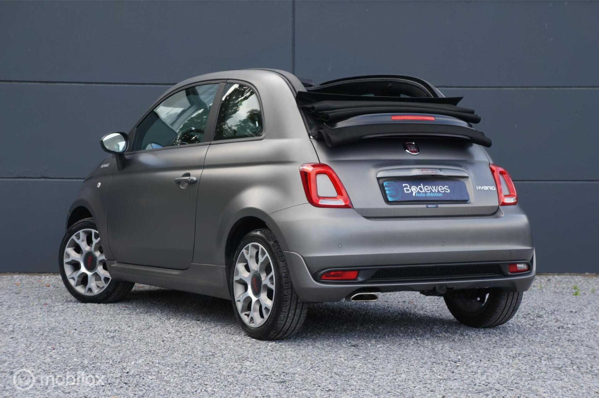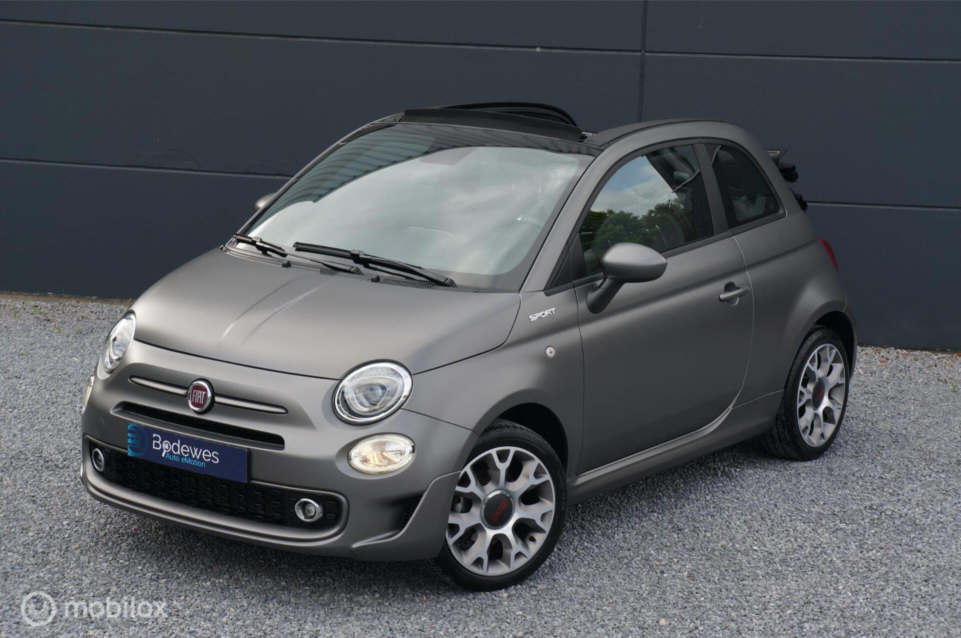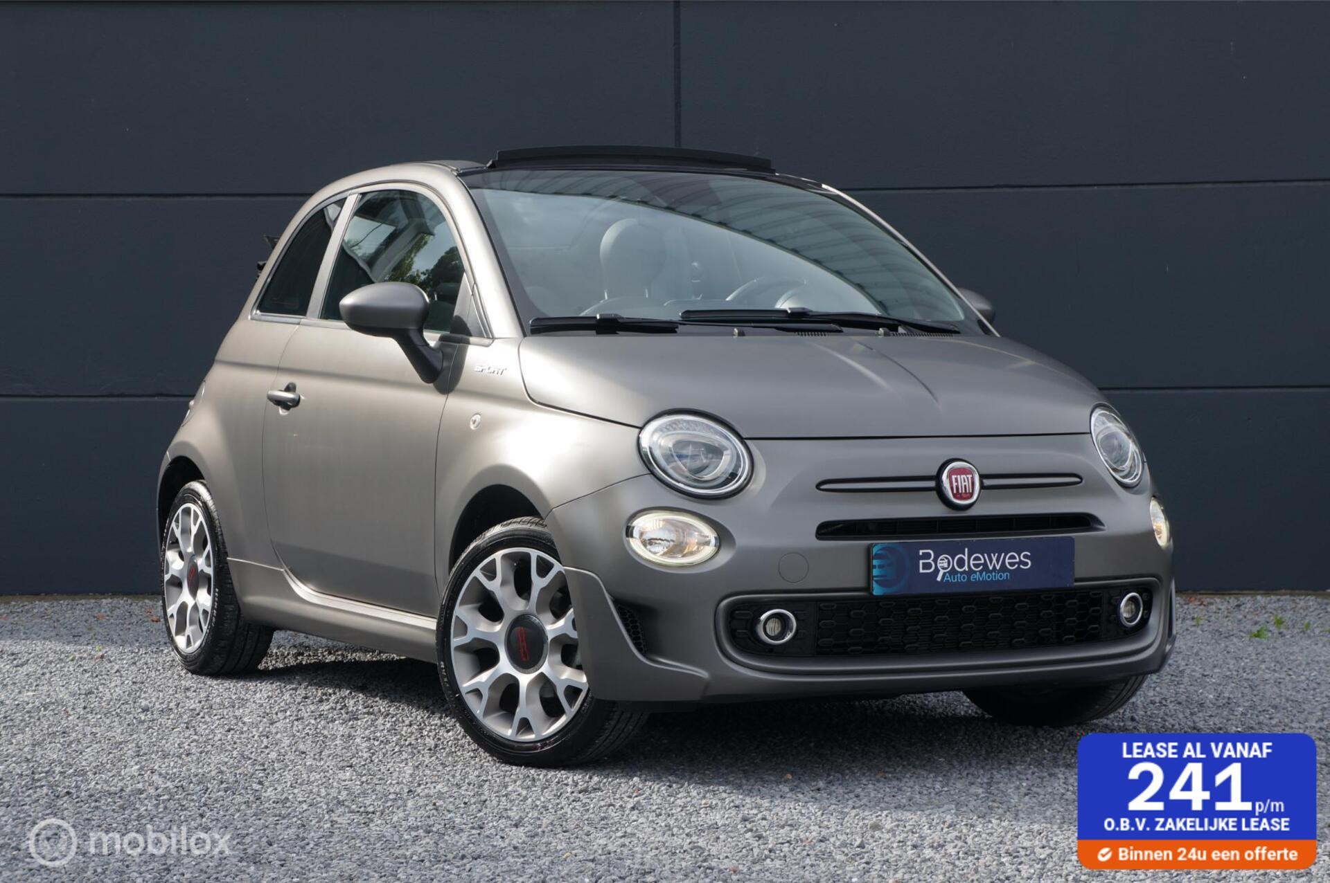 Je wil een Fiat 500, maar een aparte. Dan is er een Abarth of een Riva, maar als je iets jonger wilt en/of die pk's niet nodig vindt. Dan is er deze Fiat 500c 1.0 Hybrid Sport, uitgevoerd als cabriolet en in de kleur Grigio Opaco (Mat Grijs). Voorzien van Virtual Cockpit, Multimedia systeem met Apple Carplay en Android Auto, Beats Audio Premium sound system en ga nog maar even door. In ieder geval een combi die je niet veel ziet, apart dus maar geen Abarth. En dan heeft deze Fiat ook nog een afneembare trekhaak, daar mag je natuurlijk geen dikke caravan achterhaken. Maar wel lekker makkelijk om een stel fietsen mee te nemen. Een kleine rakker met alles aan boord. Kom hem gerust eens bekijken.