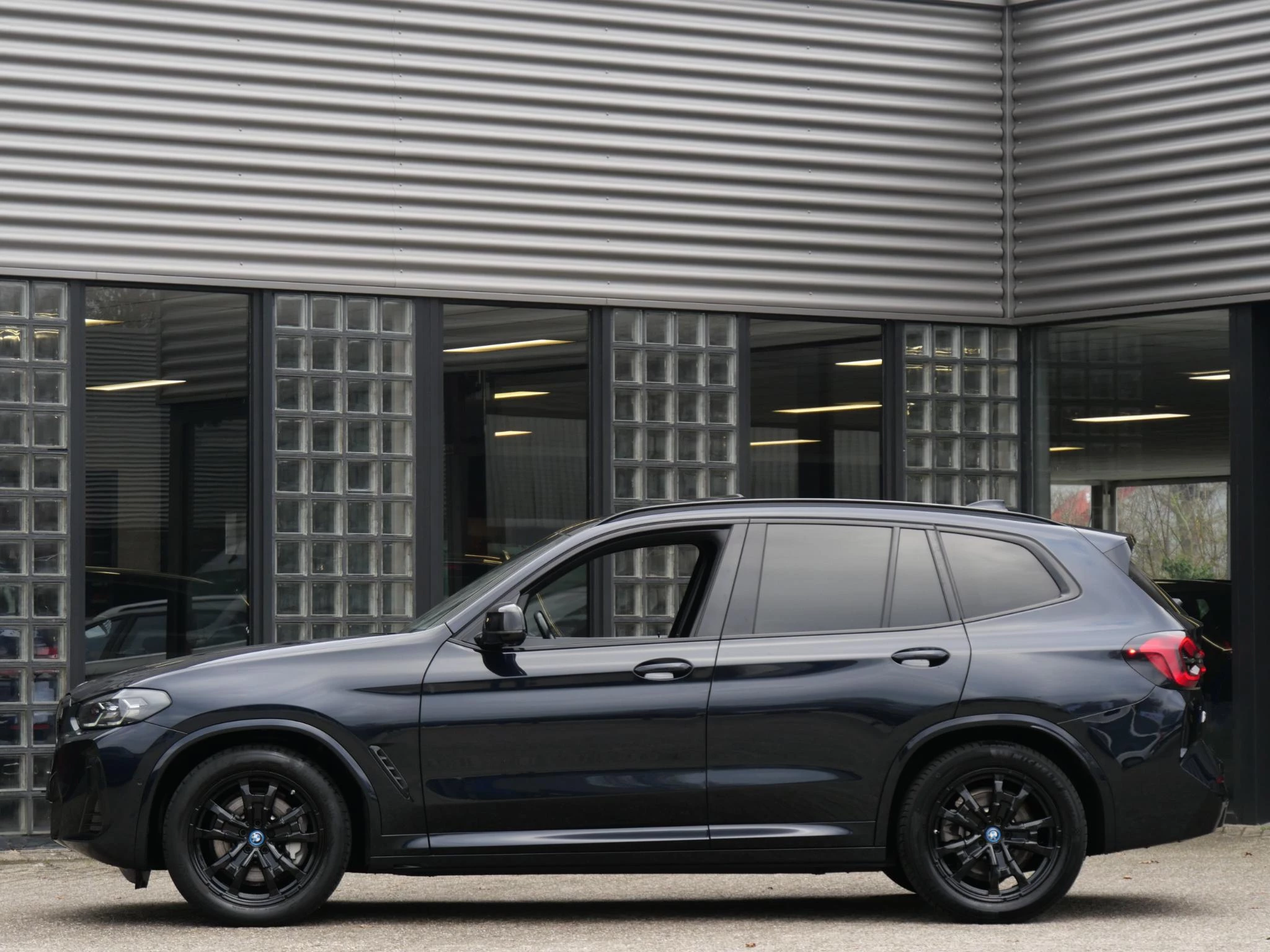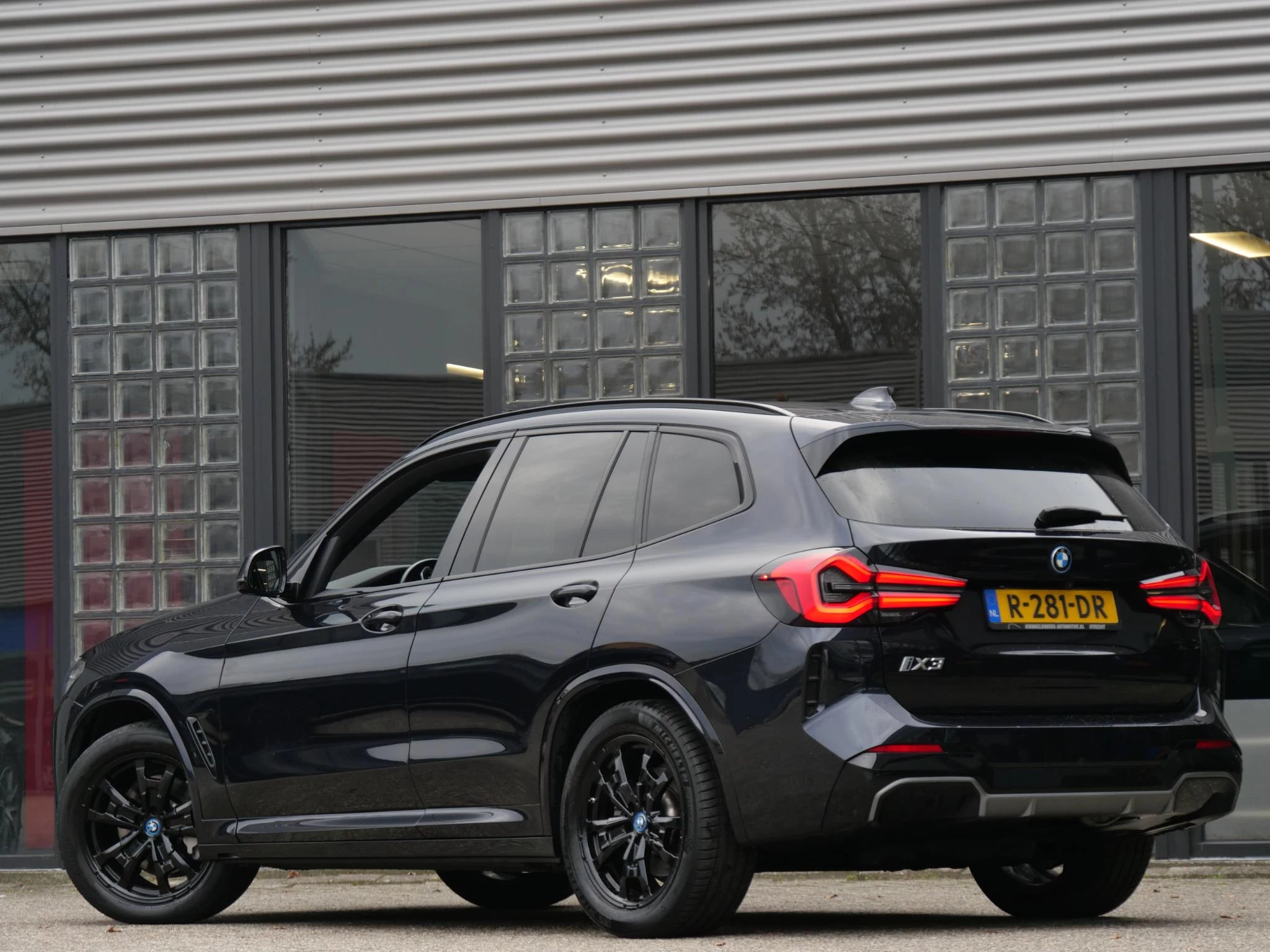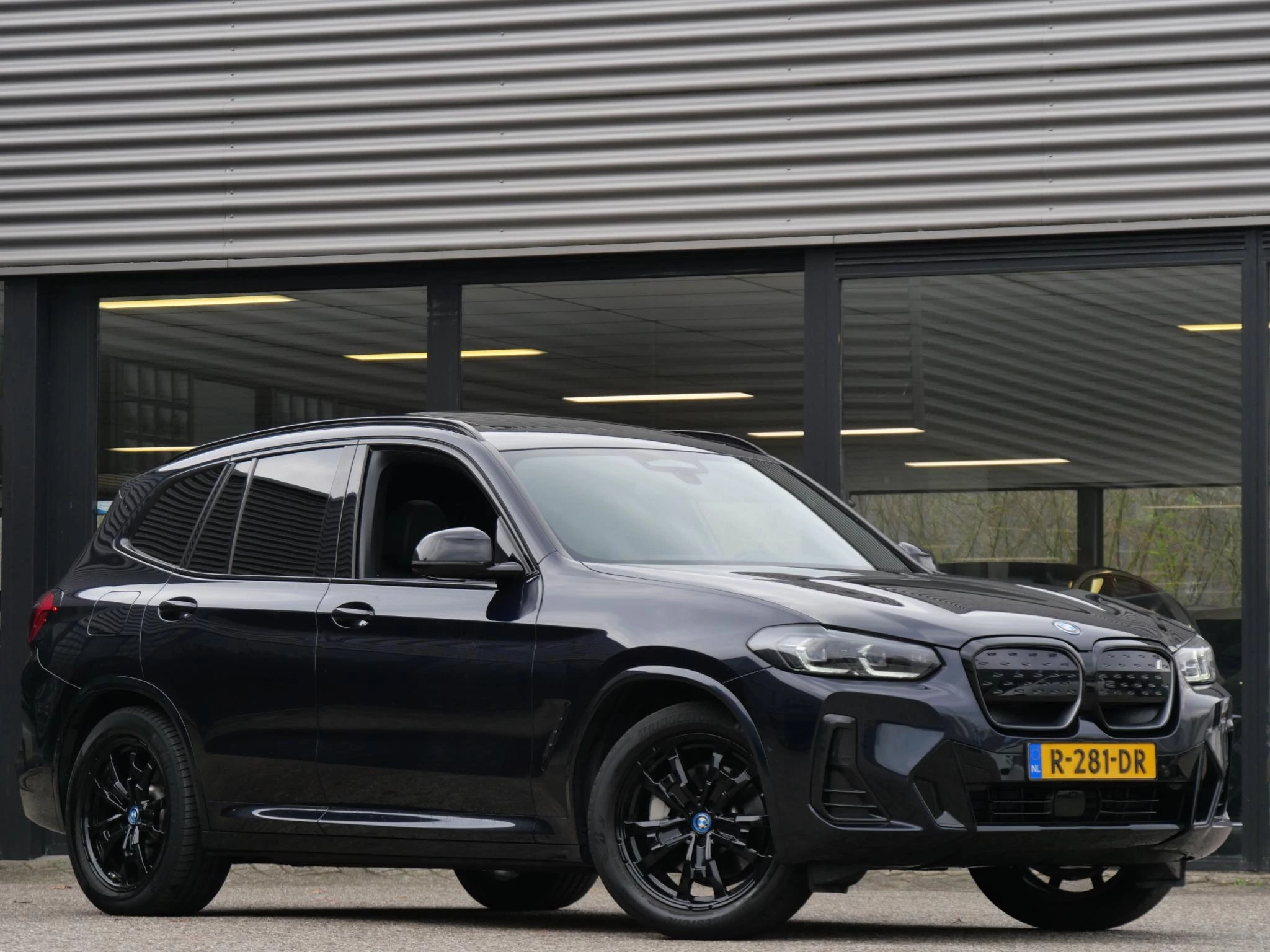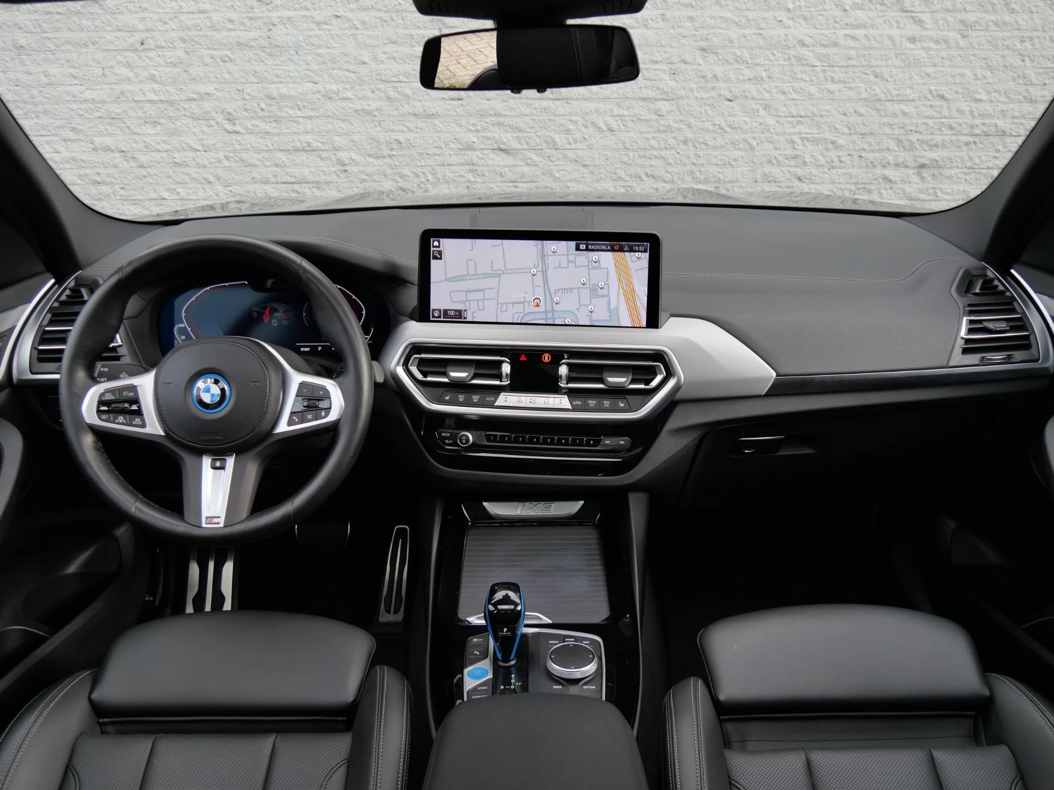 Erg fraai is de kleurstelling, wat ons betreft de ultieme configuratie voor de iX3. De carrosserie is gespoten in de populaire BMW M-Sport kleur 'Carbonschwarz Metallic'. Het interieur is volledig in zwart leder uitgevoerd. Als extra fabrieksoptie is dit exemplaar voorzien van het 'Shadow Line' pakket. Hierdoor zijn de achterste ramen extra getint uitgevoerd, is de iX3 voorzien van hoogglans zwarte exterieuraccenten zoals de raamlijsten, dakrails en grille en zijn de Matrix LED-koplampen donker uitgevoerd. De hemelbekleding is in het antraciet uitgevoerd voor een luxere uitstraling.
