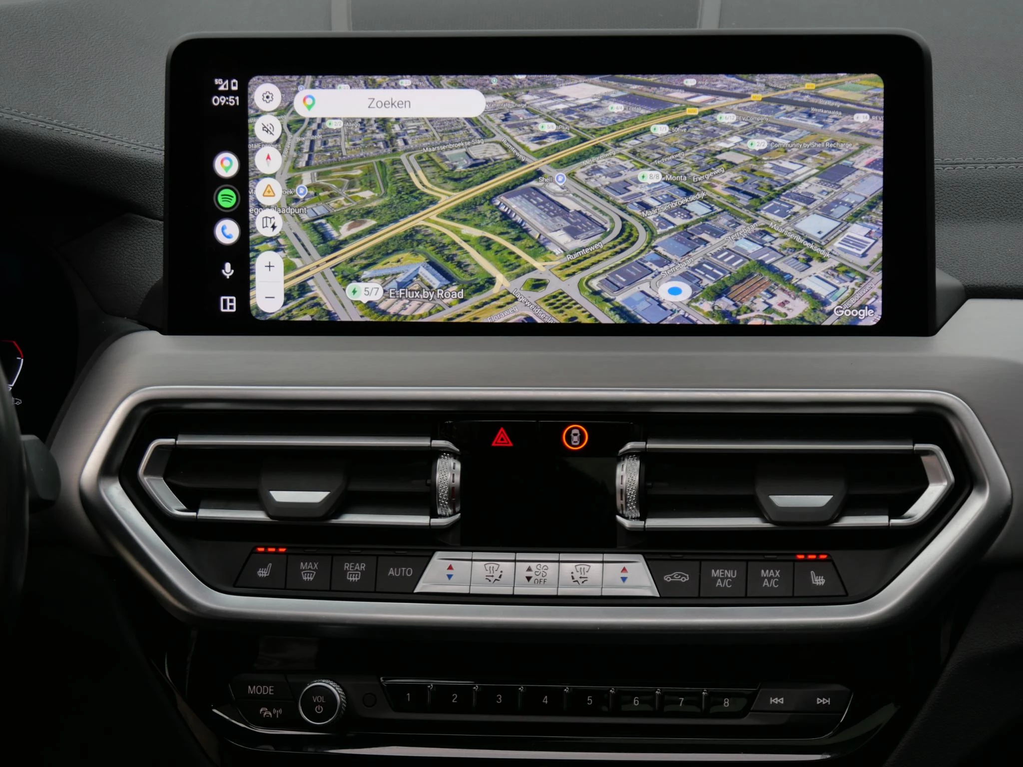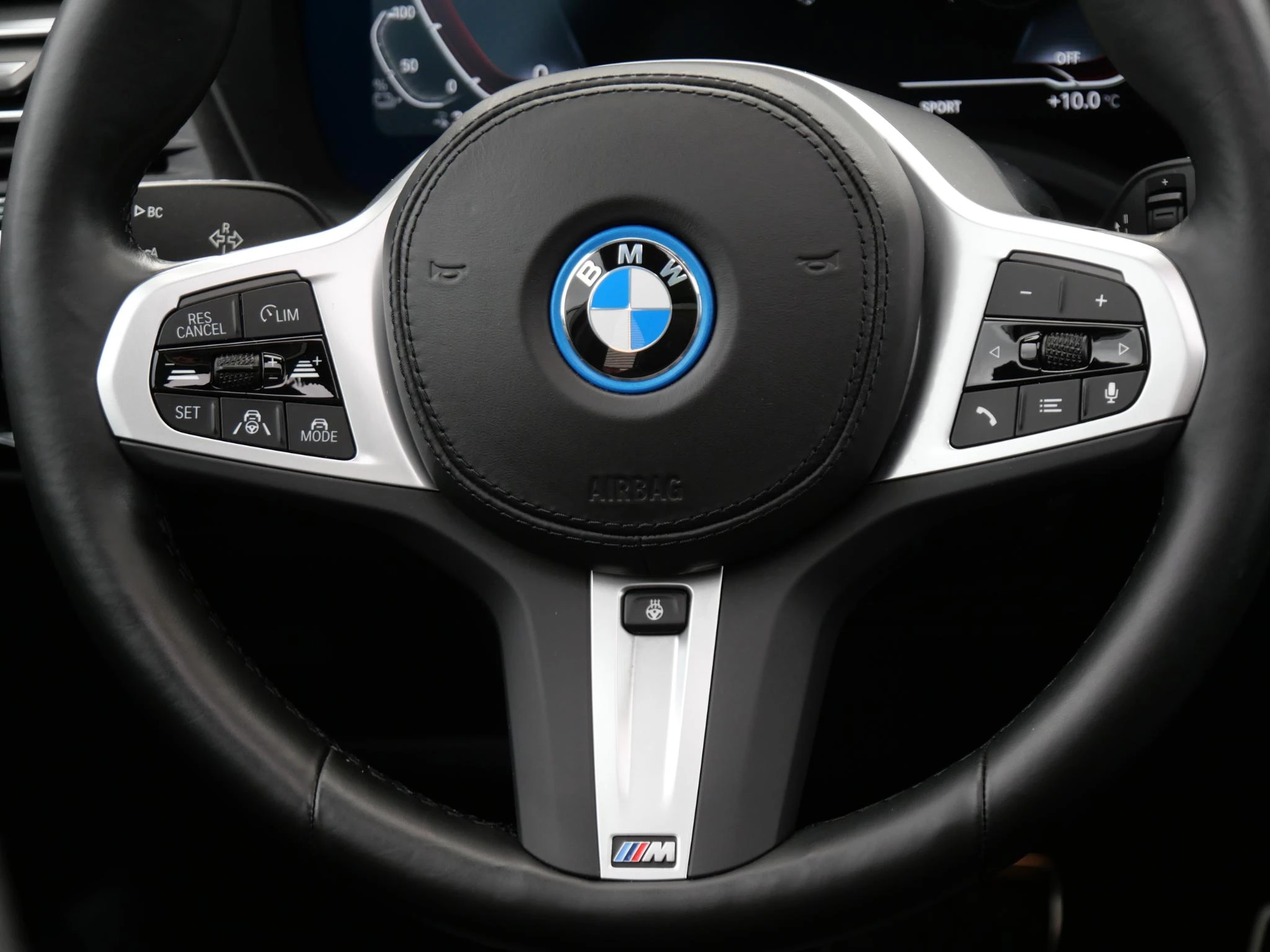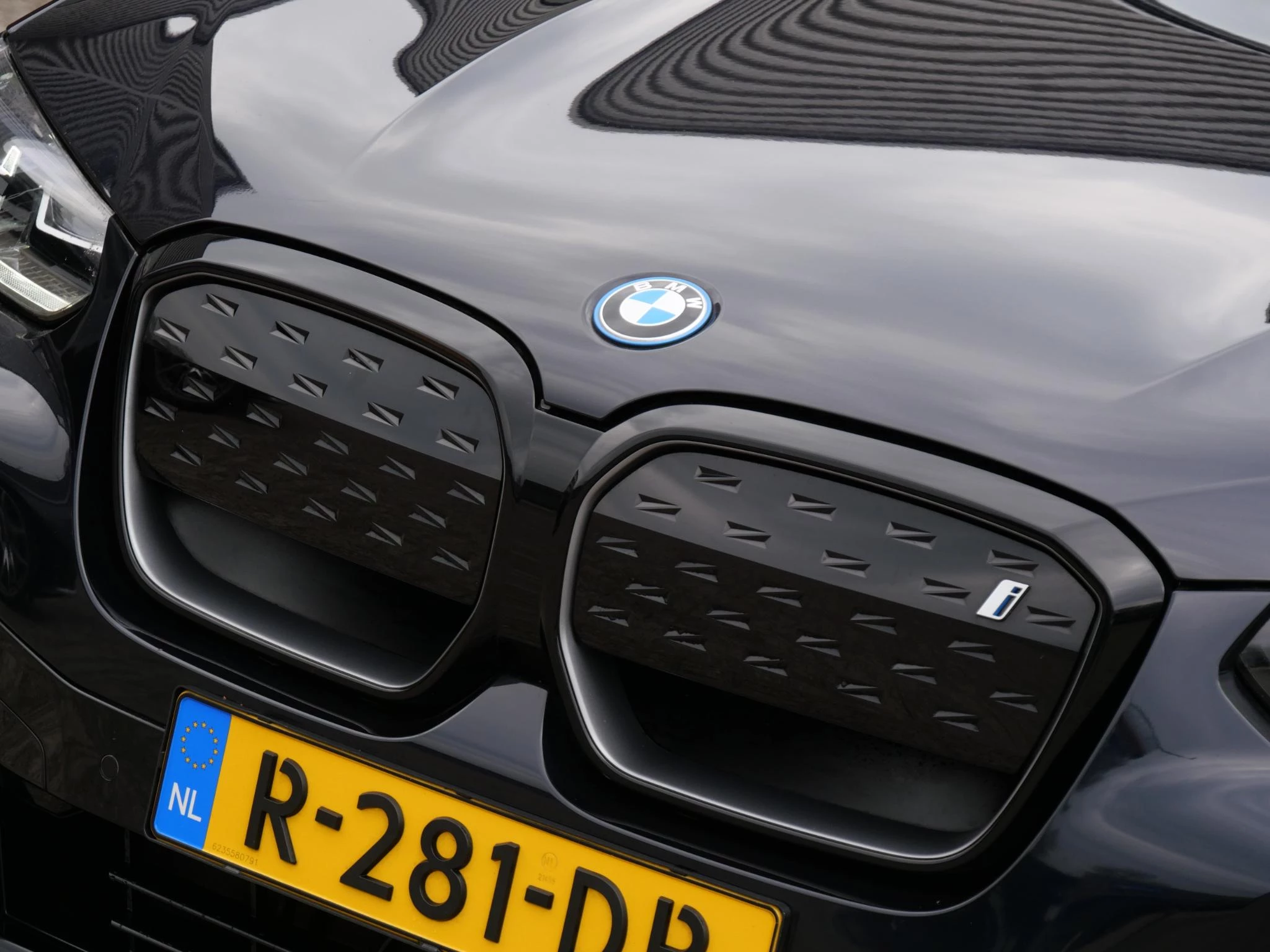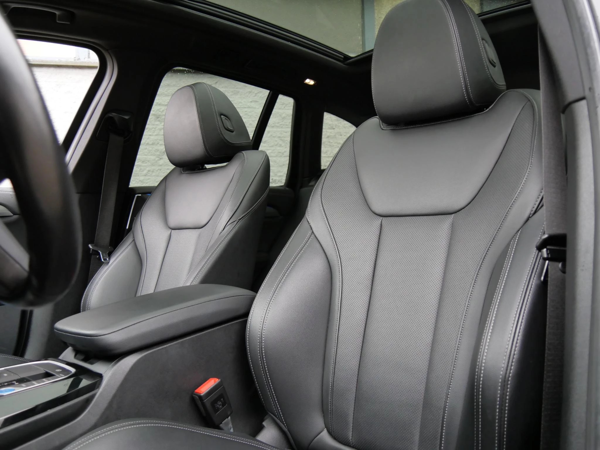 Erg fraai is de kleurstelling, wat ons betreft de ultieme configuratie voor de iX3. De carrosserie is gespoten in de populaire BMW M-Sport kleur 'Carbonschwarz Metallic'. Het interieur is volledig in zwart leder uitgevoerd. Als extra fabrieksoptie is dit exemplaar voorzien van het 'Shadow Line' pakket. Hierdoor zijn de achterste ramen extra getint uitgevoerd, is de iX3 voorzien van hoogglans zwarte exterieuraccenten zoals de raamlijsten, dakrails en grille en zijn de Matrix LED-koplampen donker uitgevoerd. De hemelbekleding is in het antraciet uitgevoerd voor een luxere uitstraling.