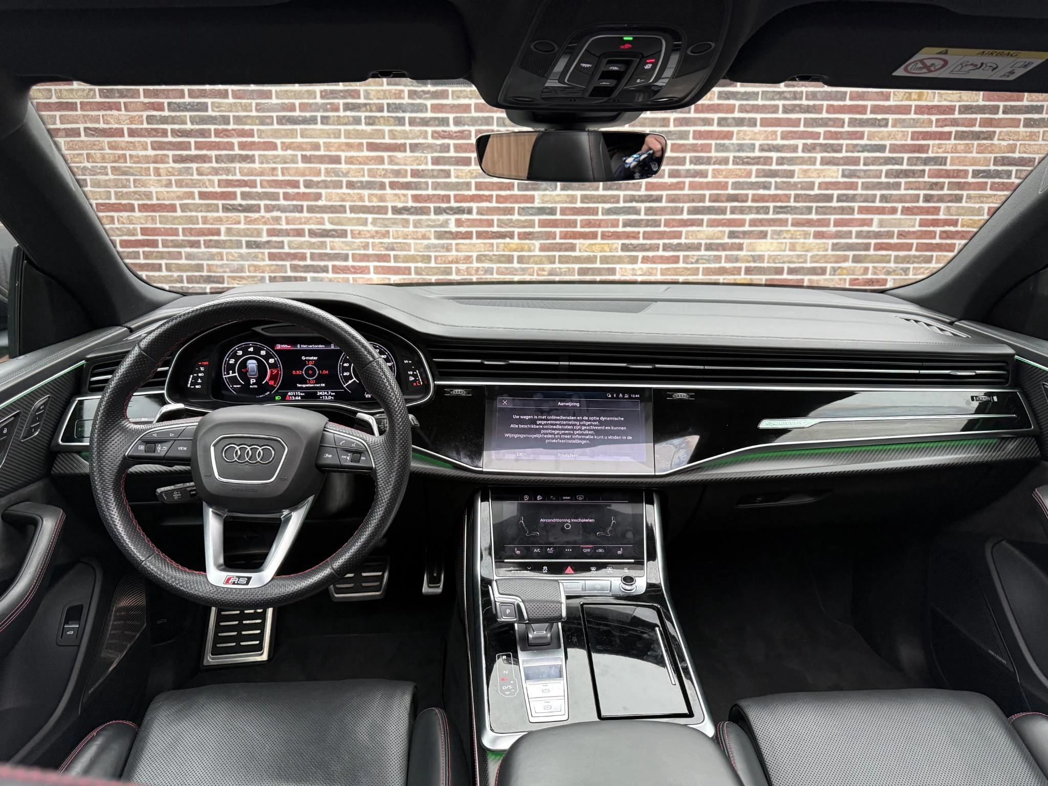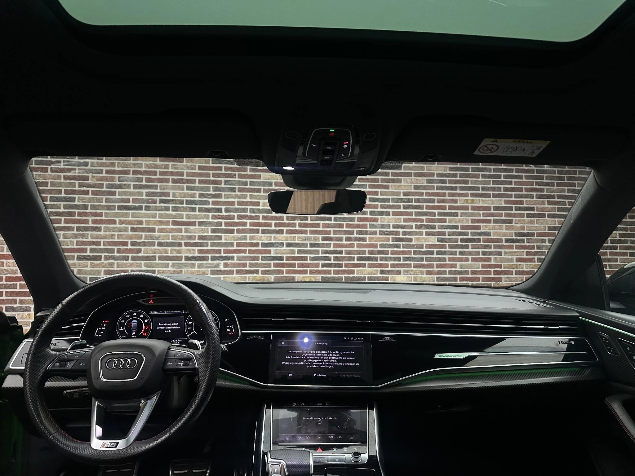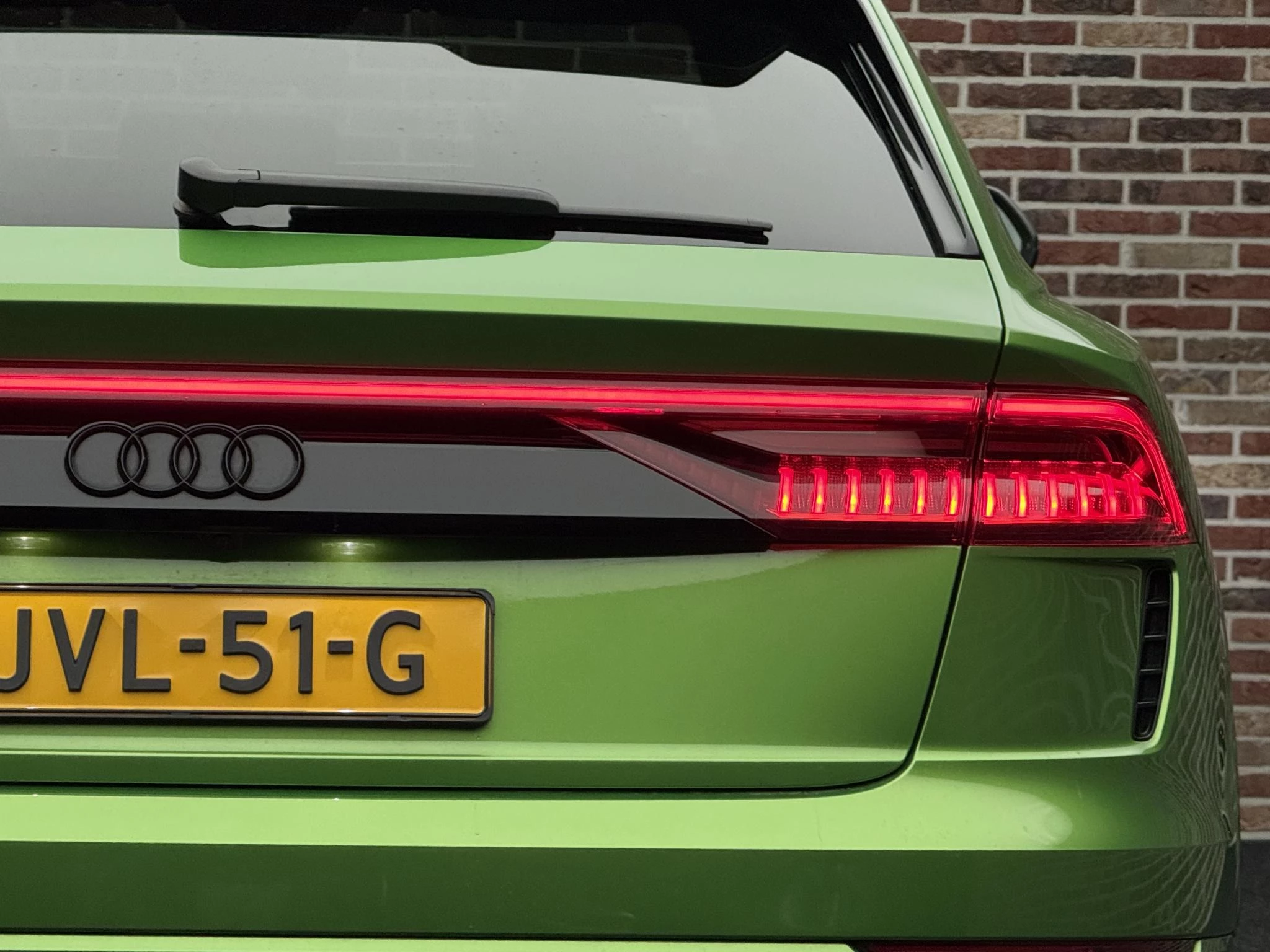 Met zijn geweldige prestaties en dynamische uiterlijk laat deze sportieve eyecatcher het hart van veel autoliefhebbers sneller kloppen. We hebben het hier over een Audi Q8. S-Line styling geeft deze auto een extra dynamische uitstraling. Hij heeft een benzinemotor en een automatische transmissie. Aan gemak én ruimte is uitstekend gedacht: een elektrisch bediend glazen panorama dak en een elektrisch bedienbare achterklep. En dan krijgt u het mooie lederen interieur er ook nog eens bij! Naast het verwarmbare stuurwiel en de stoelverwarming, benadrukt de massagefunctie op de voorstoelen dat we hier te maken hebben met een regelrechte verwenauto. Neem plaats op de comfortabele stoelen. Dankzij de elektrische bediening en het geheugen is het eenvoudig om hierin de beste zitpositie te vinden. De koplampen met matrix LED-verlichting geven daglichtkwaliteit zonder tegenliggers te hinderen. Tot de uitrusting behoren ook adaptief dempingsysteem, warmtewerend glas, LED-achterlichten, sportuitlaat, verstelbare lendensteunen en verstelbare achterbank.