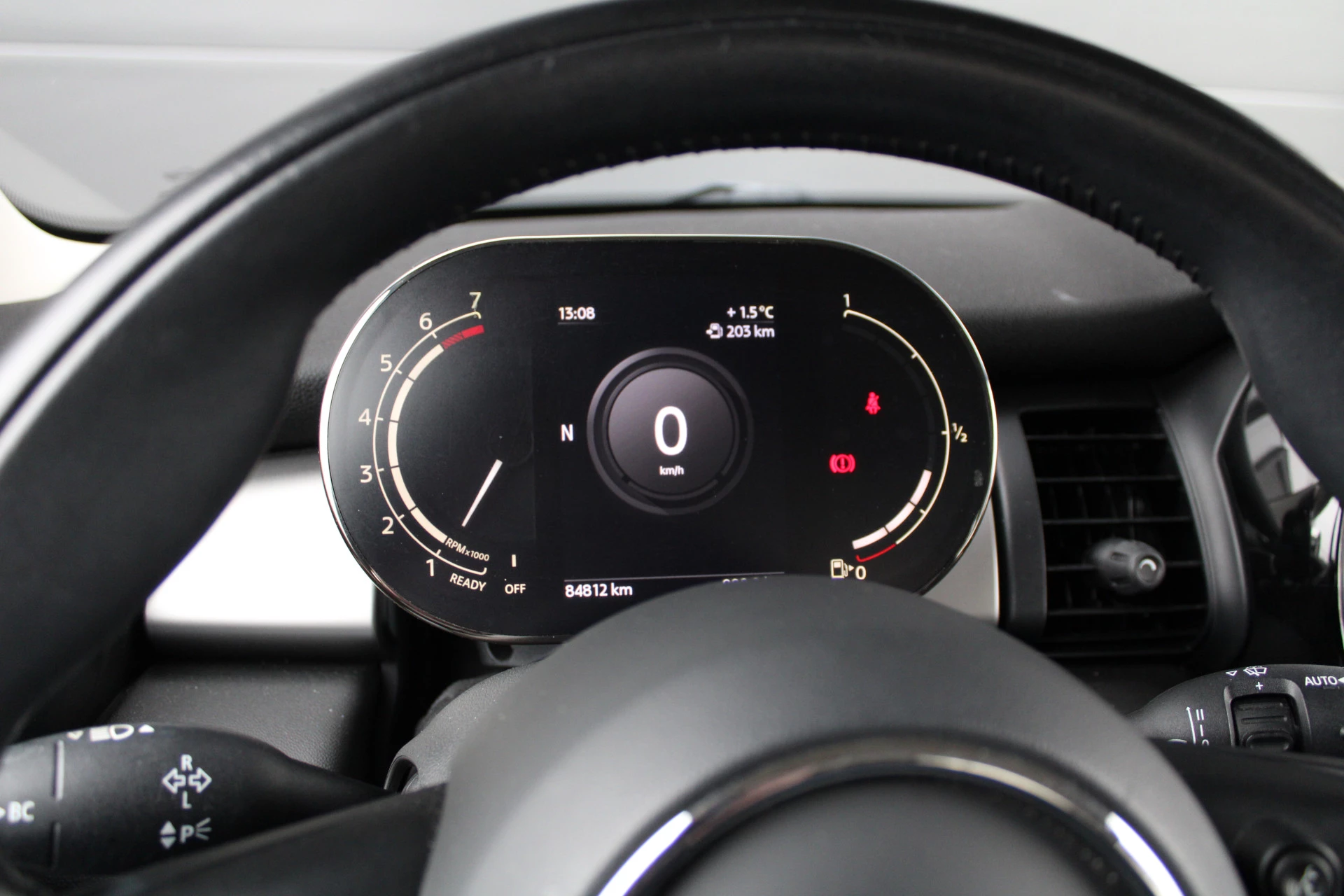 Omdat goed geïnformeerd rijden tegenwoordig om veel meer draait dan alleen snelheid en brandstofpeil, laat het digitale dashboard alle functies zien die u nodig heeft. Bij het wisselen van rijbaan kan een dode hoek ontstaan waardoor achterliggers te dichtbij kunnen komen. De achteropkomend verkeer waarschuwing geeft in dat geval automatisch een signaal. Ook lekker handig is de audiobediening op het stuur. De DAB-ontvanger zorgt voor een ruime keuze uit digitale radiozenders en een kristalheldere geluidsweergave. Om de veiligheid onderweg te verhogen, heeft deze MINI zowel een automatisch inschakelbare verlichting als een regensensor aan boord, zodat hij zelf de verlichting en de ruitenwissers kan inschakelen. De uitrusting van deze MINI is met airconditioning en centrale deurvergrendeling met afstandsbediening behoorlijk compleet.