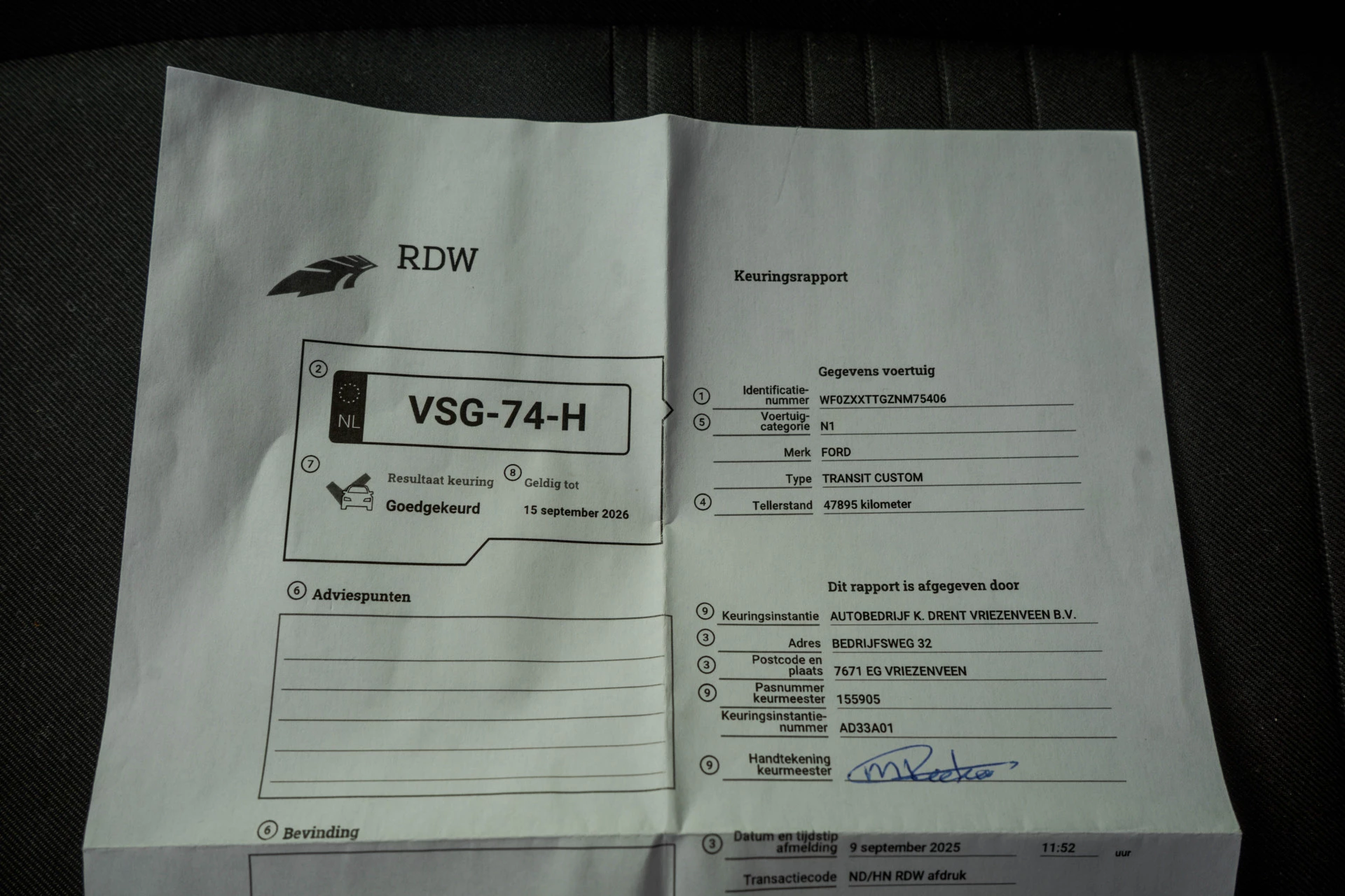 NAP: Logisch. Bandenprofiel: Voor 5.9 mm en Achter 4.4 mm. Aantal eigenaren privé / zakelijk 1 / 0. Aantal sleutels: 2.