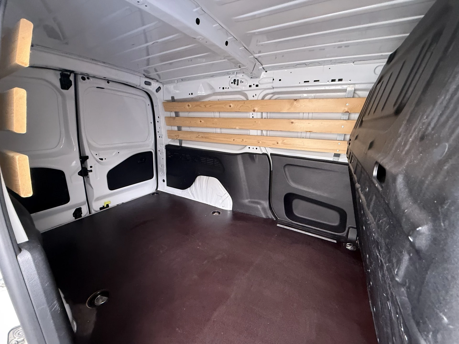 De laadruimte van deze Combo is voorzien van een professionele betonplex vloer en is netjes lat om lat betimmerd.
