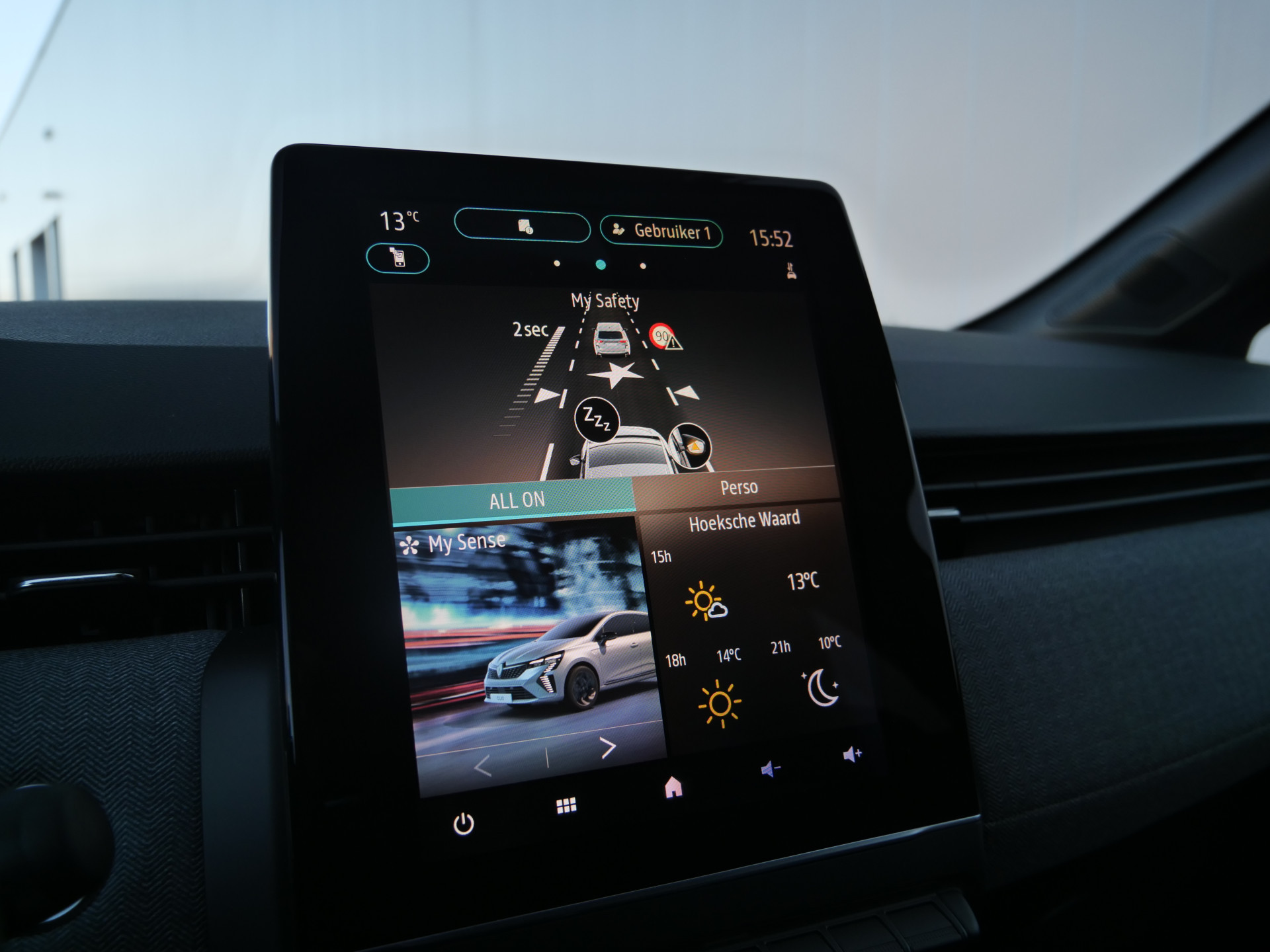 Snelheid, omgevingsinfo, navigatie en communicatie... Het digitale dashboard geeft alles realtime weer. 'Boem is ho'? Niet met deze achteruitrijcamera. U ziet achter net zo goed als voor en krijgt een duidelijk geluidssignaal! Laat u onderweg niet afleiden, de bediening van het audiosysteem en ook het navigatiesysteem gaat met knoppen op het stuur. Natuurlijk is de audio-installatie voorzien van DAB-ontvangst. U verwacht natuurlijk electronic climate control in deze auto, en die is er dan ook. Achter het stuur van deze Renault bent u niet alleen. De auto kijkt als het ware met u mee tijdens de rit. De regensensor schakelt de ruitenwissers in als het nodig is en de automatisch inschakelbare verlichting doet de lichten voor u aan. De Renault is standaard voorzien van: cruise control, keyless entry, automatisch dimmende binnenspiegel, boordcomputer en verstelbaar stuur.