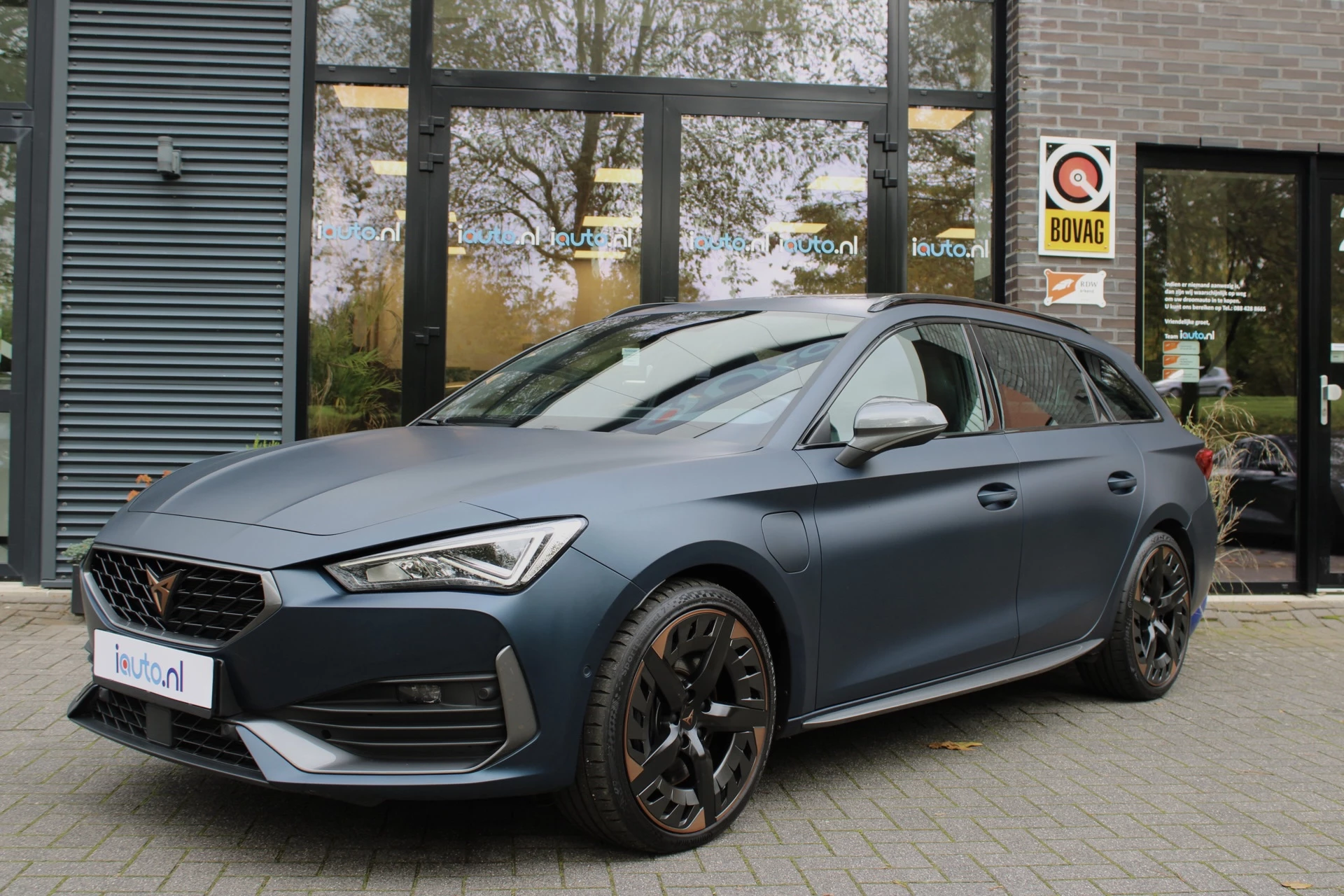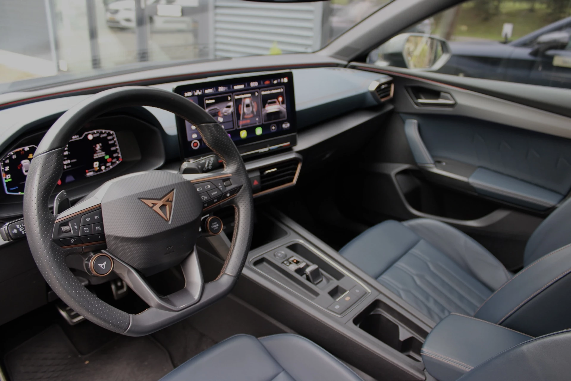 Cupra Leon Sportstourer met de krachtige en zuinige 180kW/245PK Plugin Hybride motor. De zeer luxe Performance Copper Edition uitvoering in het Petrol Blue matt met het originele elektrisch bedienbare panoramdak en zeer veel andere opties, onder andere: 19" lichtmetalen velgen "Exclusive", DCC (adaptief onderstel), virtual cockpit, origineel navigatiesysteem High, App-Connect (Apple CarPlay/Android), Lederen bekleding, elektrische bedienbare bestuurdersstoel met geheugen, Keyless entry/start, parkeersensoren voor en achter met parkeerhulp en een achteruitrijcamera, elektrische achterklep met voetbediening, comfort telefonie met draadloos laden, dodehoeksensor, stoelverwarming en stuurwielverwarming, kuipstoelen en sportstuur met Cupraknop en Startknop en een adaptieve cruise control. Deze auto wordt geleverd inclusief de originele verlengde fabrieksgarantie voor 3 jaar, aangevuld tot 12 maanden met de BOVAG garantie, zonder meerprijs.
