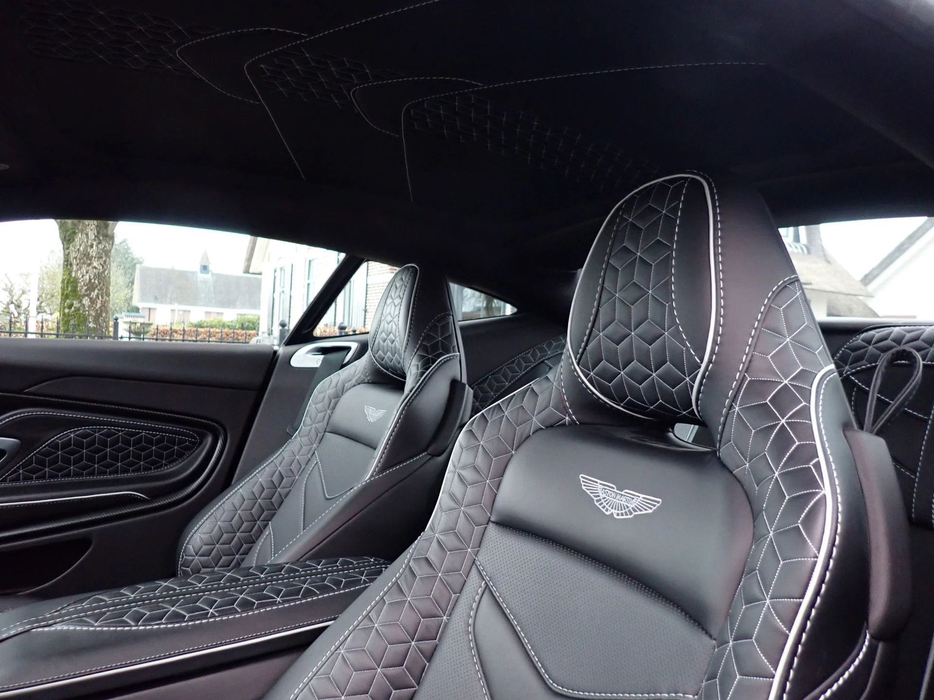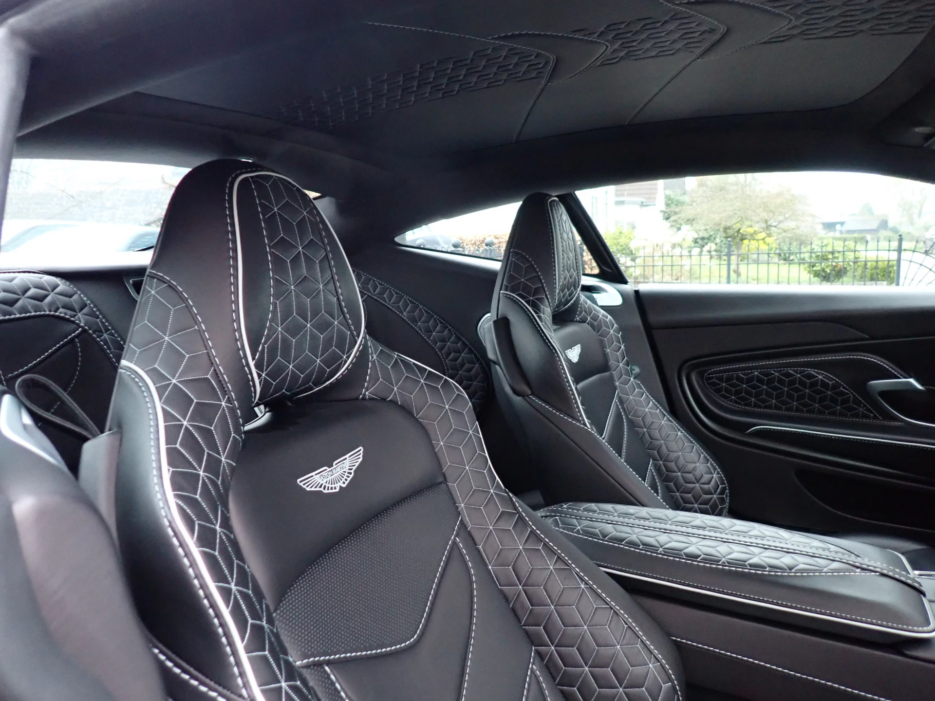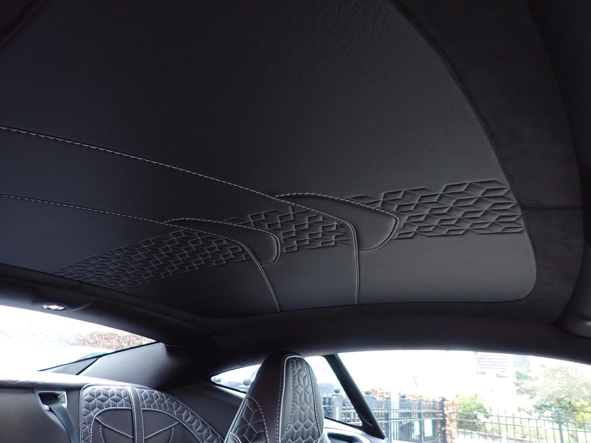 Volledig lederen hemelbekleding met wit gestikt motief