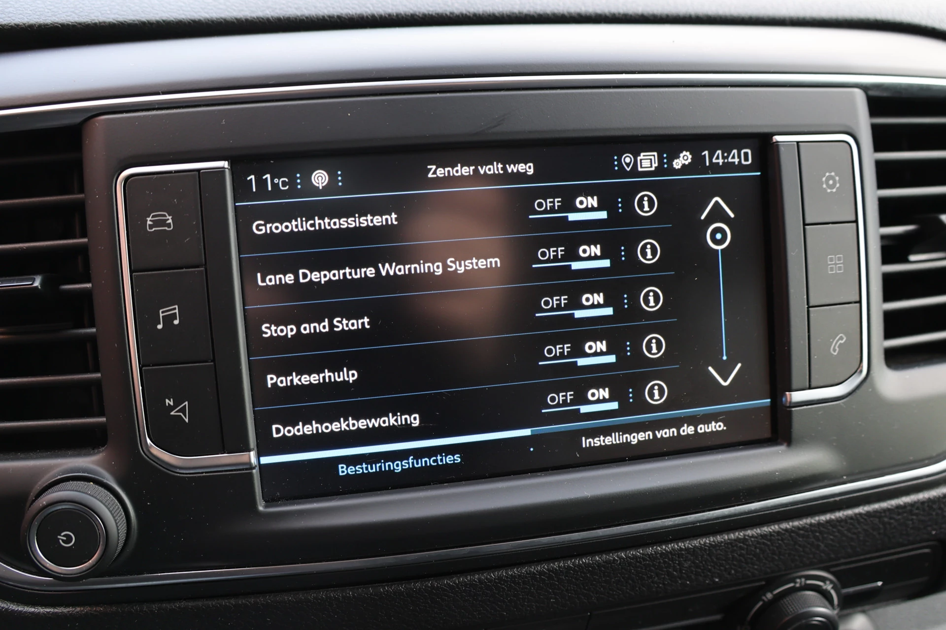 Aan boord van deze Peugeot houden verschillende geavanceerde systemen voor u de weg in de gaten. Ze waarschuwen u voor noodsituaties en kunnen in een aantal gevallen ook zelf ingrijpen. In het instrumentarium laat de verkeersborddetectie de actuele verkeersborden zien. Onbedoeld buiten de rijstrook raken wordt voorkomen door het Lane-keeping systeem. Een belangrijk veiligheidssysteem in deze auto is de vermoeidheidsherkenning, die u een duidelijk signaal geeft wanneer u achter het stuur in slaap dreigt te vallen. De veiligheid van deze auto wordt verder verhoogd door dodehoekdetectie, hill hold functie, brake assist en bandenspanningcontrolesysteem.