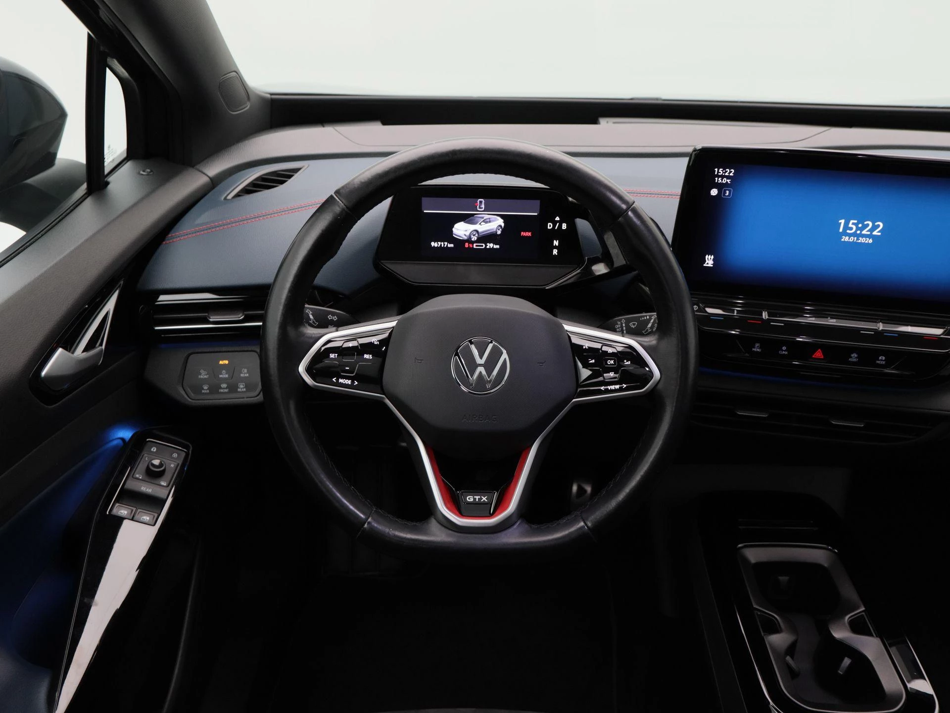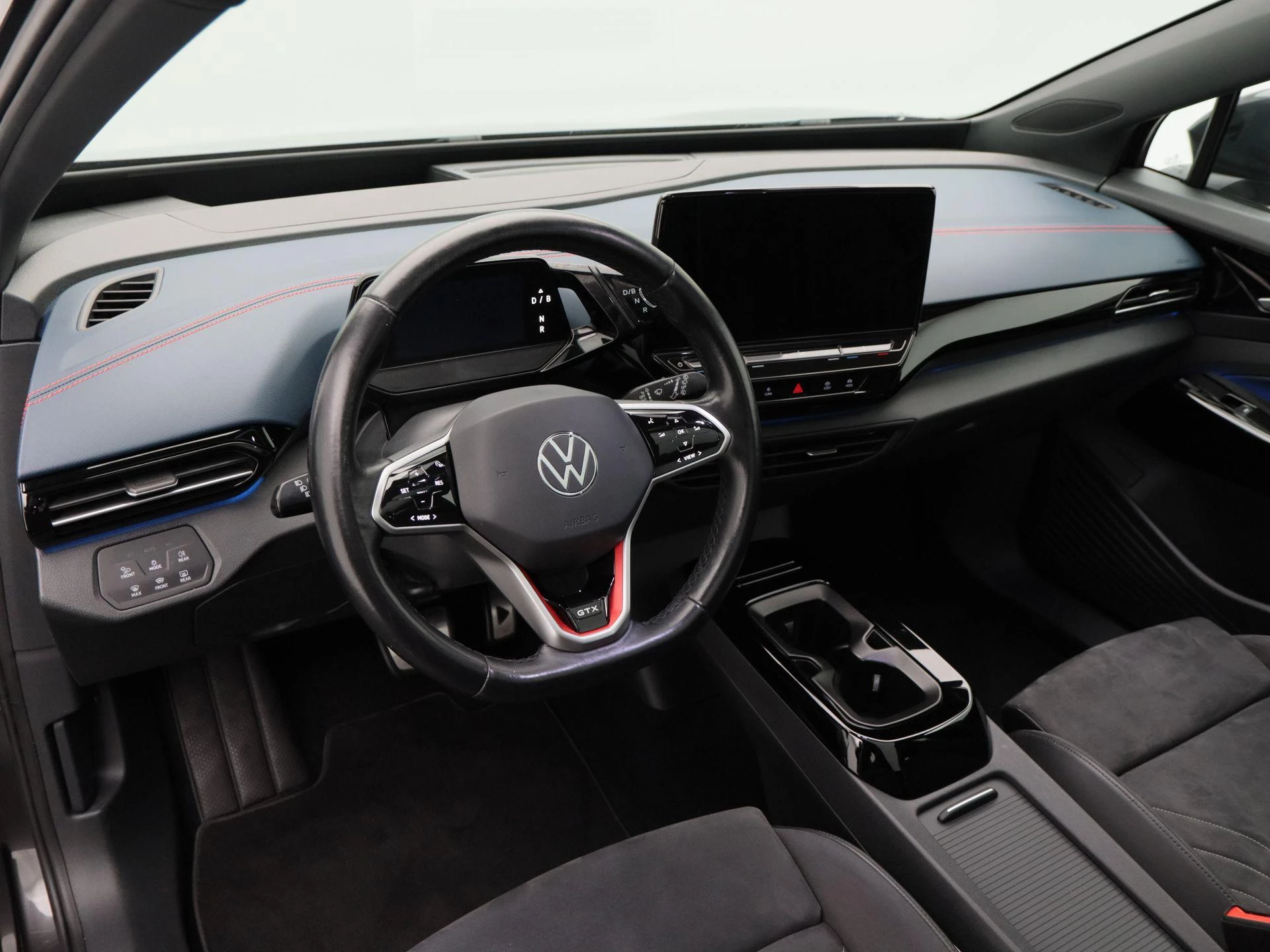 Binnenin biedt de ID.4 GTX een sportieve en comfortabele rijomgeving met leder/stof sportstoelen, elektrisch verstelbare voorstoelen met geheugen, stoelverwarming vóór en een verwarmd lederen stuurwiel. Climate Control en de warmtepomp zorgen voor efficiënt en comfortabel klimaatbeheer in alle seizoenen.
