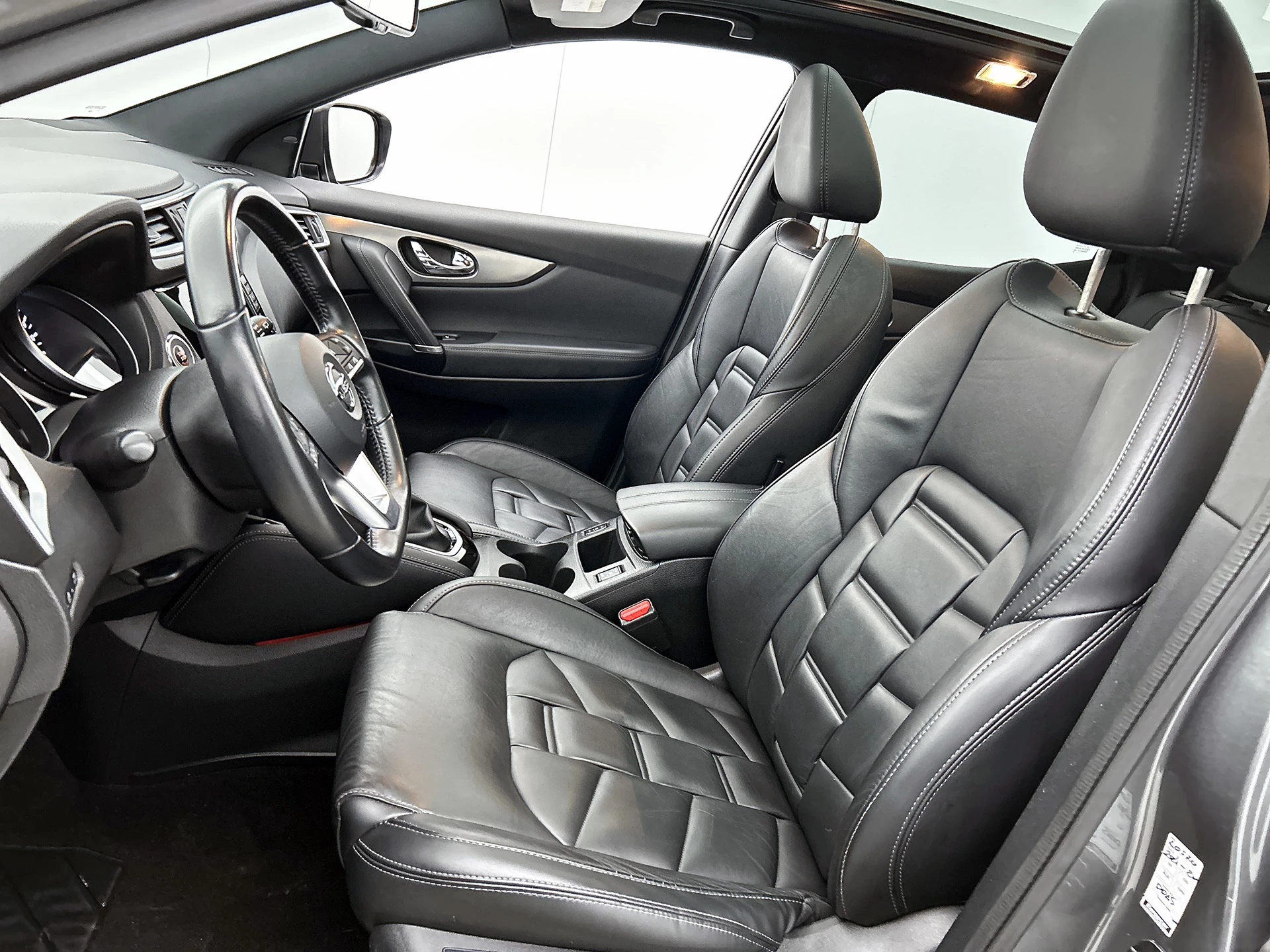 De vormgeving van deze Nissan Qashqai is stijlvol maar ingetogen en dat maakt meteen duidelijk dat u van deze auto pure kwaliteit mag verwachten. De SUV haalt zijn aandrijving uit een krachtige viercilinder benzinemotor. Het stijlvolle lederen interieur geeft deze Nissan Qashqai net dat beetje extra. Deze Nissan Qashqai heeft verwarmbare voorstoelen, voor zowel bestuurder als bijrijder. Het interieur lijkt groter en ruimtelijker dankzij het glazen panoramadak. Bij de uitrusting van deze auto horen onder meer 19 inch lichtmetalen velgen, LED koplampen, zwarte hemelbekleding, donker getint glas achter, in delen neerklapbare achterbank en LED-achterlichten.