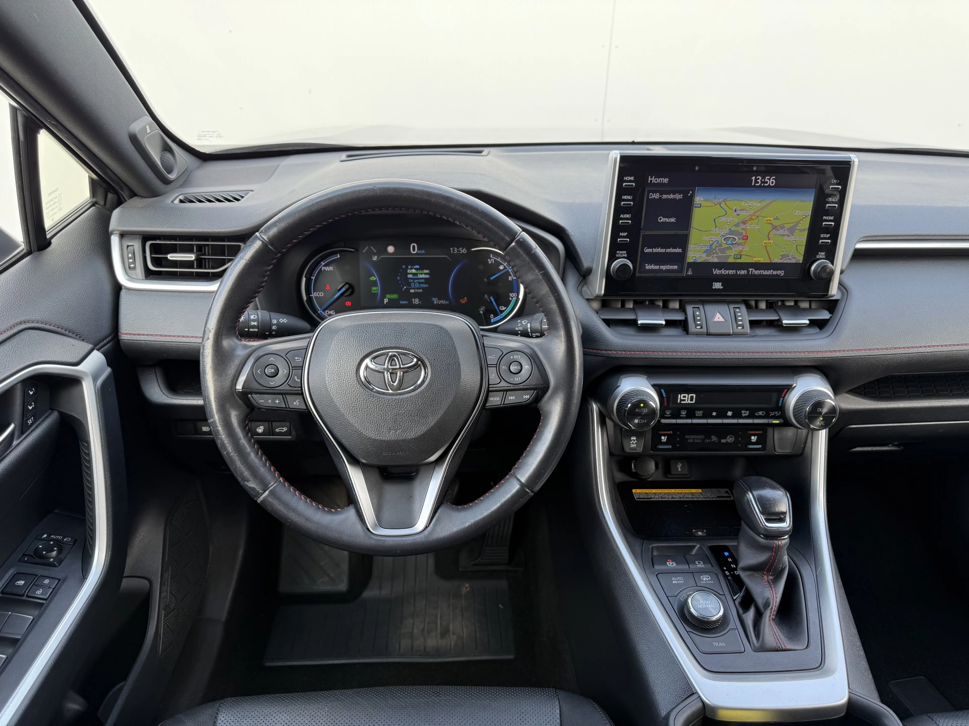 Deze Toyota RAV4 maakt een voortreffelijke indruk. Hiermee mag je gezien worden in de stad én op de weg! Het is een hybride, daardoor is de auto zuinig met brandstof. Fraai hoor, zo'n lederen interieur. En door de gemakkelijk elektrisch bedienbare achterklep bent u snel overtuigd van deze auto. Winter... Eerst krabben, dan genieten van de stoelverwarming. Ook de passagiers worden verwend, door de verwarmde achterbank. Ook 19 inch lichtmetalen velgen, LED koplampen, geluidsisolerende ramen, trailer assistent, in delen neerklapbare achterbank en LED-achterlichten horen tot de voorzieningen op deze auto.