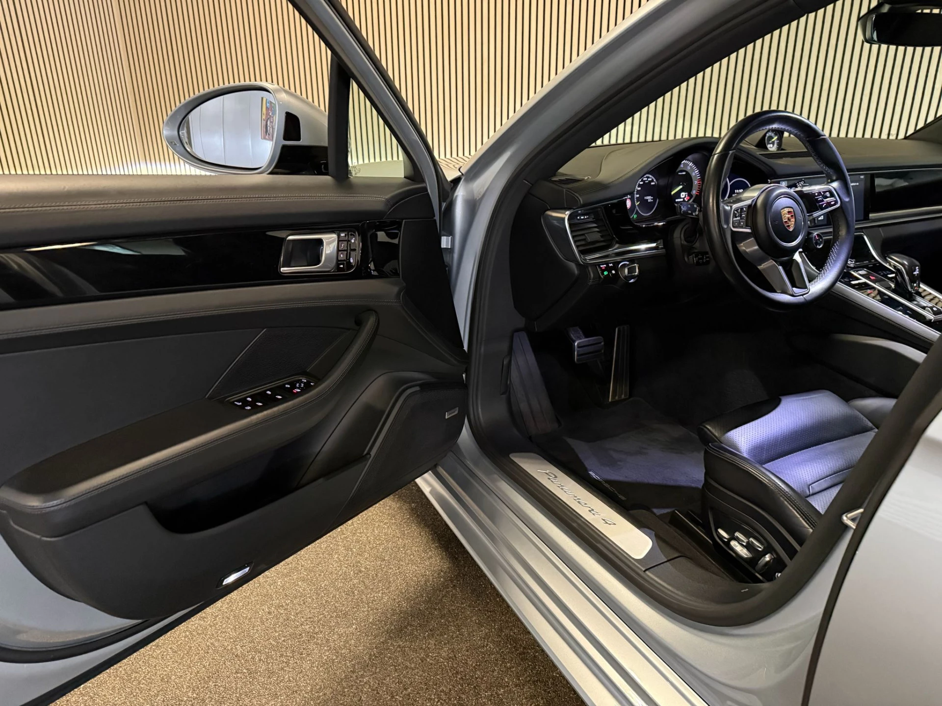 Een onopvallend paaltje of een overstekend kind achter de auto brengt risico's met zich mee. Gelukkig laat de achteruitrijcamera feilloos zien of alles veilig is. Onder alle omstandigheden een volmaakt geluid onderweg: het high performance audiosysteem zorgt ervoor. Deze Porsche Panamera Sport Turismo maakt het rijden graag gemakkelijk. Daarom verzorgt de regensensor de mate van ruitreiniging die de ruitenwissers moeten leveren bij neerslag. Natuurlijk is deze Porsche Panamera Sport Turismo voorzien van cruise control. Geen capriolen meer als u met armen vol de auto moet openen. De keyless entry heeft u al herkend en ontgrendelt de Porsche Panamera Sport Turismo automatisch. Met dashboard met spraakbediening, navigatiesysteem met harde schijf, sportstuurwiel, airconditioning, dvd-systeem en automatisch dimmende binnenspiegel is deze Porsche helemaal compleet.