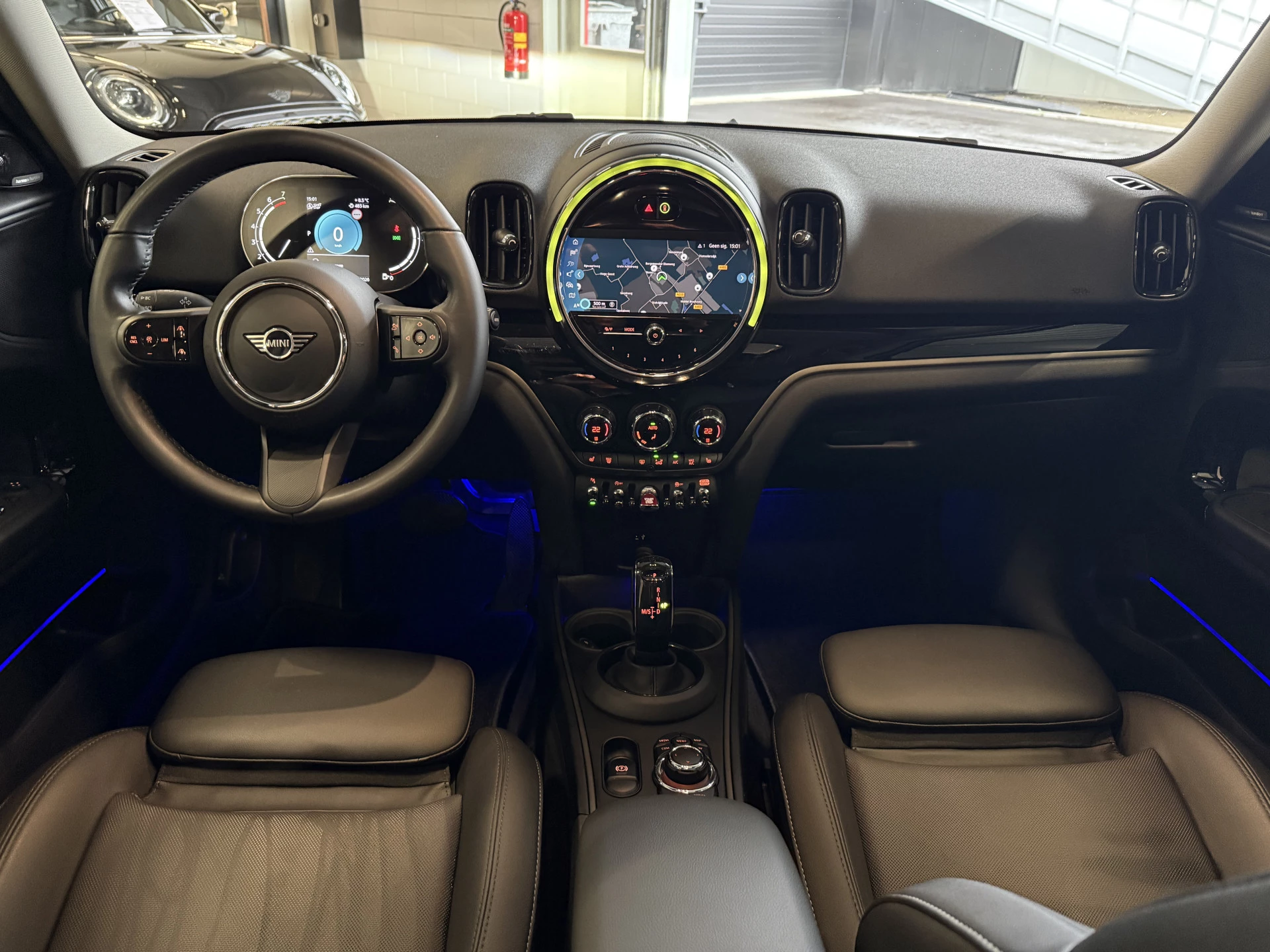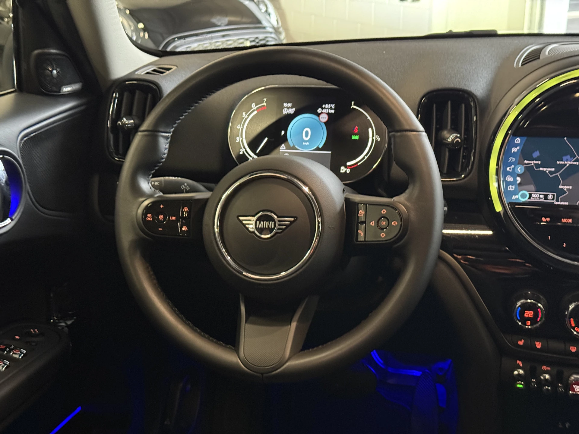 Schitterende Mini Countryman 1.5 Cooper automaat in Moonwalk Grey metallic met hoogglans zwarte licht metalen velgen en Black Optic pakket. Deze Mini is bijzonder compleet uitgerust met onder andere de volgende opties: Panorama dak, Harman Kardon Audio, lederen bekleding, elektrische bedienbare stoel met memory en lende steun verstelling, LED verlichtingspakket, Apple Carplay, achteruitrijcamera, navigatie, virtuele cockpit, adaptieve cruise control, keyless entry, draadloze telefoonlader, parkeersensoren voor + achter met parkeer assistent, etc..