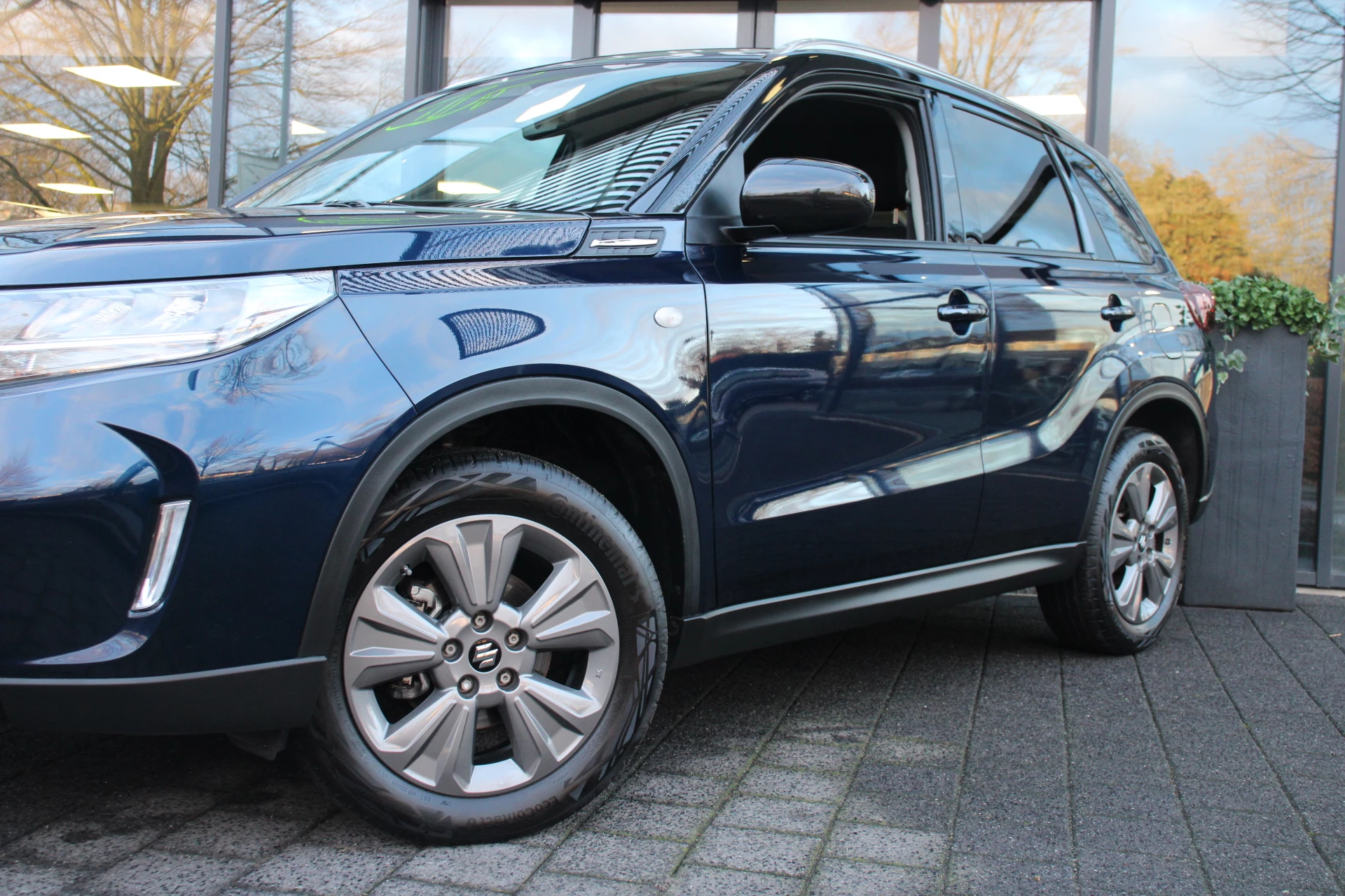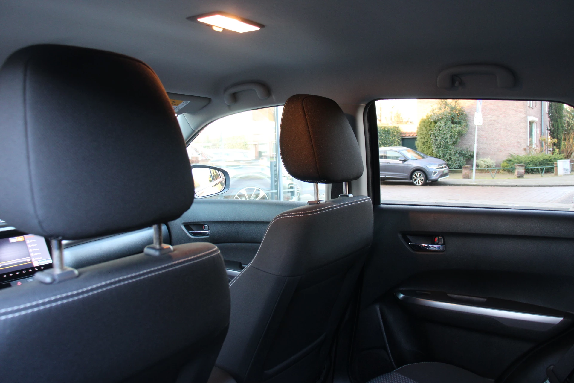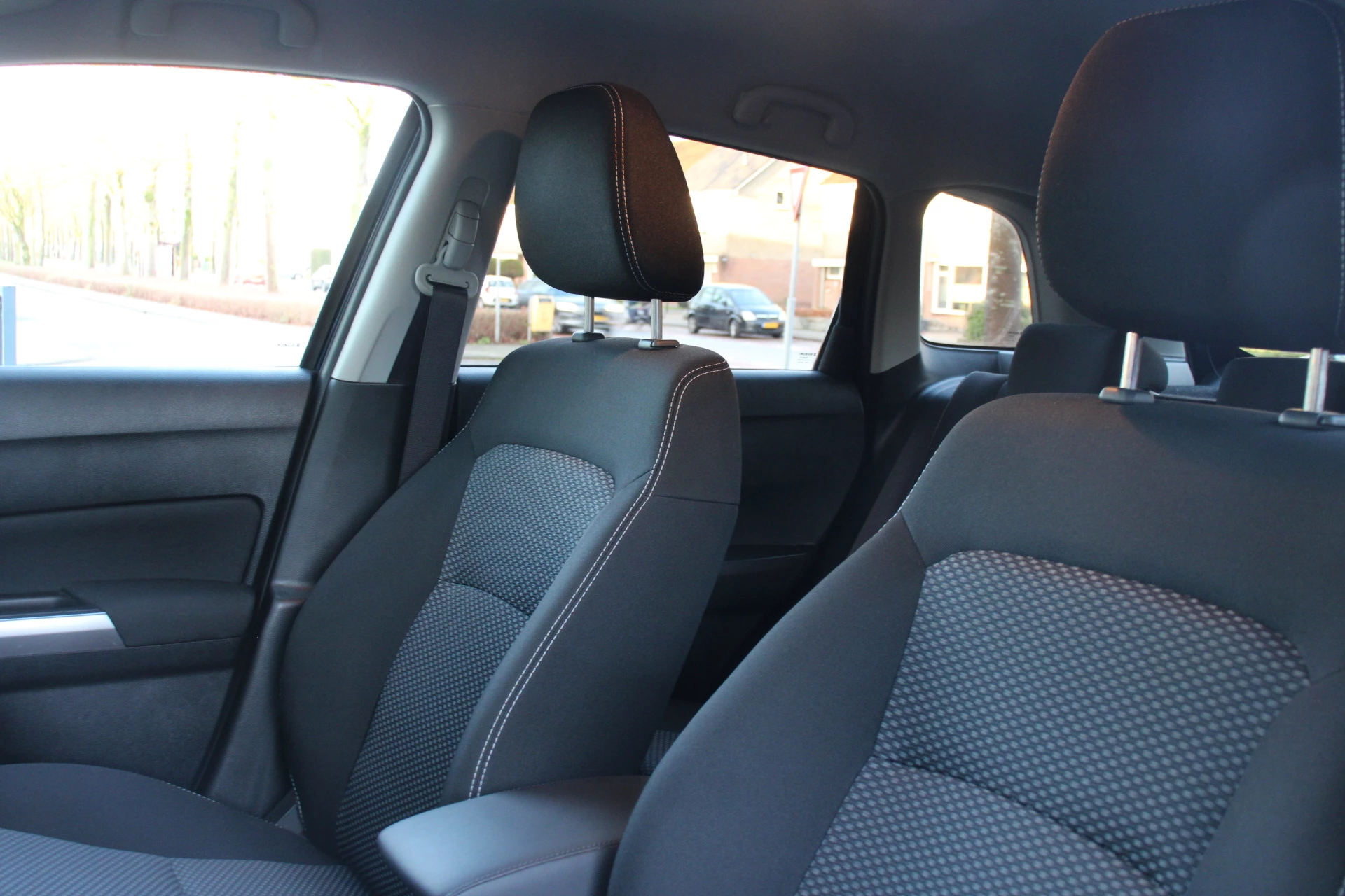 Ook achter de auto geen verrassingen bij het inparkeren. Daarvoor zorgt de achteruitrijcamera. Met adaptive cruise control houdt de auto zelfstandig afstand tot uw voorligger. Een veiligheidsverhogende optie waarmee u comfortabel onderweg bent. Zoals u van zo'n jonge auto mag verwachten, zijn hier ook de geavanceerde remote services aanwezig. Simpelweg met een app op uw smartphone controleert u op afstand de status van de auto en bedient u diverse functies. Laat u onderweg niet afleiden, de bediening van het audio-installatiesysteem en ook het full map navigatiesysteem gaat met knoppen op het stuur. Natuurlijk is de audio-installatie voorzien van DAB-ontvangst. Bij het wisselen van rijbaan kan een dode hoek ontstaan waardoor achterliggers te dichtbij kunnen komen. De achteropkomend verkeer waarschuwing geeft in dat geval automatisch een signaal. Ook is de Suzuki uitgerust met: automatische airconditioning, regensensor, keyless entry, automatisch dimmende binnenspiegel, lederen stuur en isofix-aansluiting.