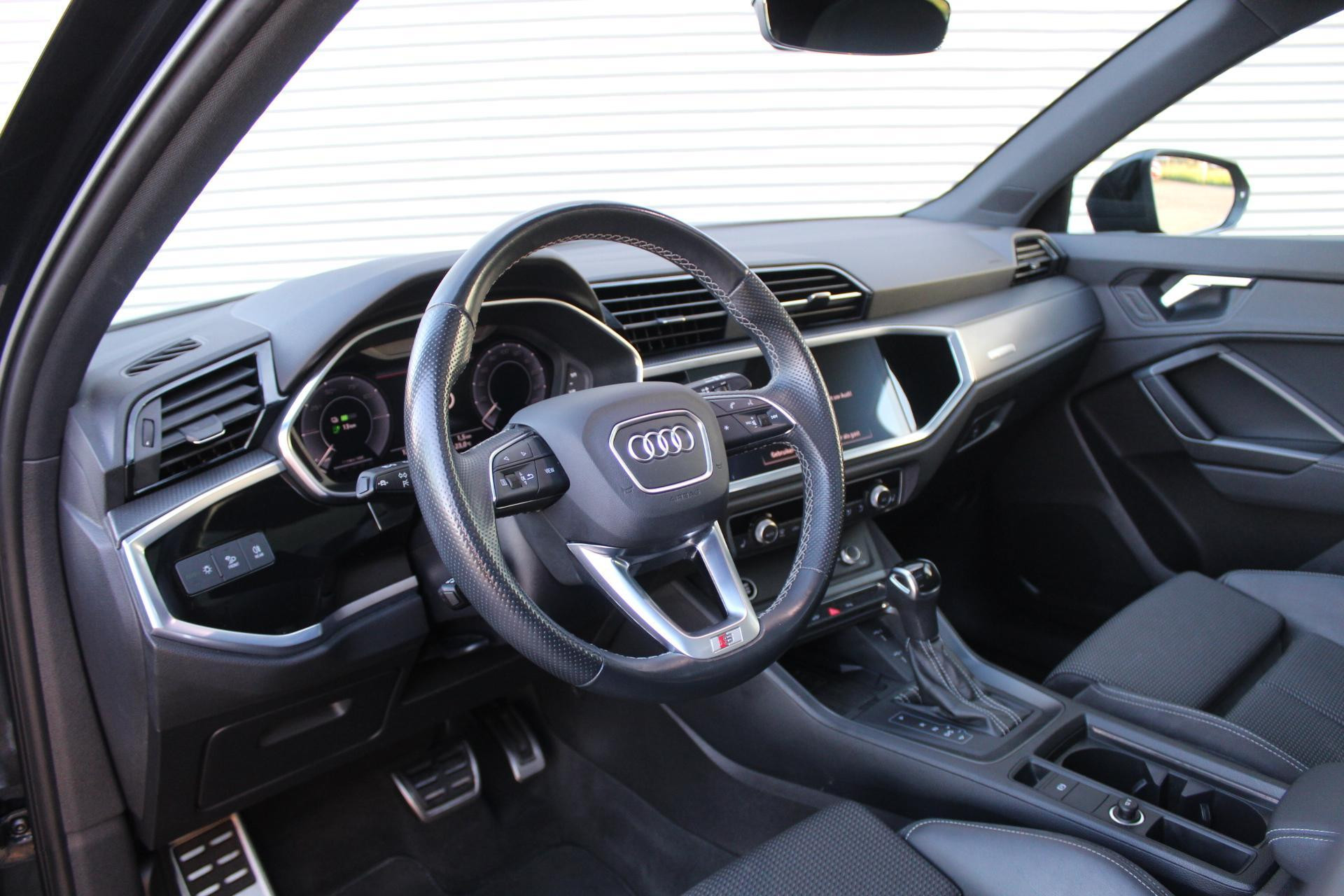 Op zoek naar een Audi Q3 45 TFSI e met S-line 2x, Panodak, Black optiek en adaptieve cruise