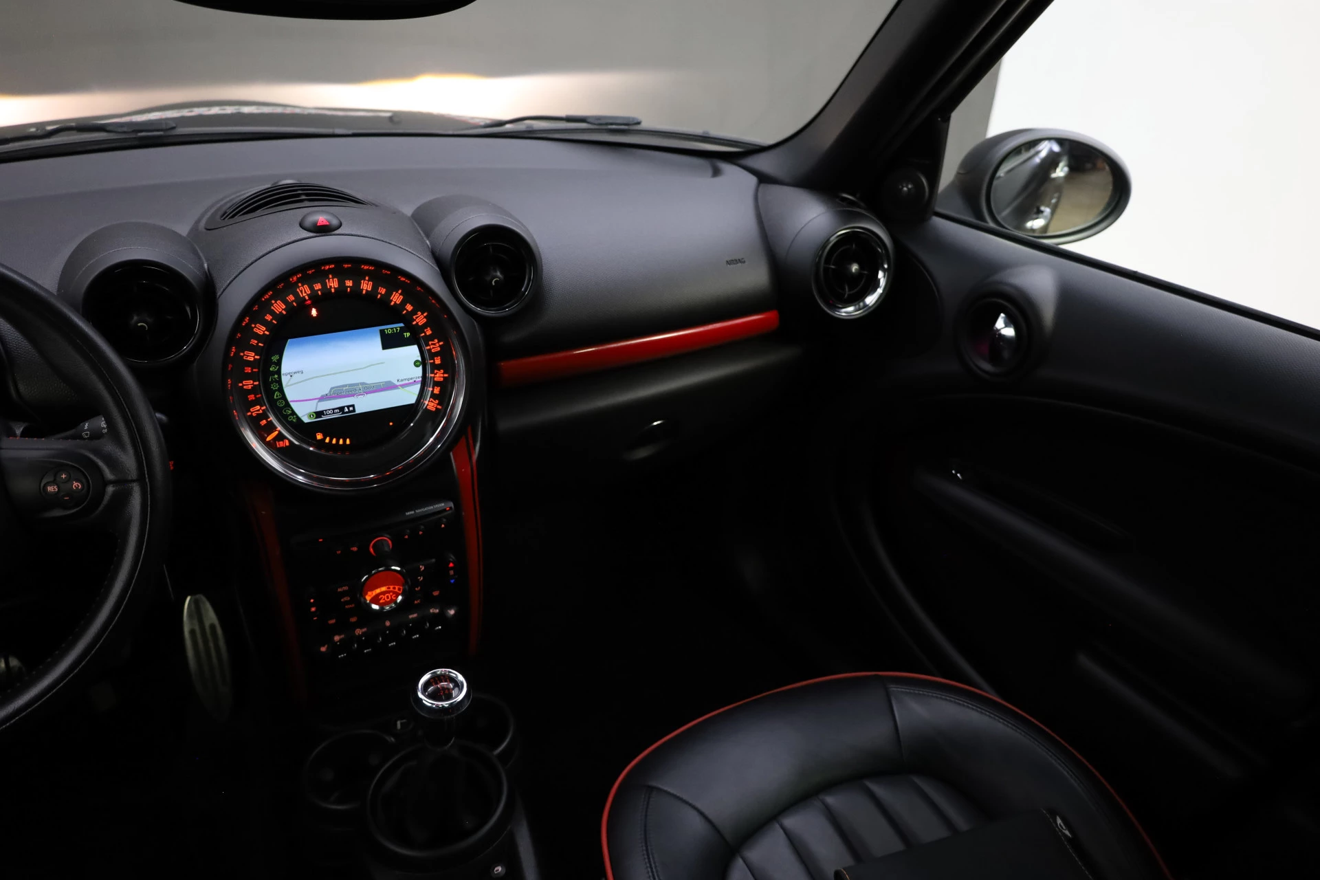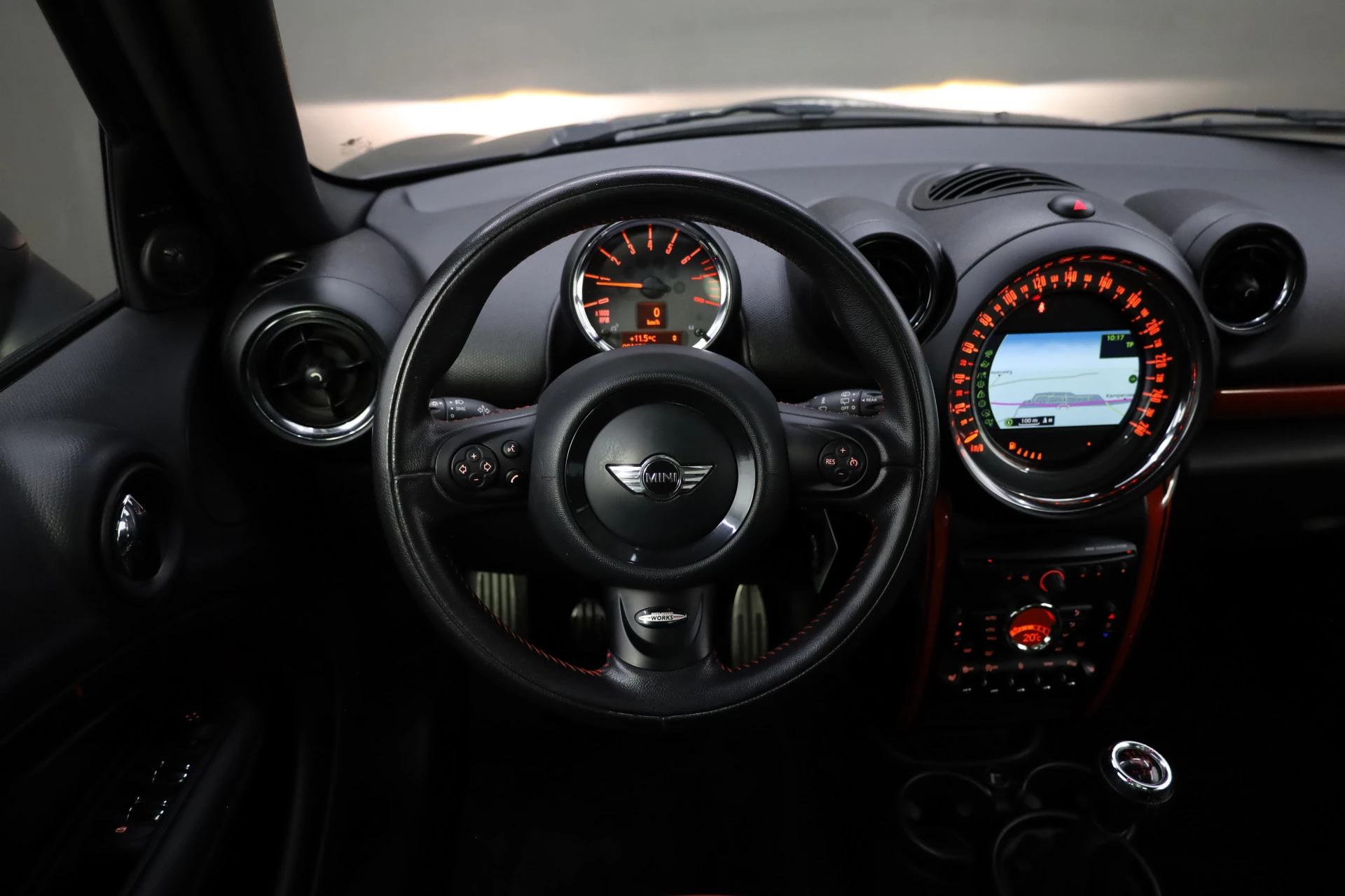Laat u onderweg niet afleiden, de bediening van het audio-installatiesysteem en ook het navigatiesysteem gaat met knoppen op het stuur. Tot de standaard uitrusting van deze auto hoort ook automatische airconditioning. Boem is ho? Niet bij deze MINI Countryman. De piepjes van de parkeersensoren waarschuwen u op tijd voor obstakels. De cruise control zorgt voor een mooie, gelijkmatige snelheid die u zelf instelt. Dat is relaxt! Geen capriolen meer als u met armen vol de auto moet openen. De keyless entry heeft u al herkend en ontgrendelt de MINI Countryman automatisch. Ook sportstuurwiel, buitentemperatuurmeter, automatisch dimmende binnenspiegel, centrale deurvergrendeling met afstandsbediening en boordcomputer horen tot de voorzieningen op deze auto.