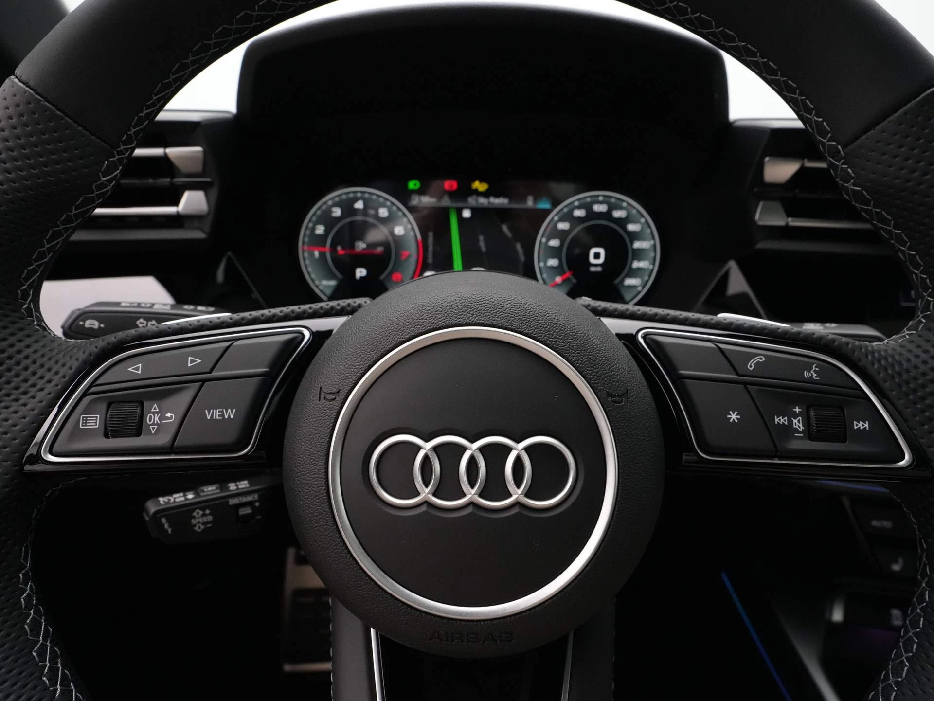 Driespaaks lederen sportcontourstuur, afgevlakt aan de onderzijde, multifunctioneel plus, met stuurpaddels (2PK)